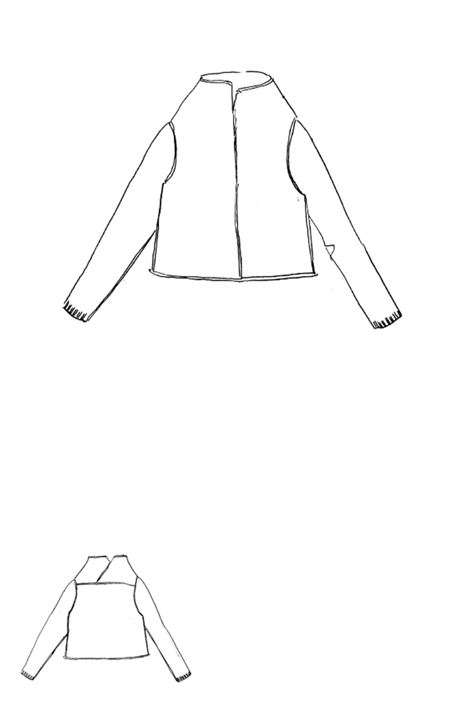 - Loose and asymmetrical collar