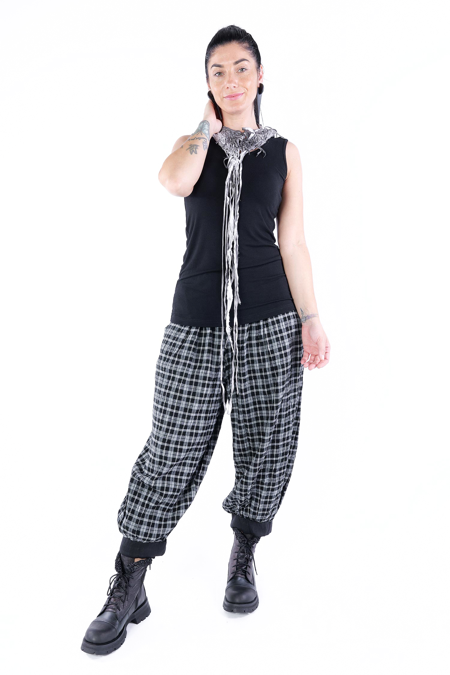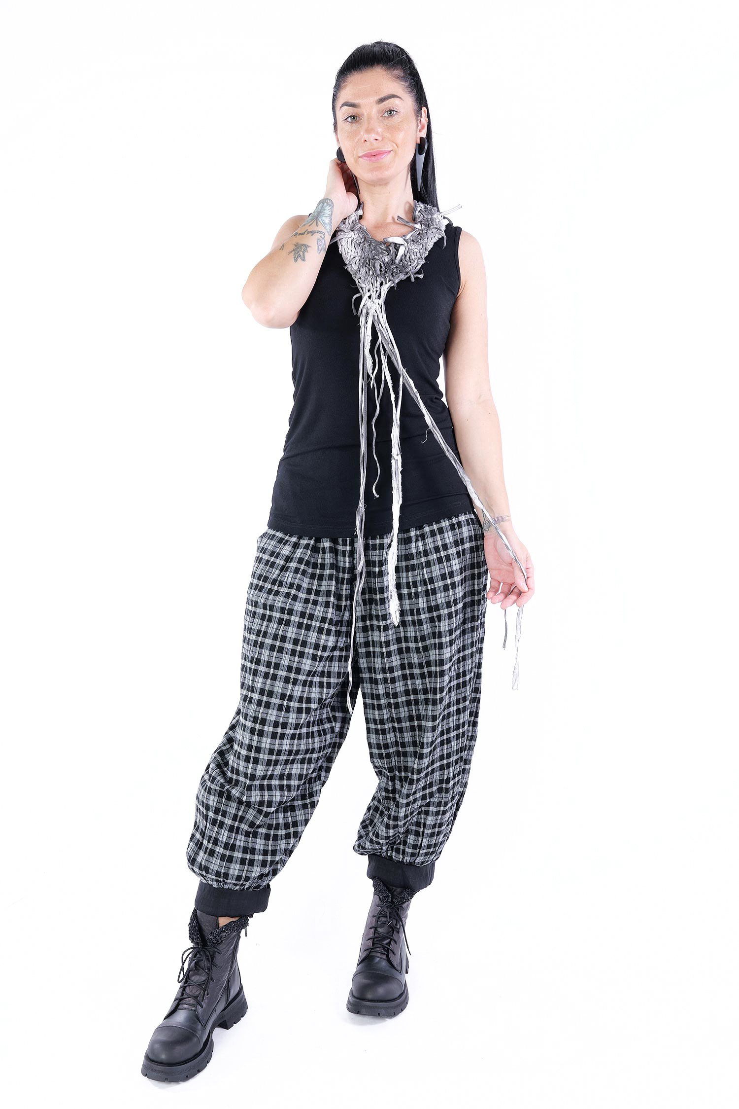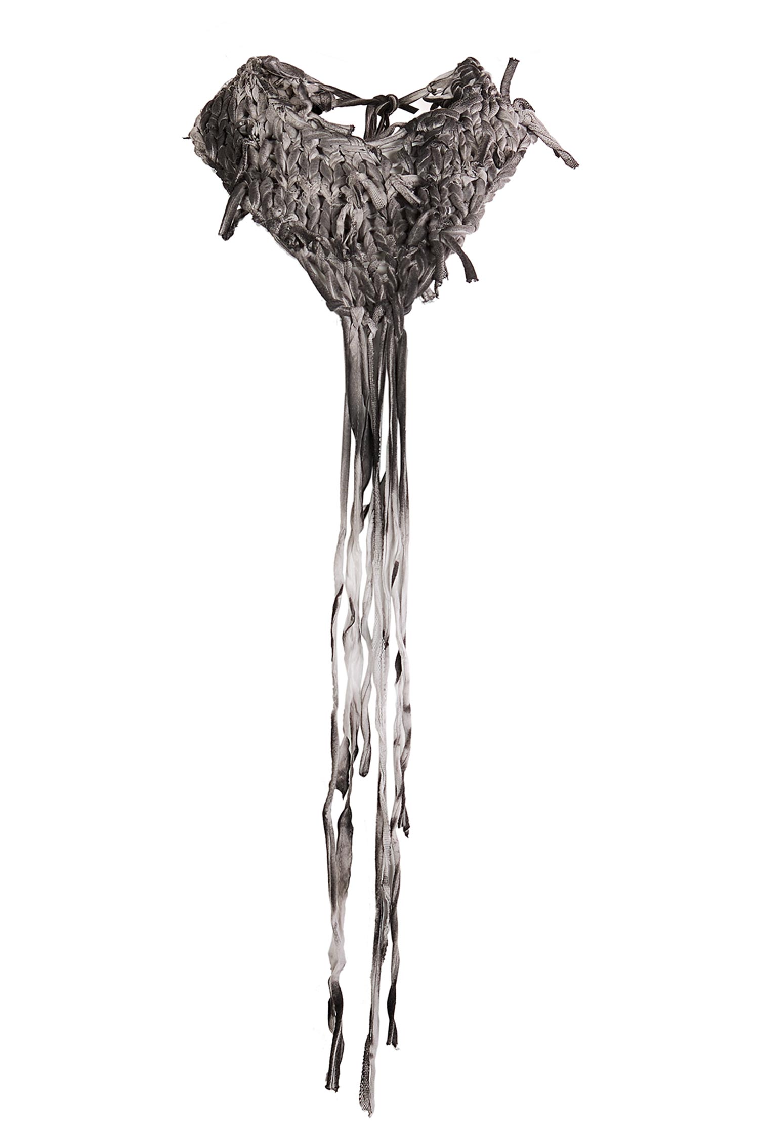 Details: - Hand-knitted - Stitches of different size - Strings of different length - Every item is unique - Tied at the back (adjustable) - Tulle details