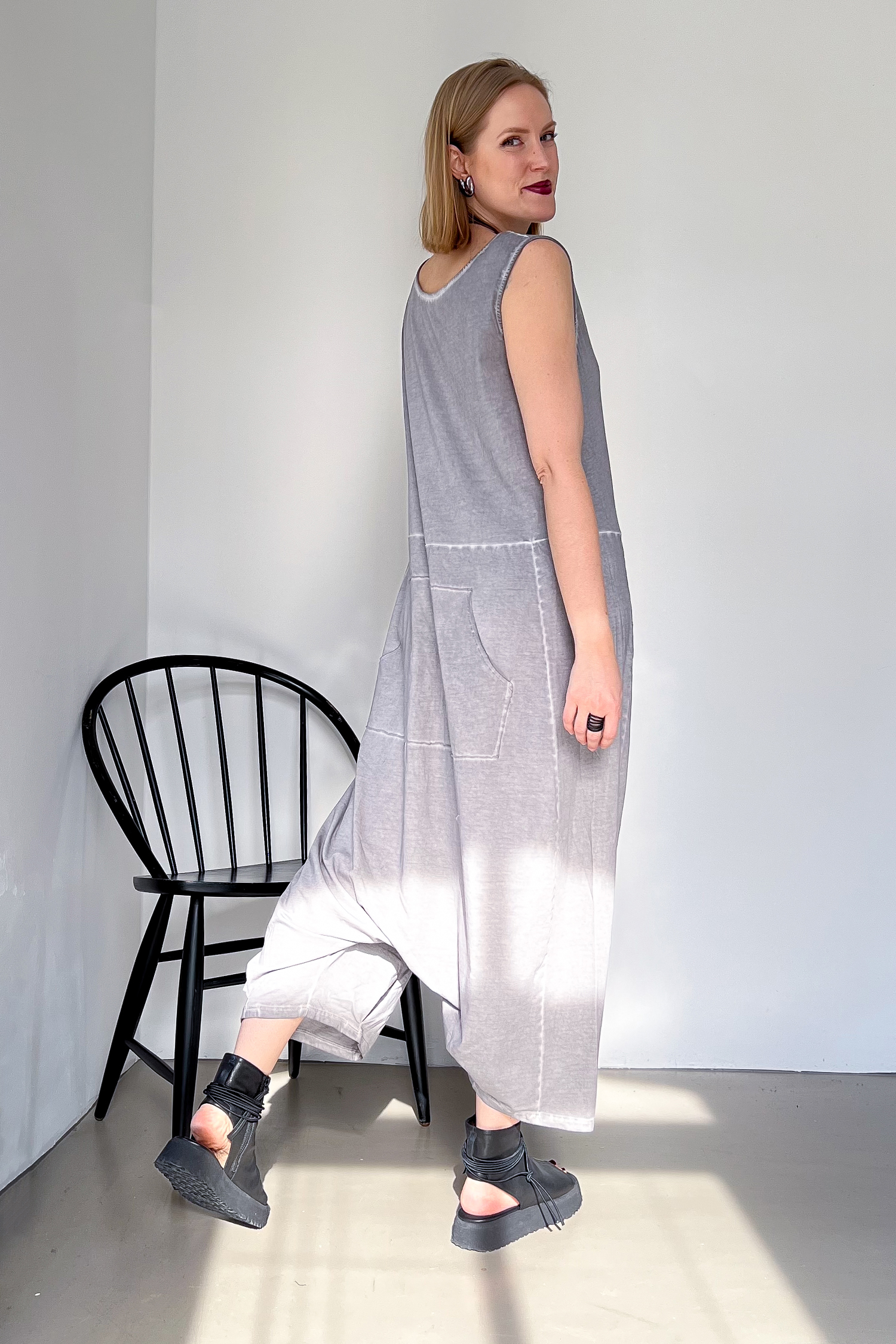 Oversize balloon dress - Cement stripe - 5019