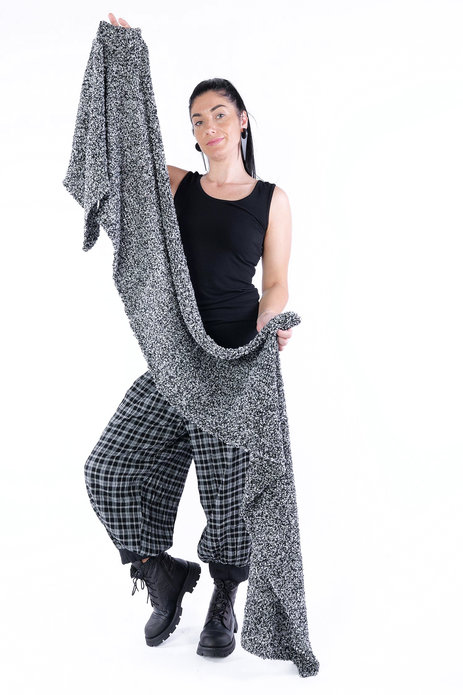 Long knit scarf made of bouclé yarn by Studio B3.