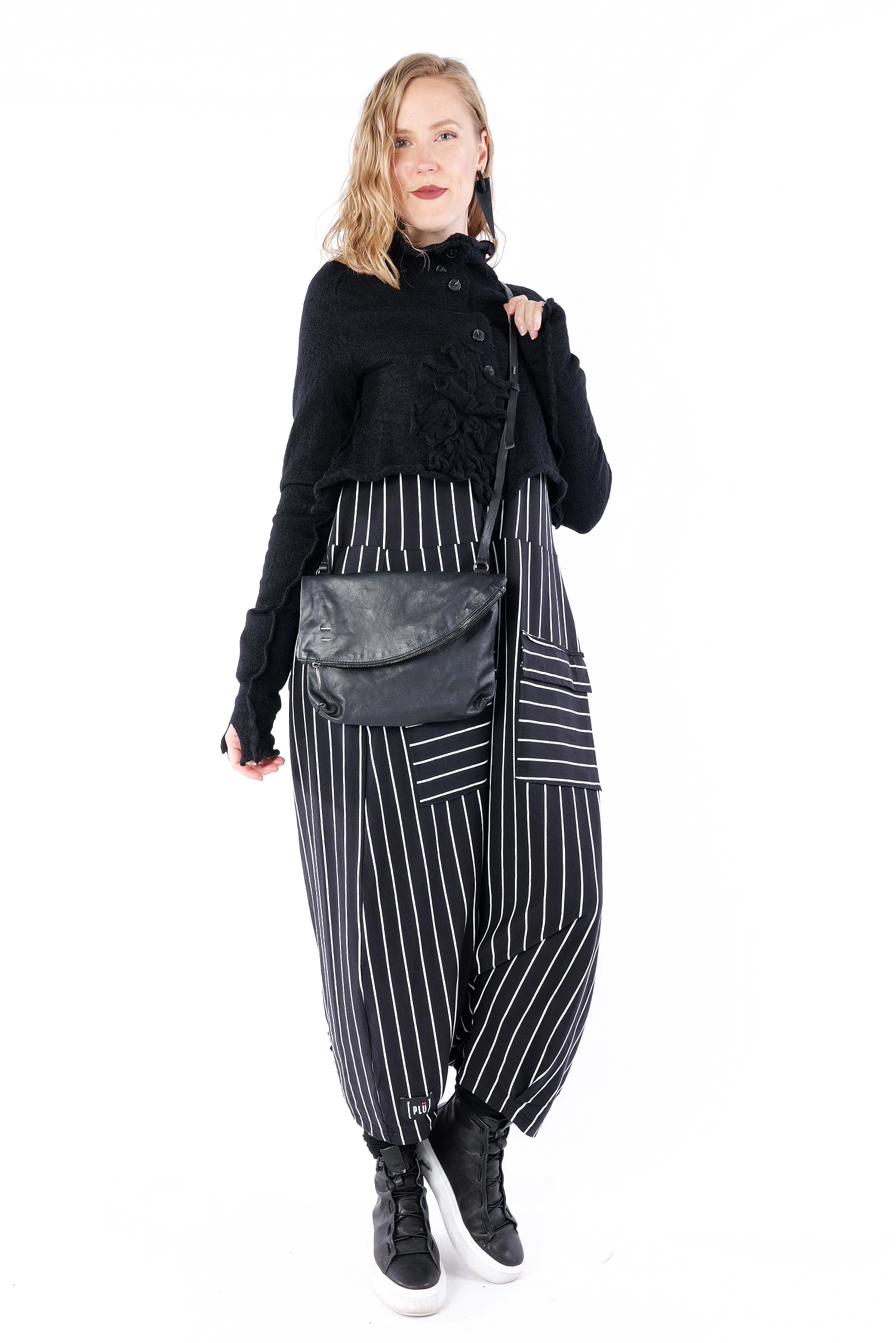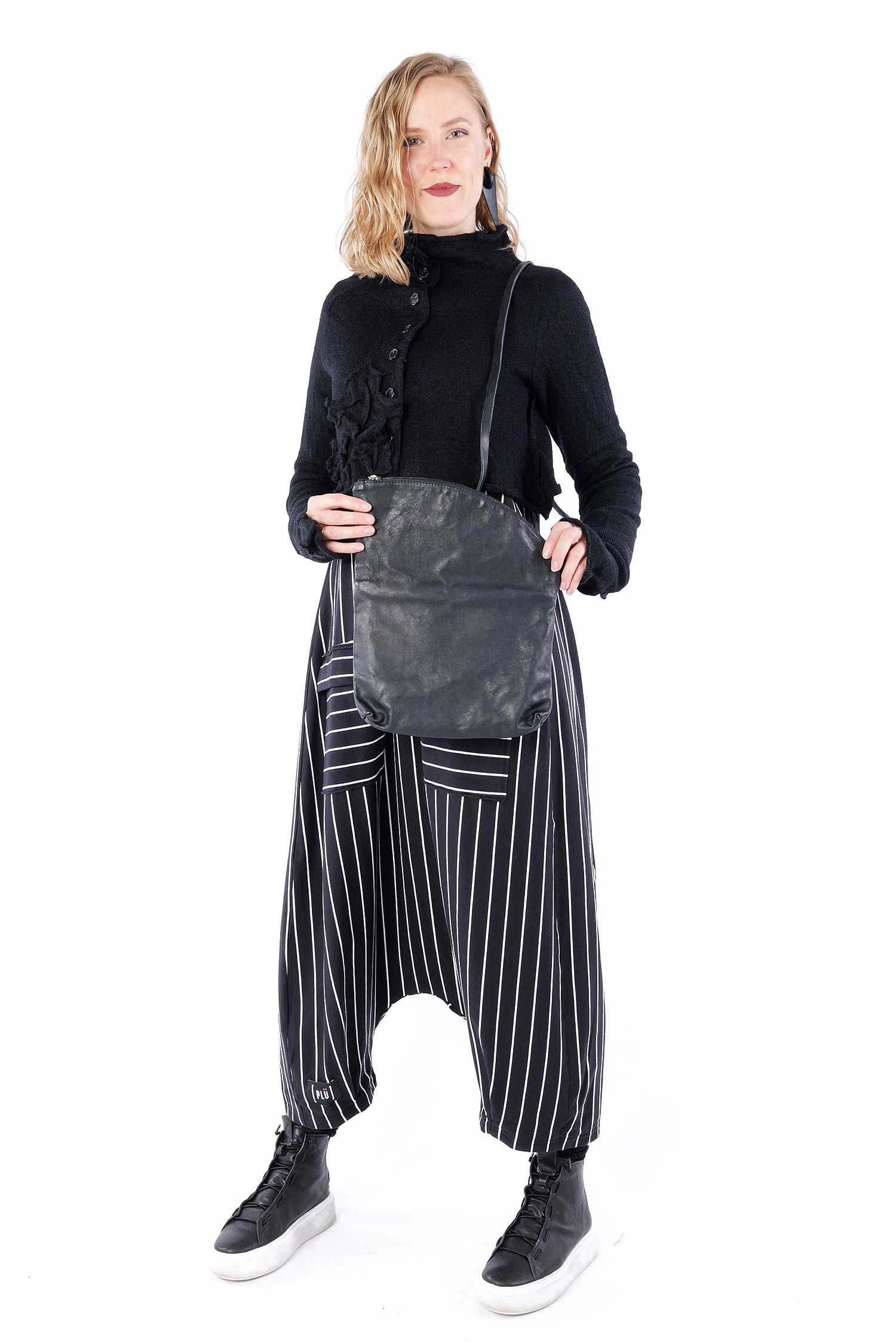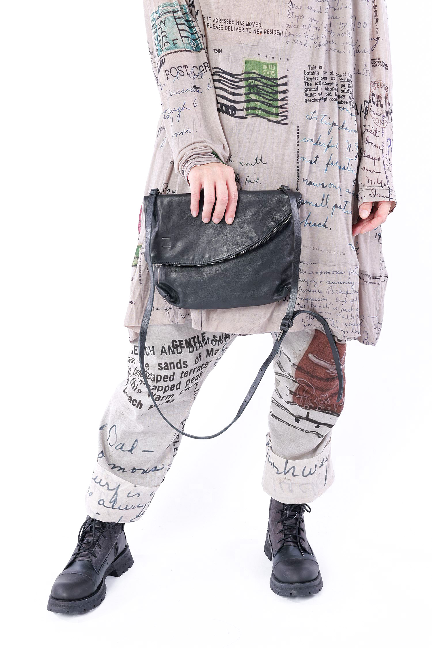 Details: - Turned-down look - Soft leather - Decorative silver details - Zipper with pendant made of silver - Long detailed adjustable leather strap with silver fastener - Cotton lining