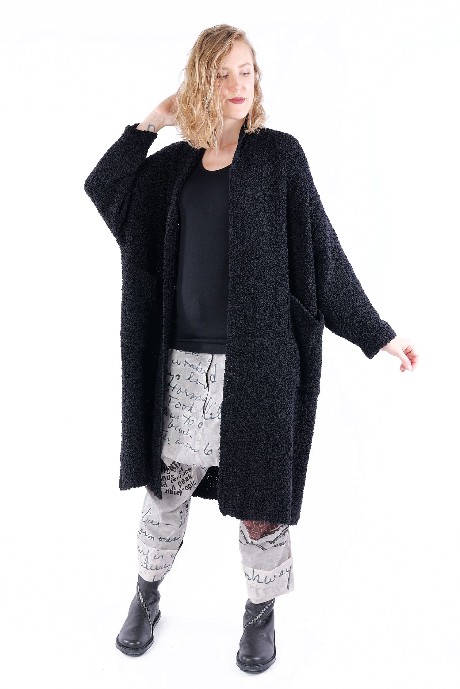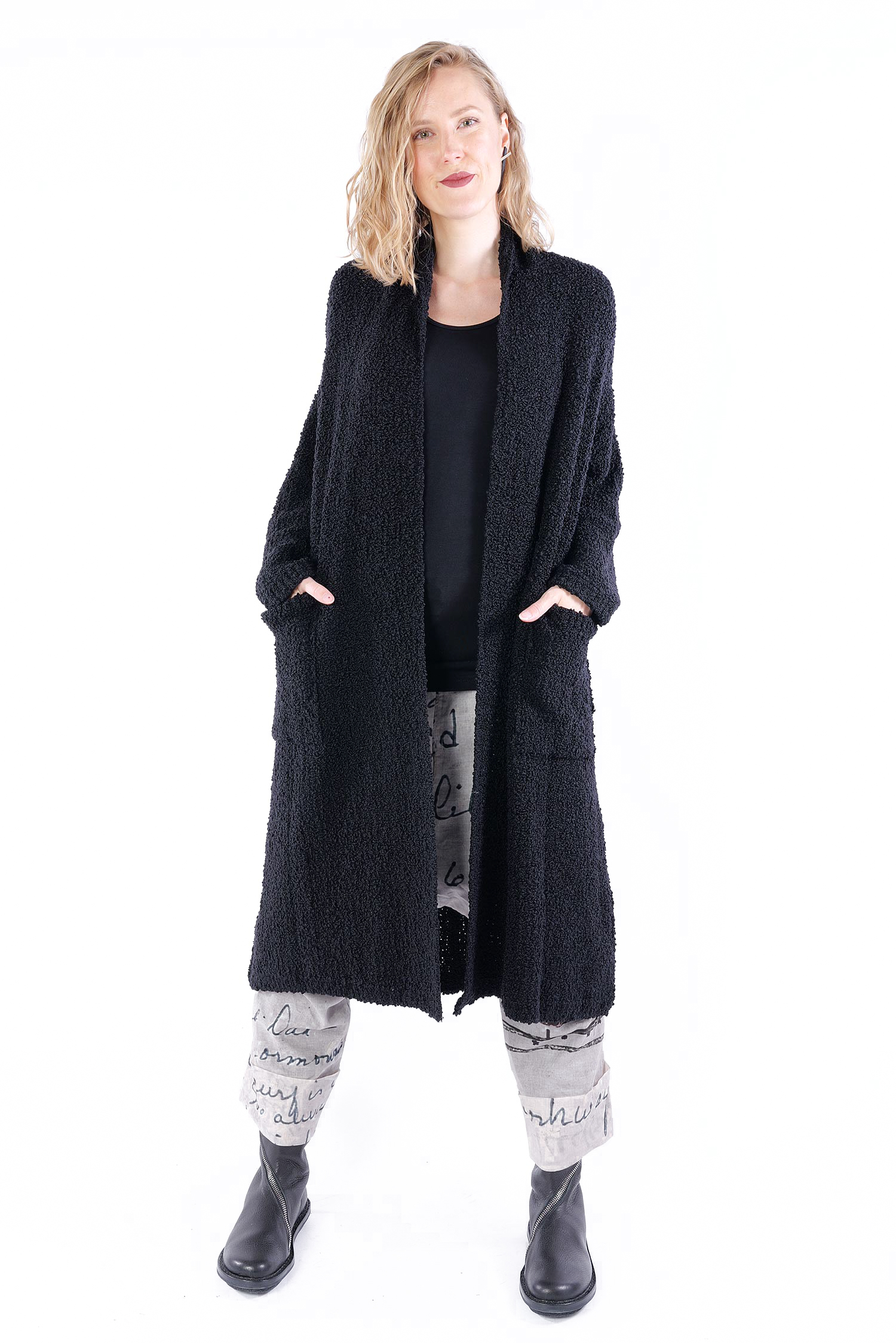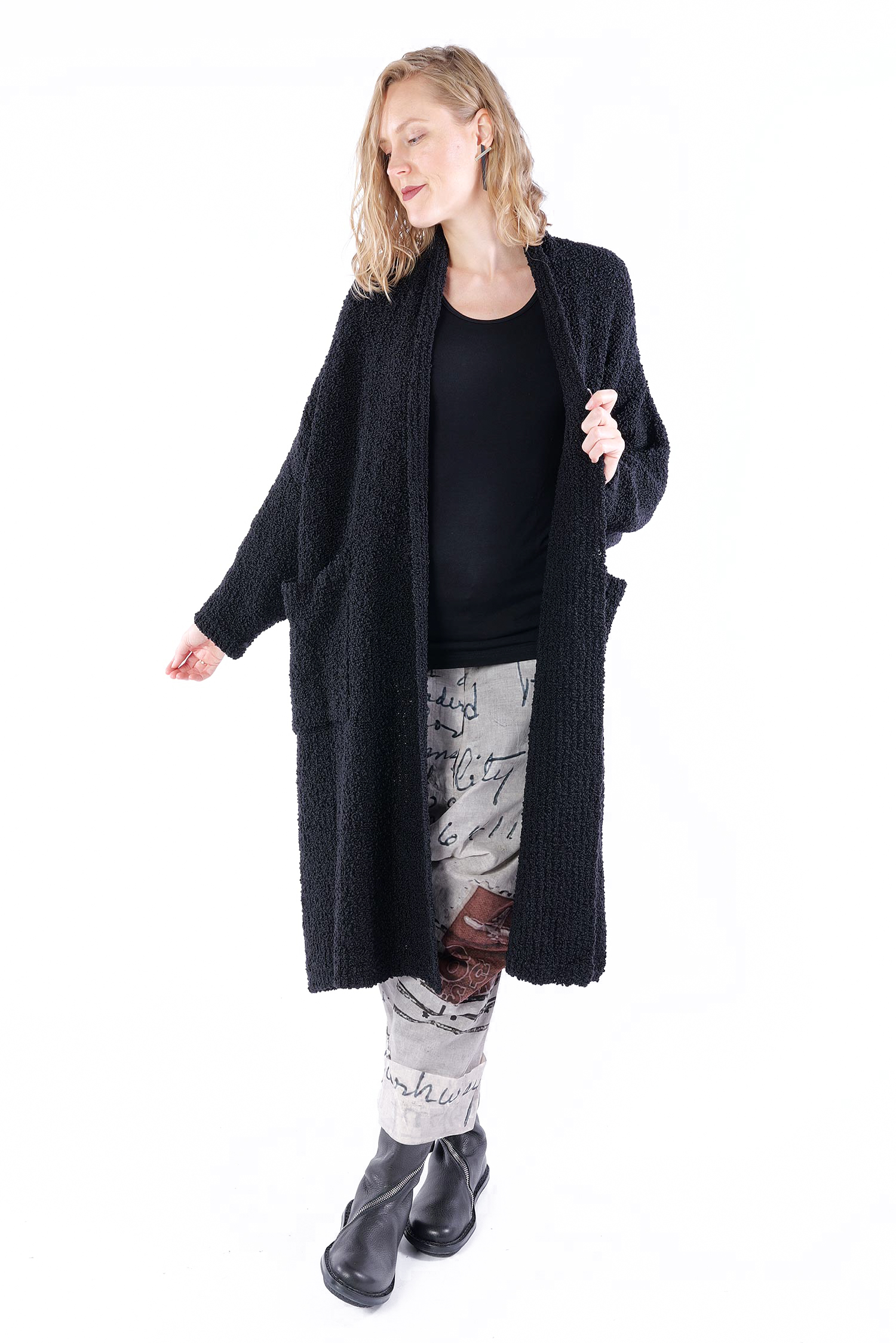 Long knit cardigan made of bouclé yarn by Studio B3.