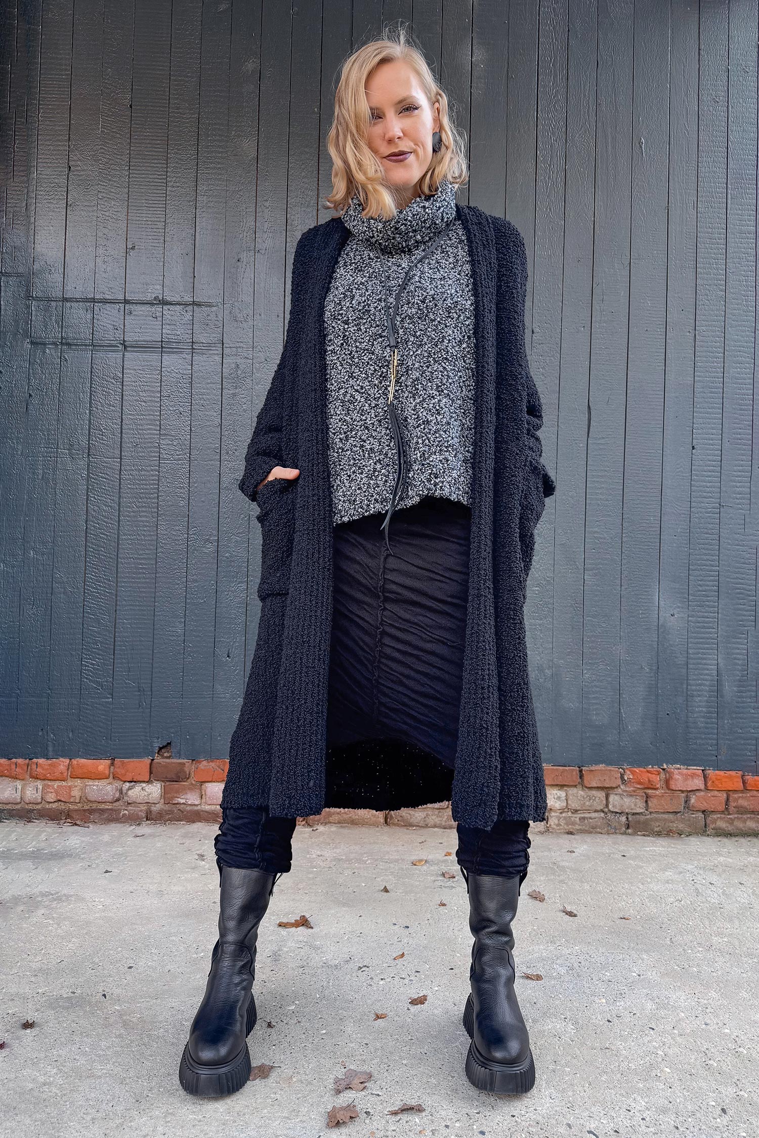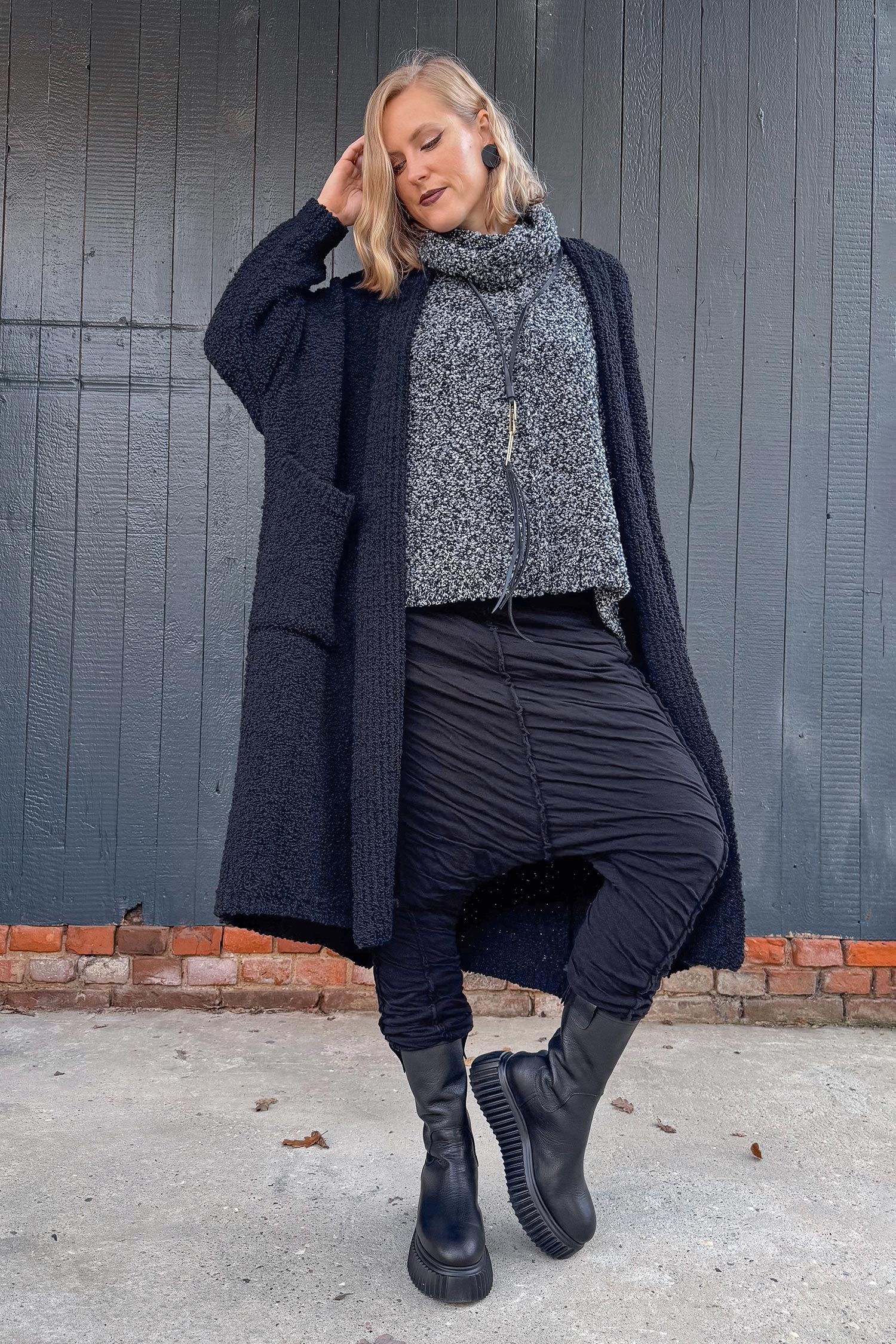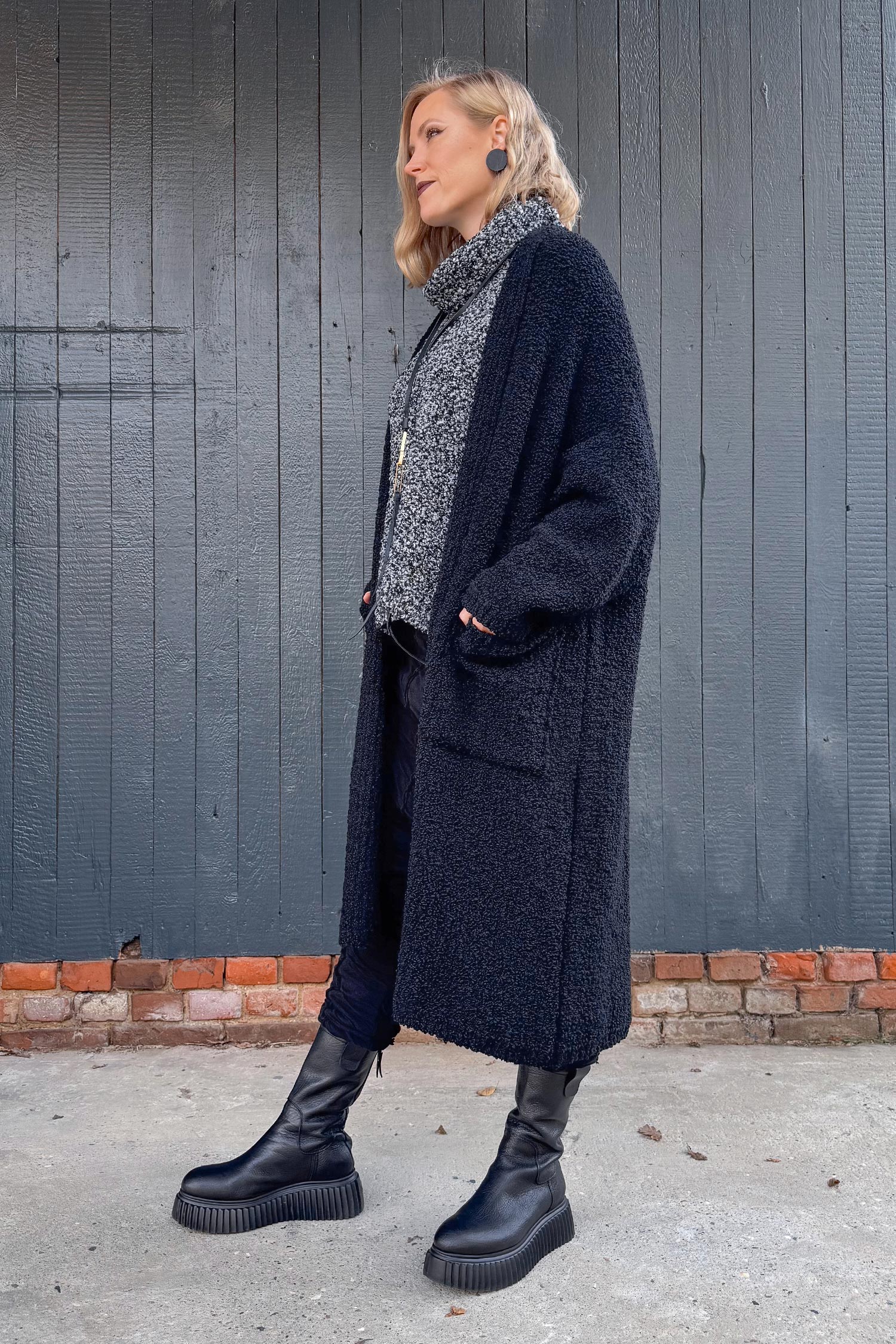 Long knit cardigan made of bouclé yarn by Studio B3.