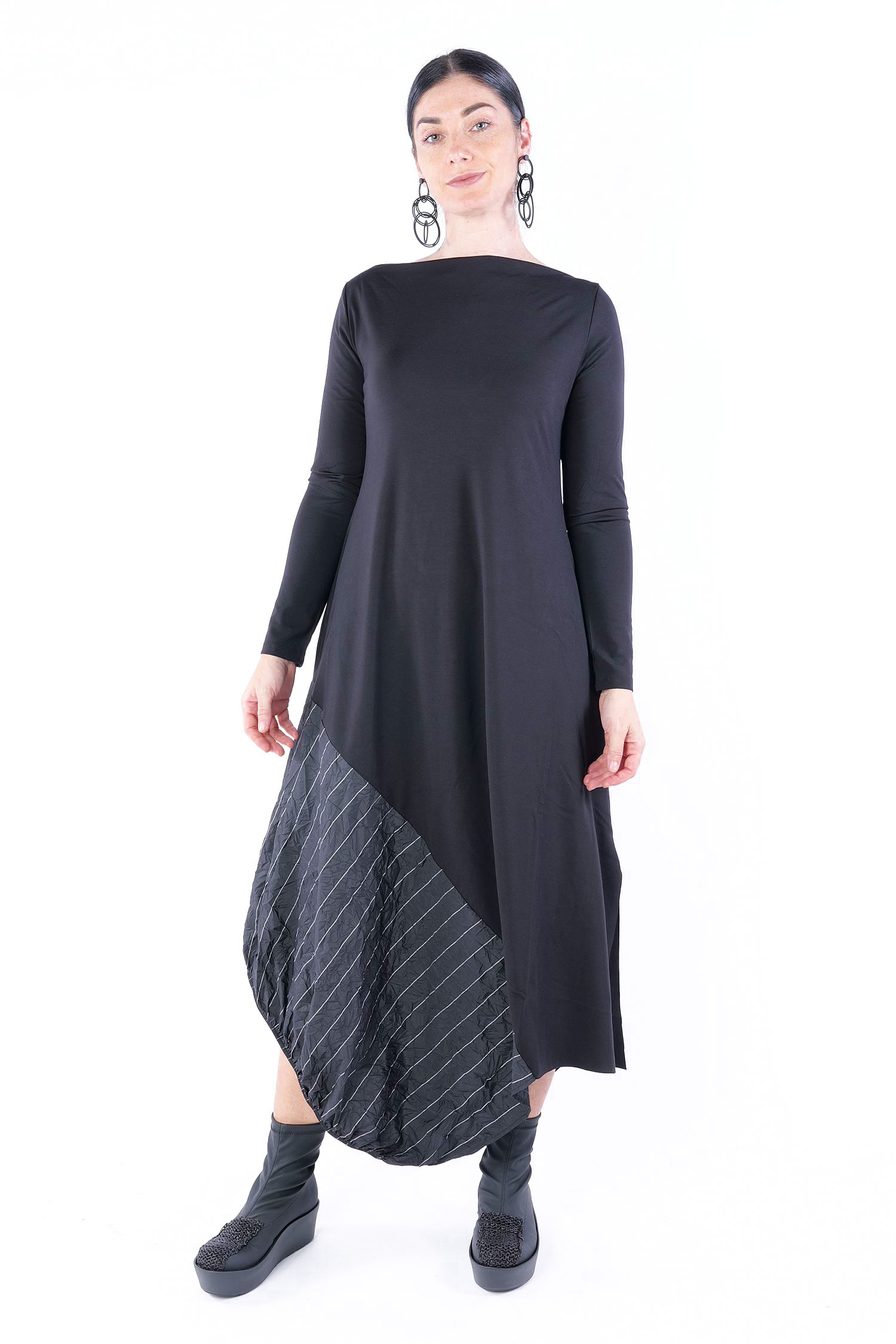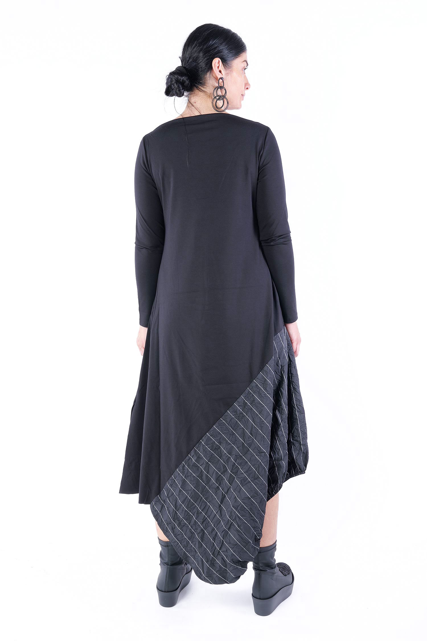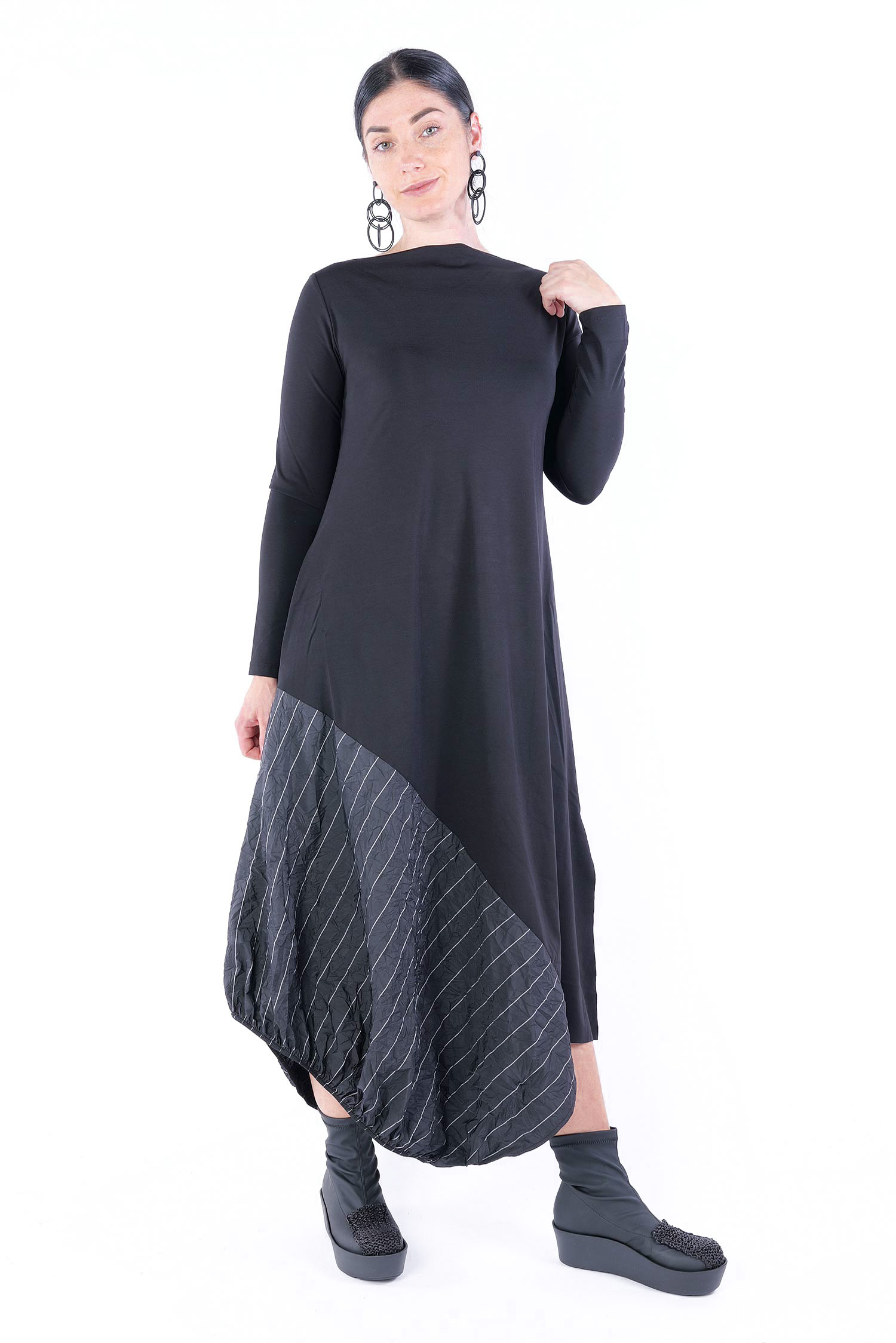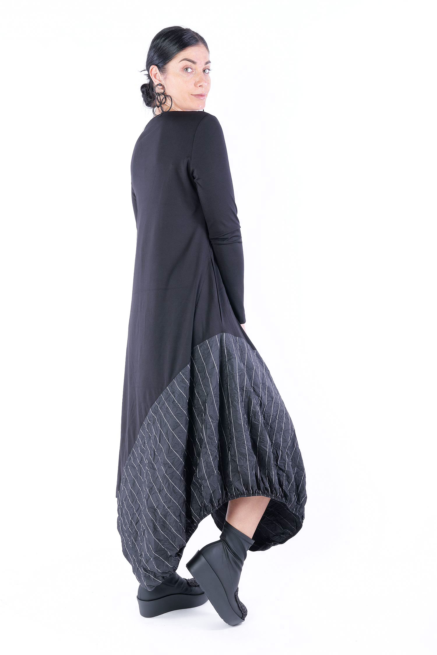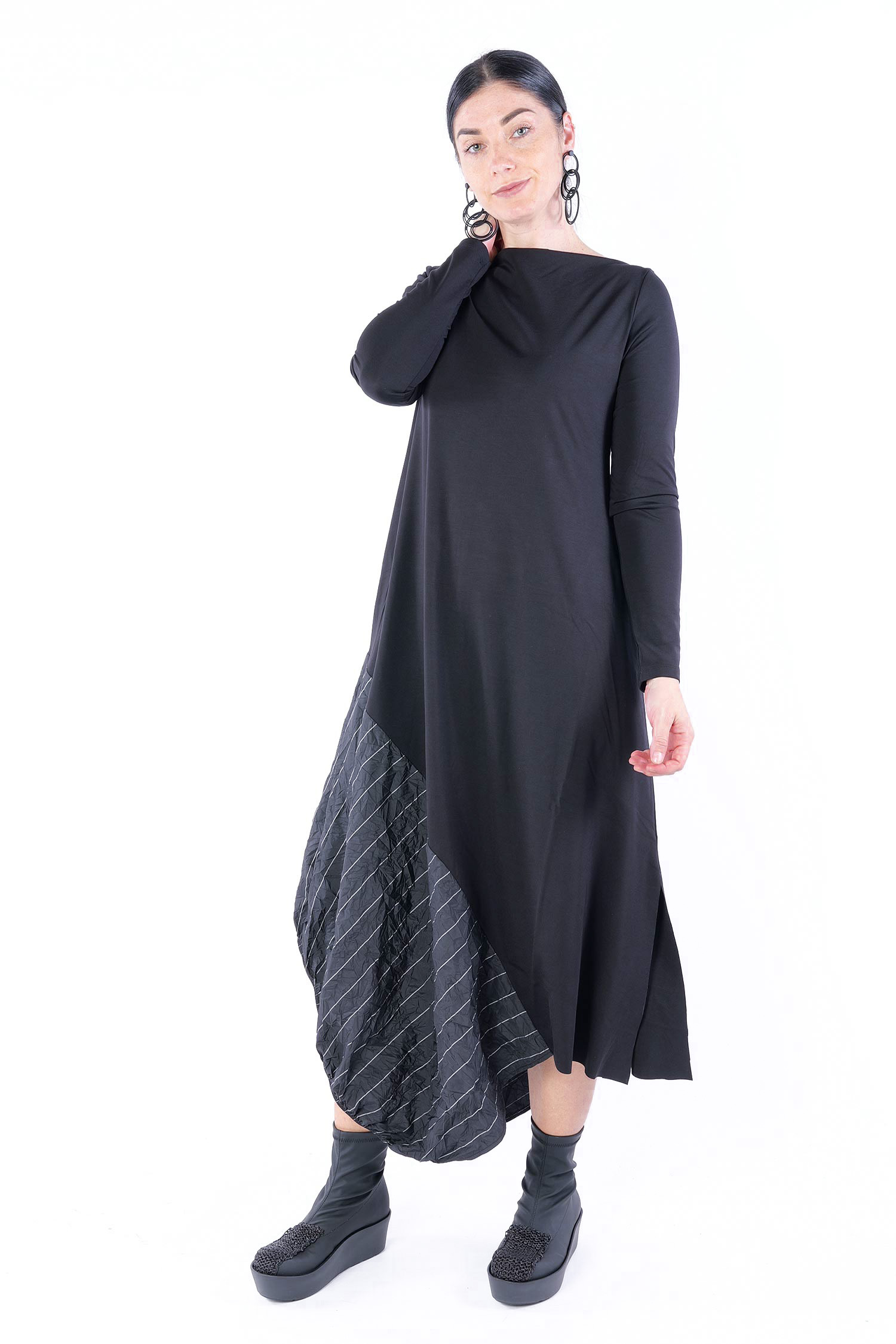 Fits slightly more generously, material is elastic, striped material is not elastic