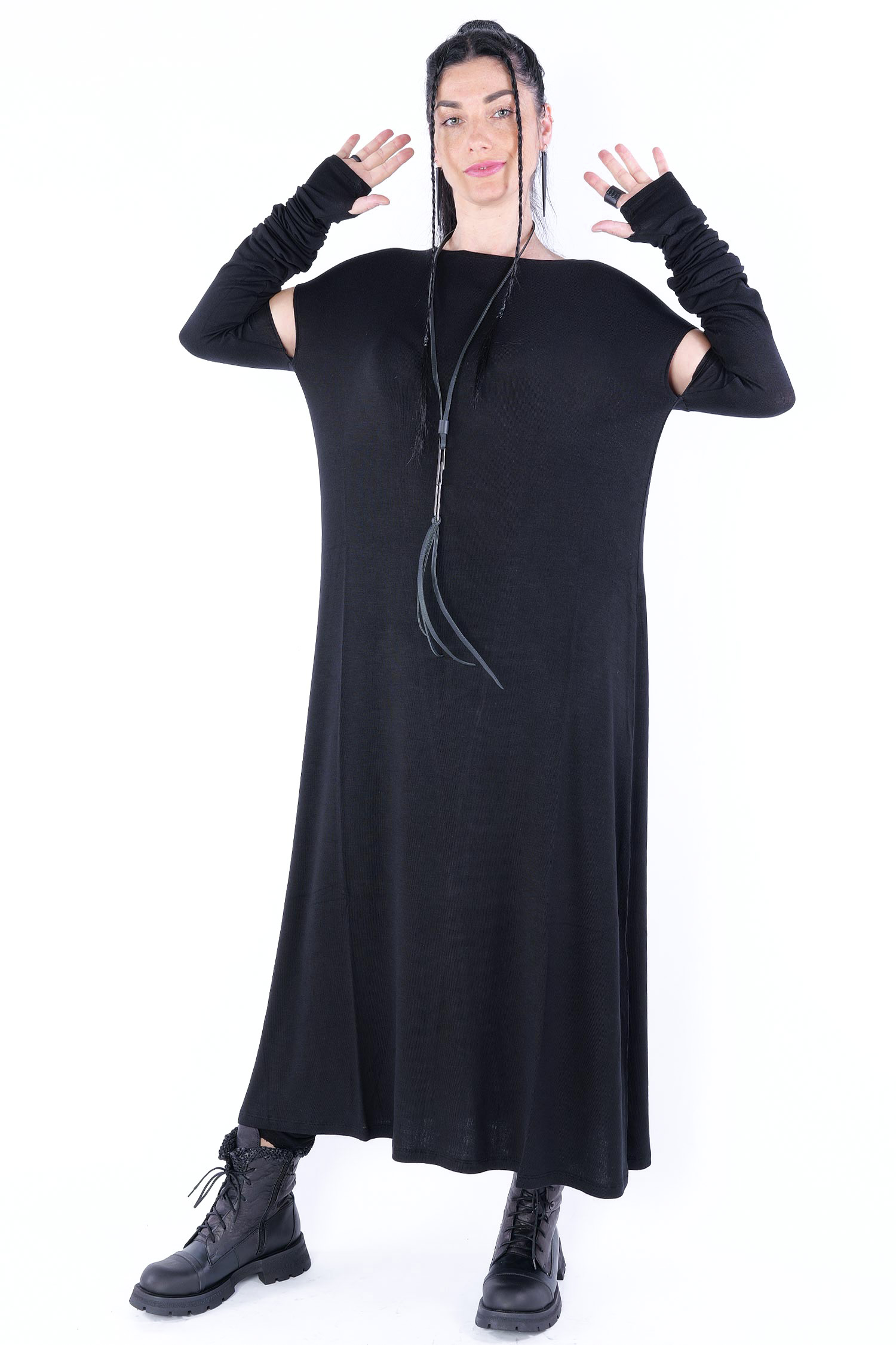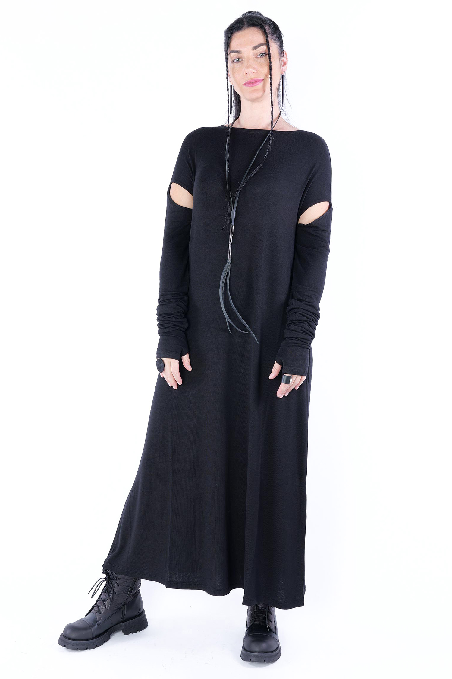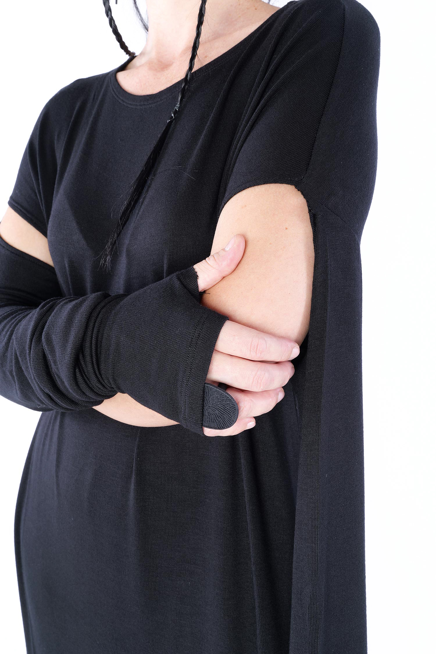 Long jersey dress with detailed sleeves by Nostra Santissima.