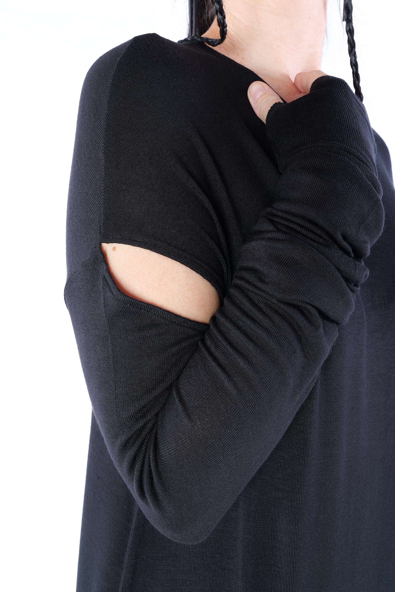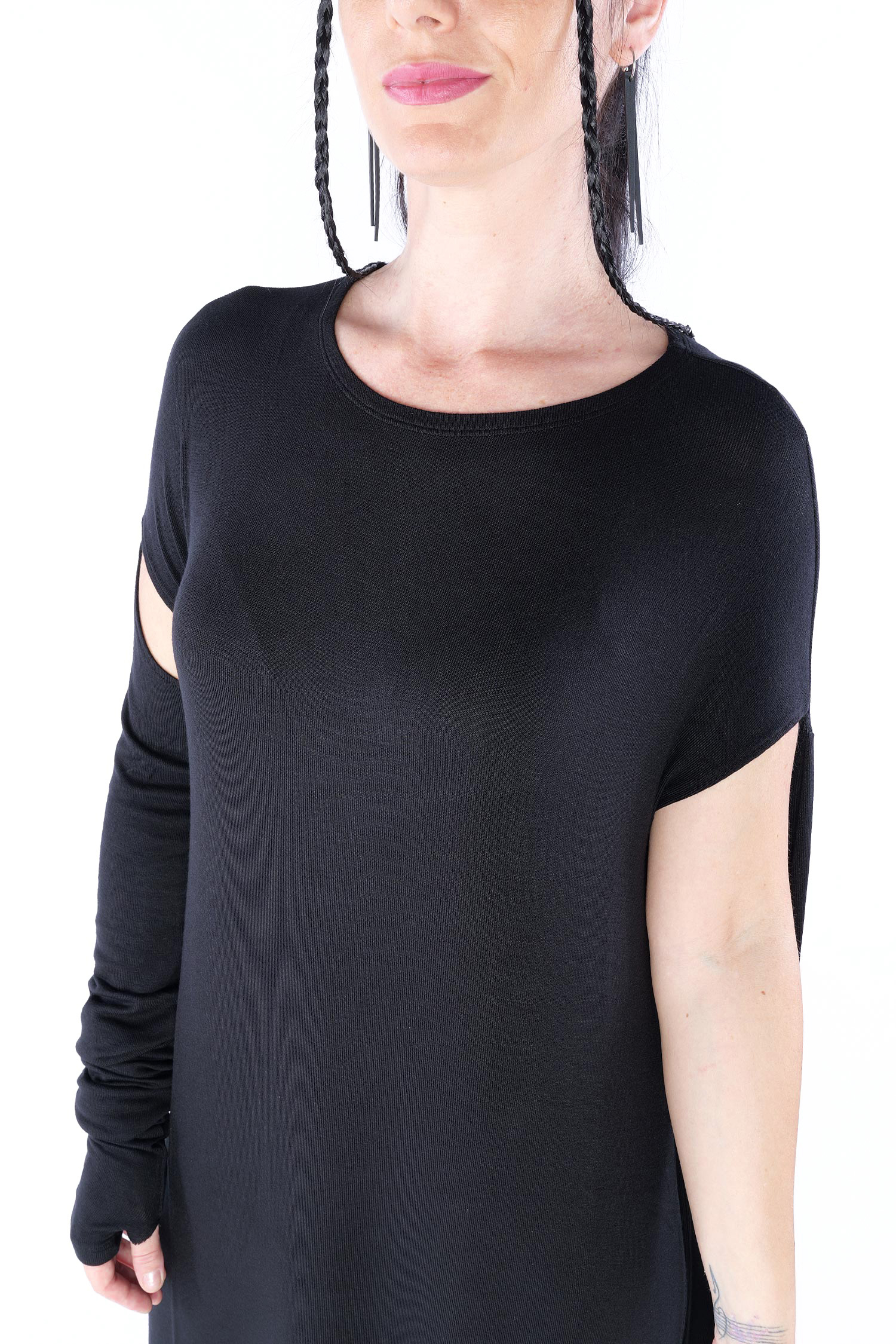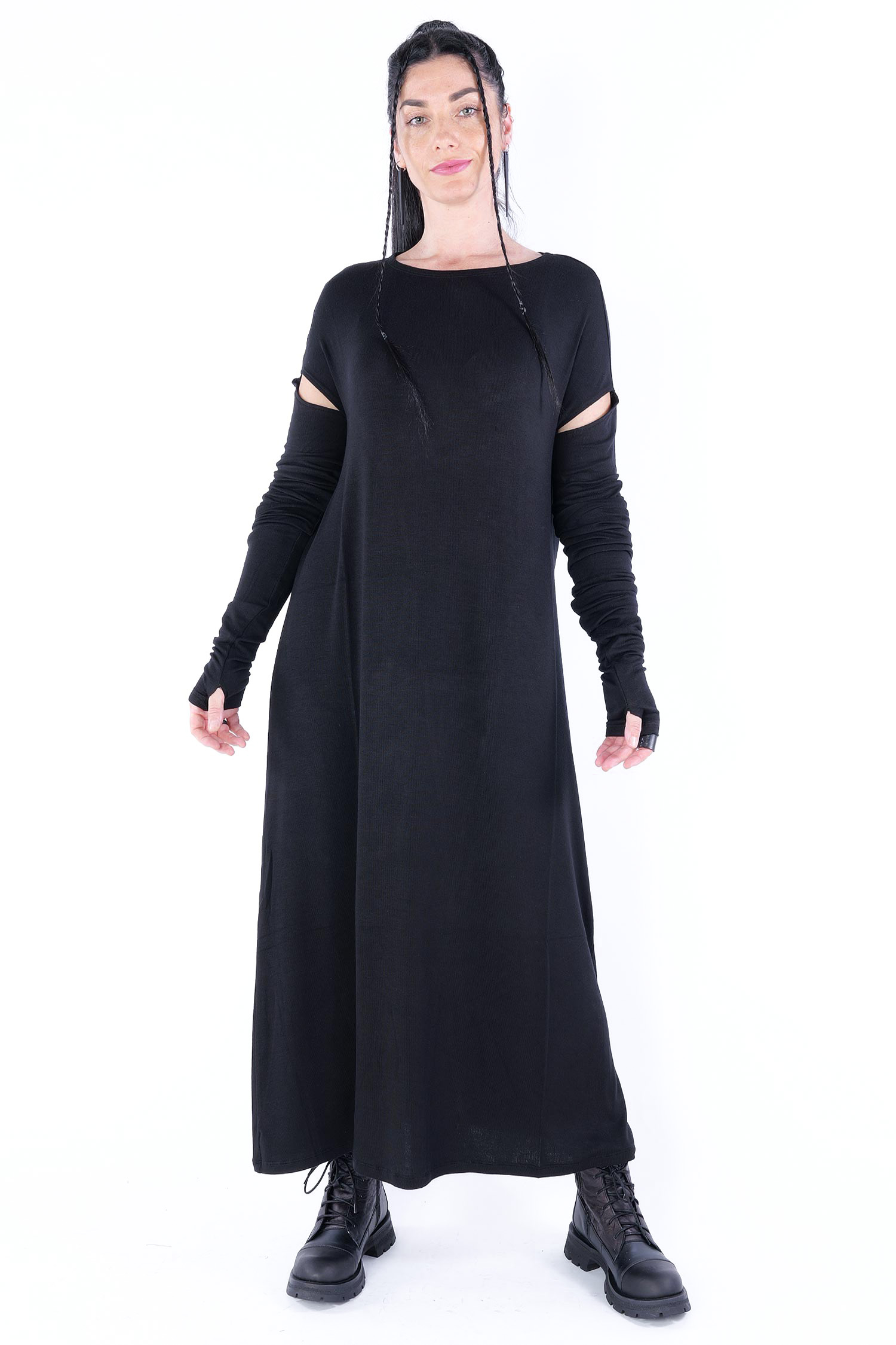 Long jersey dress with detailed sleeves by Nostra Santissima.