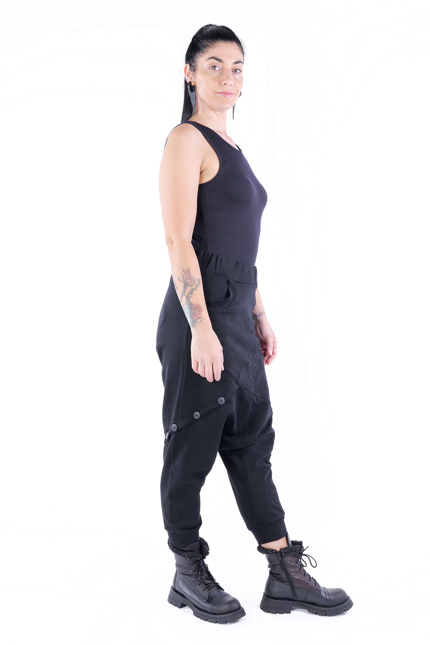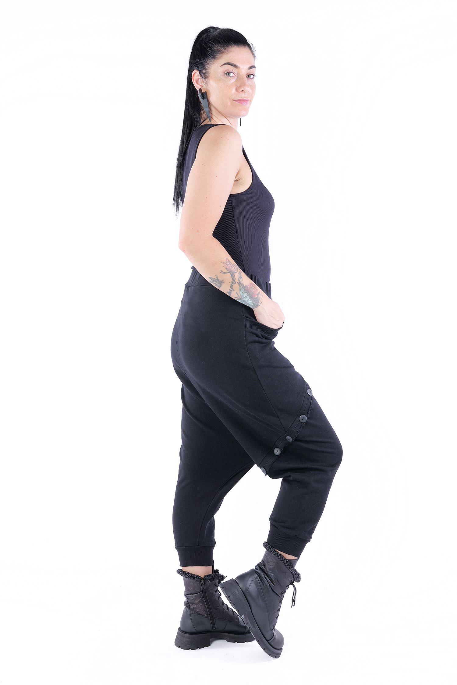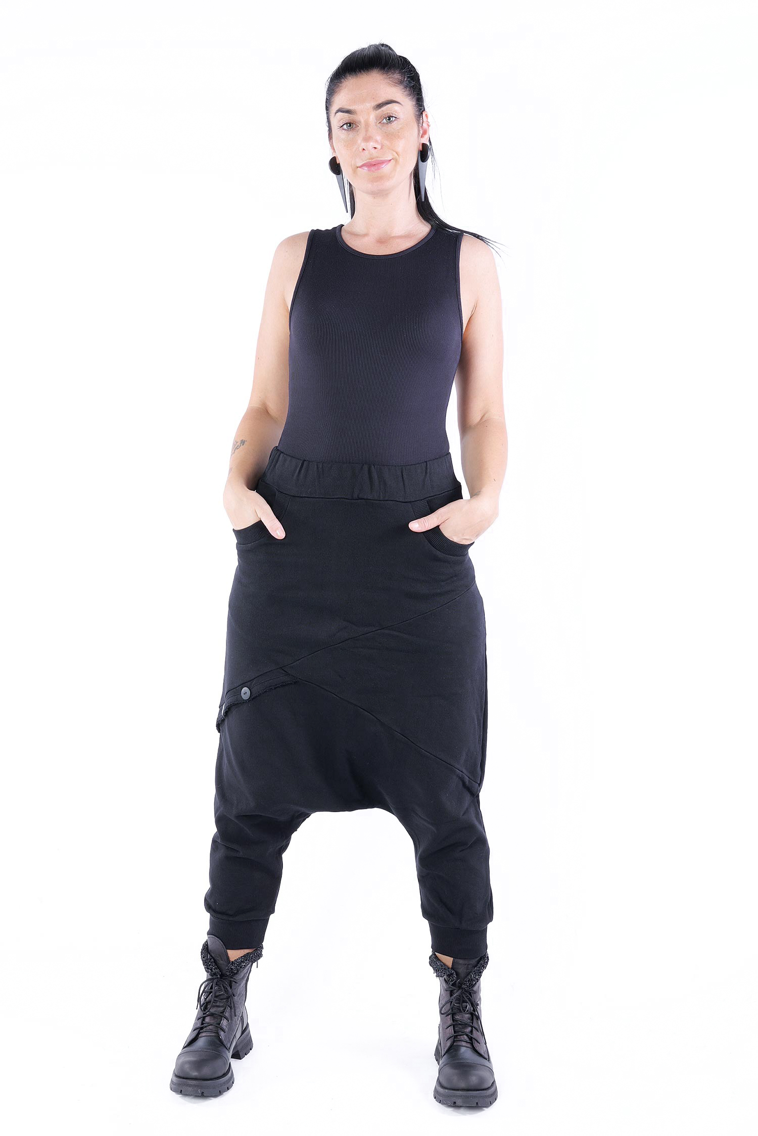 Size S/M: Waist unstretched = 37 cm, stretched = 48 cm / Inseam length = 62 cm / Hip = 48 cm / Length = 91 cm