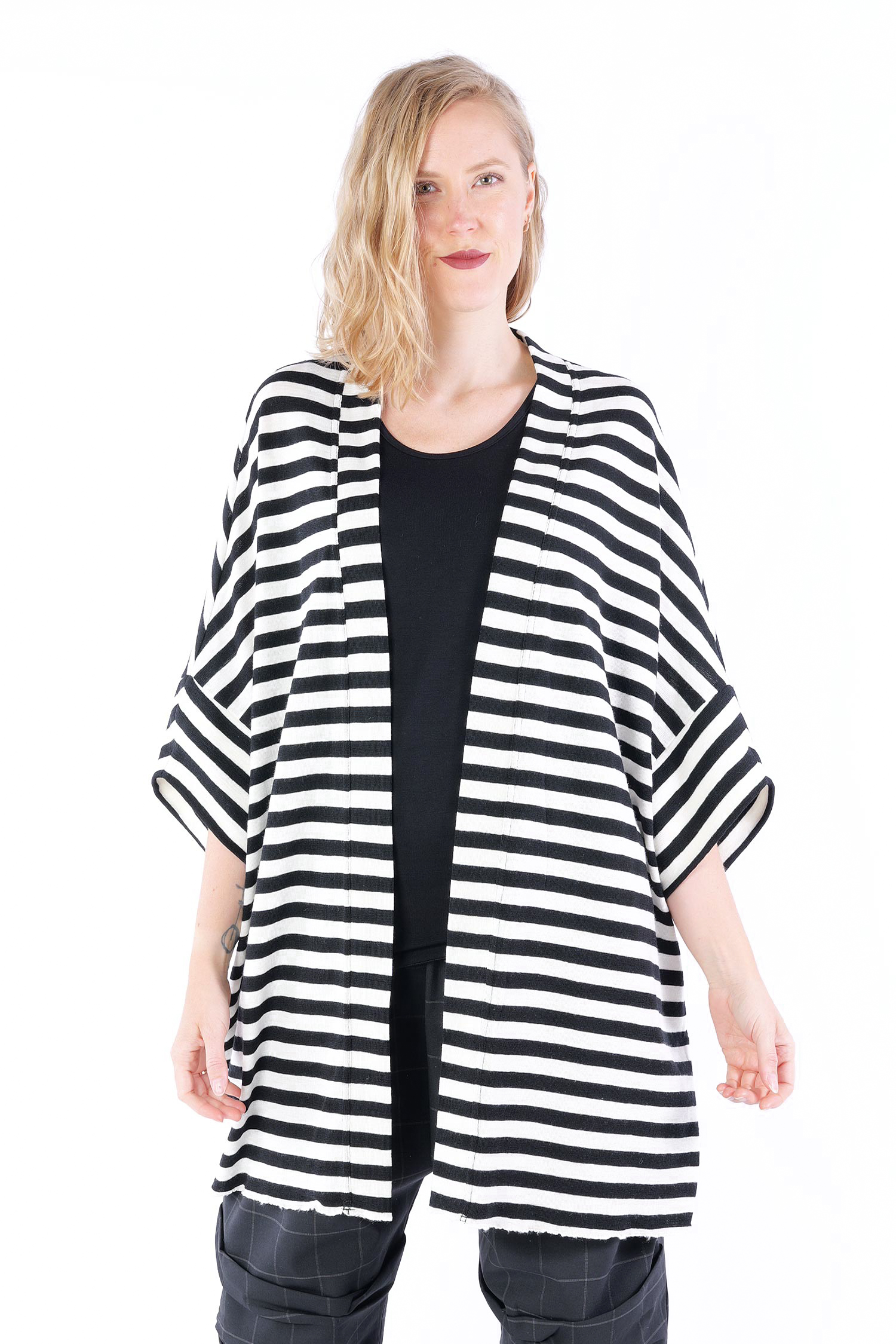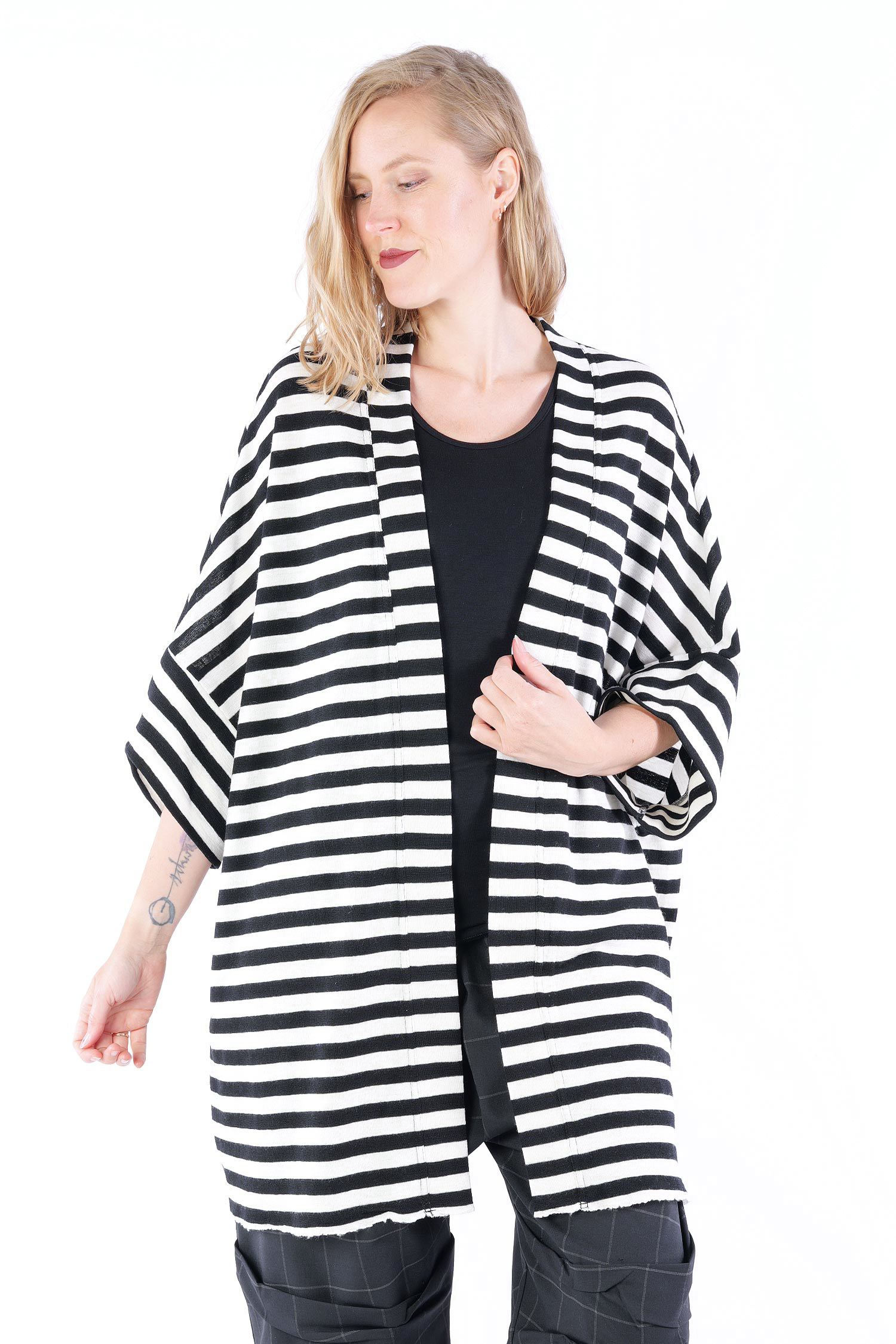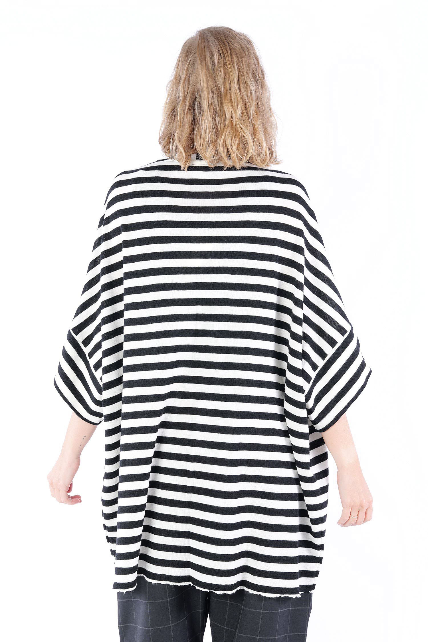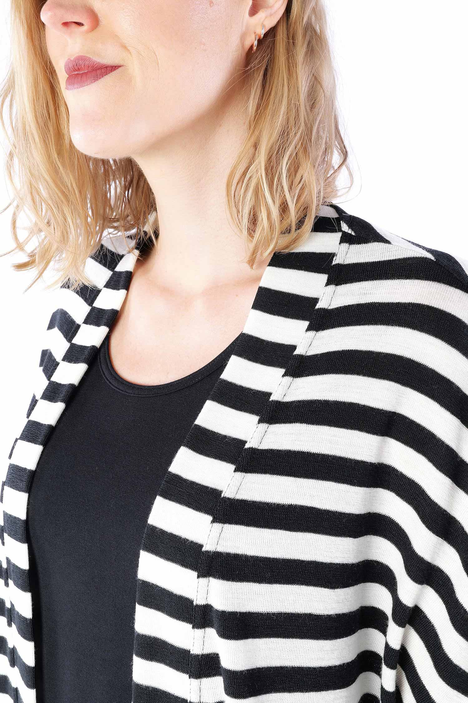 Merino cardigan - white-black wide stripes - 8018
