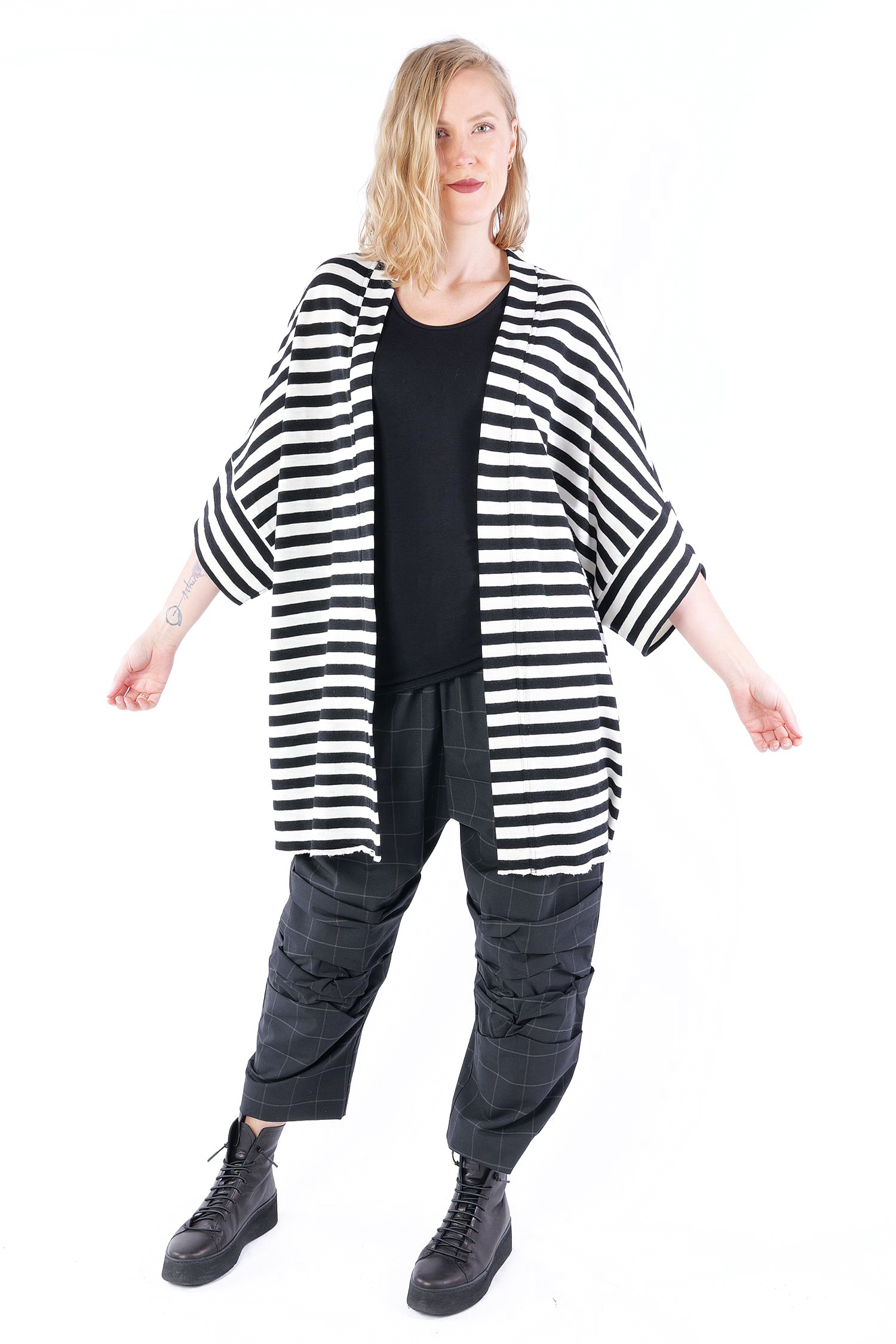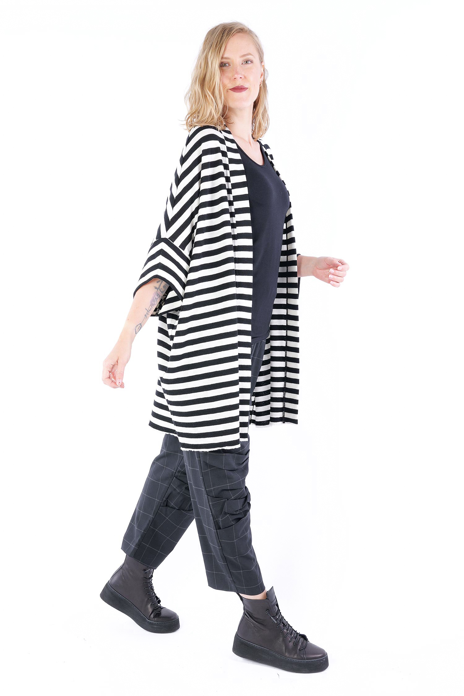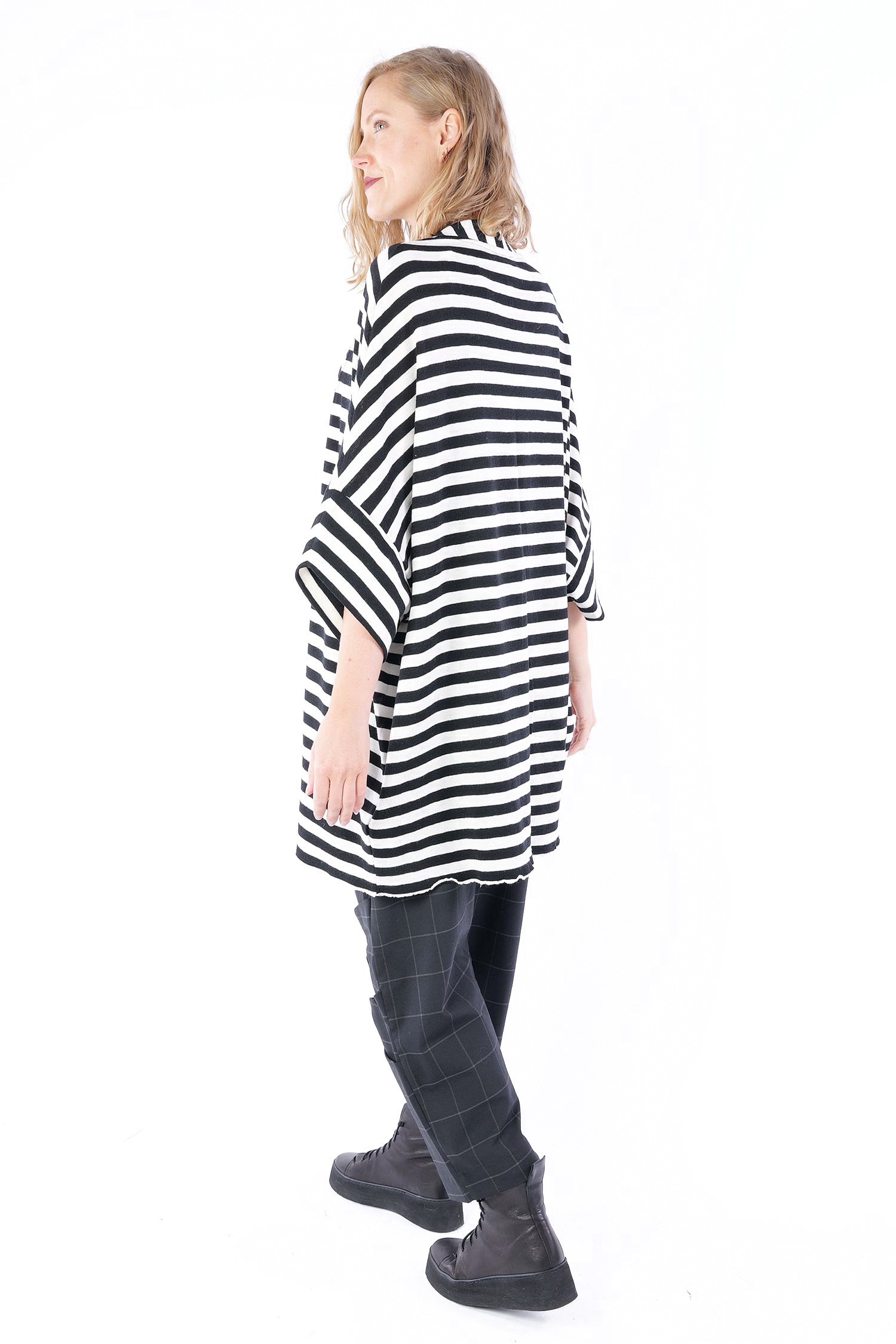 Merino cardigan - white-black wide stripes - 8018