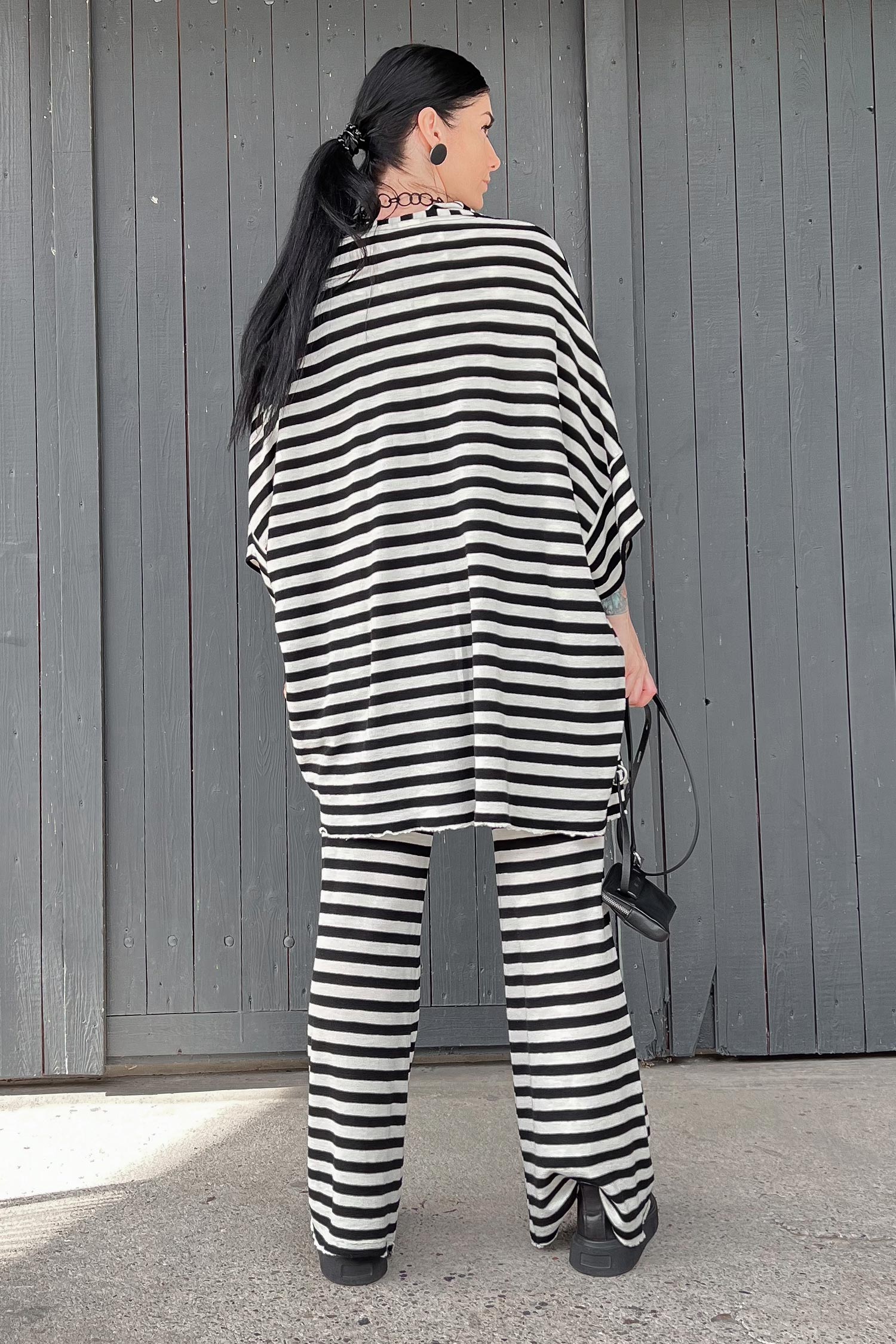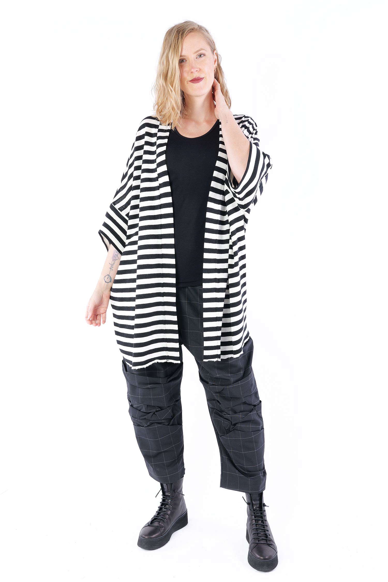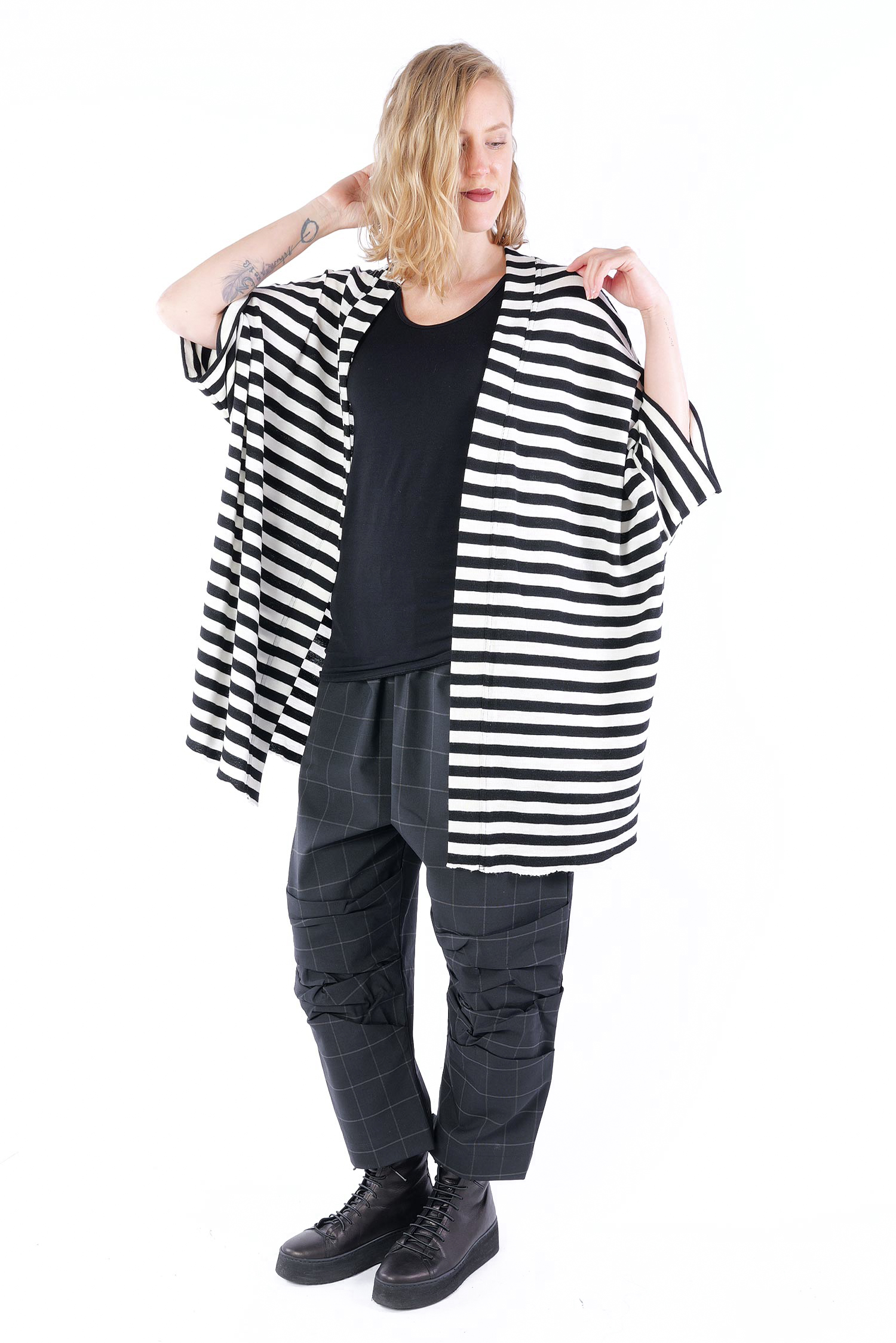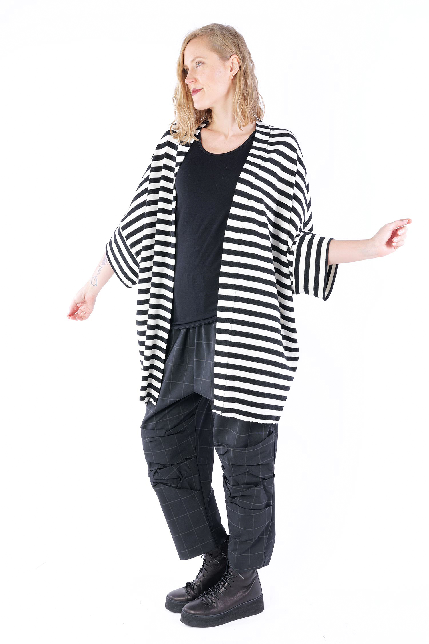 Merino cardigan - white-black wide stripes - 8018