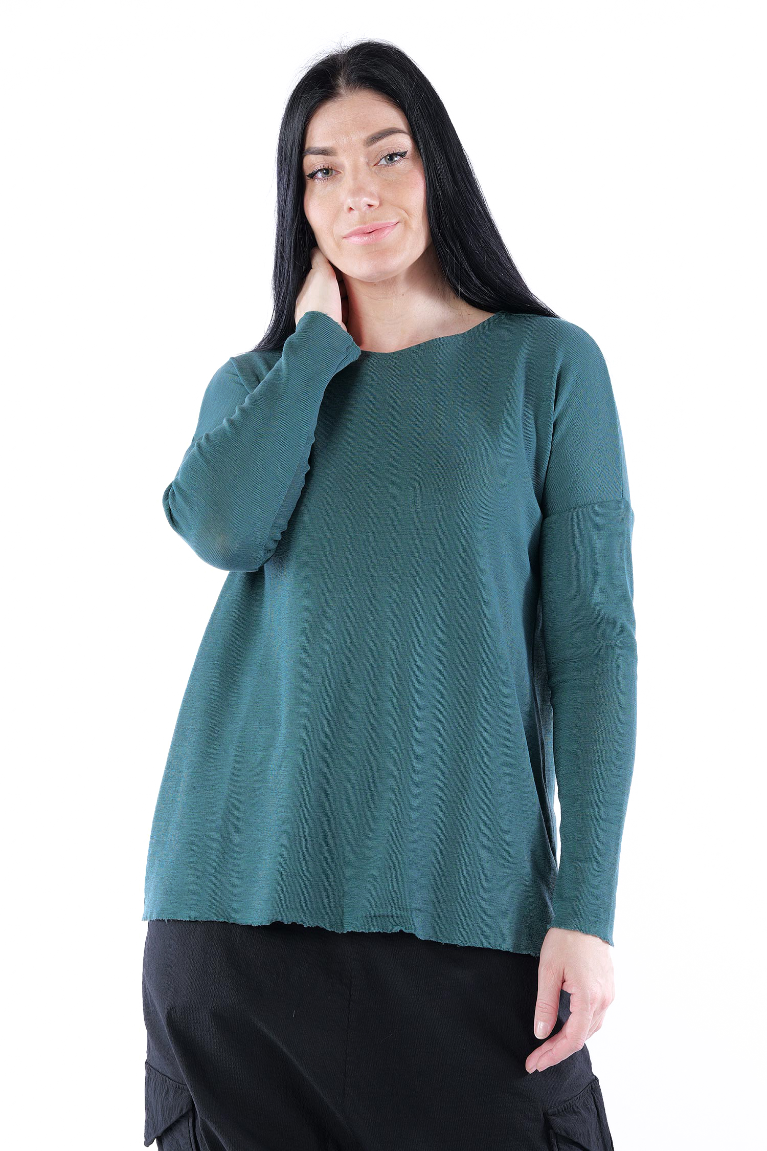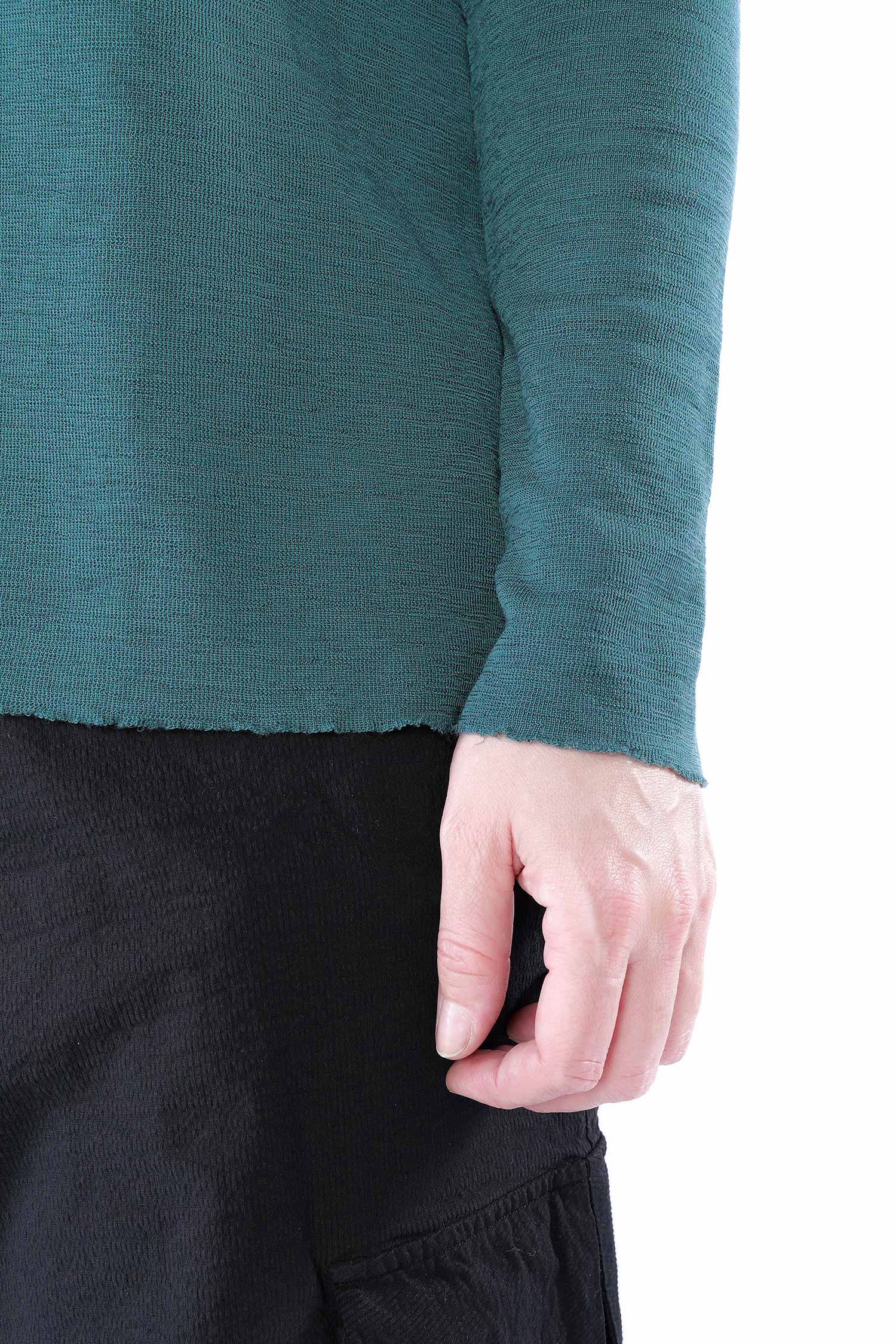 - Hem and sleeves with open edges