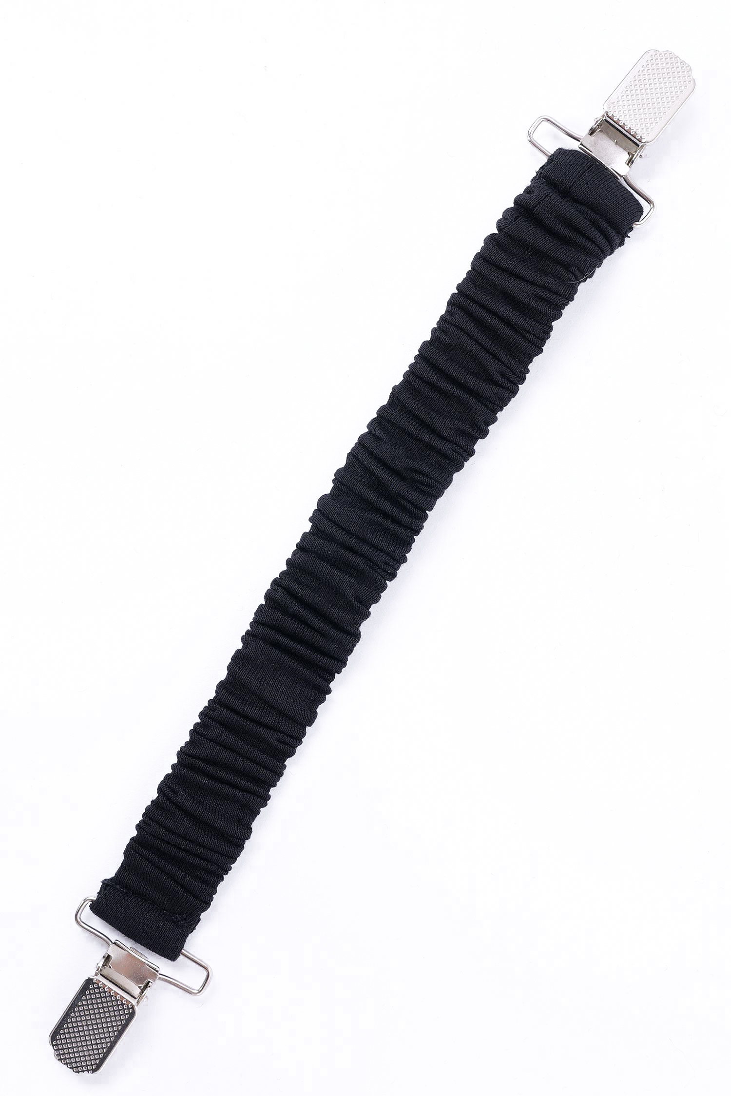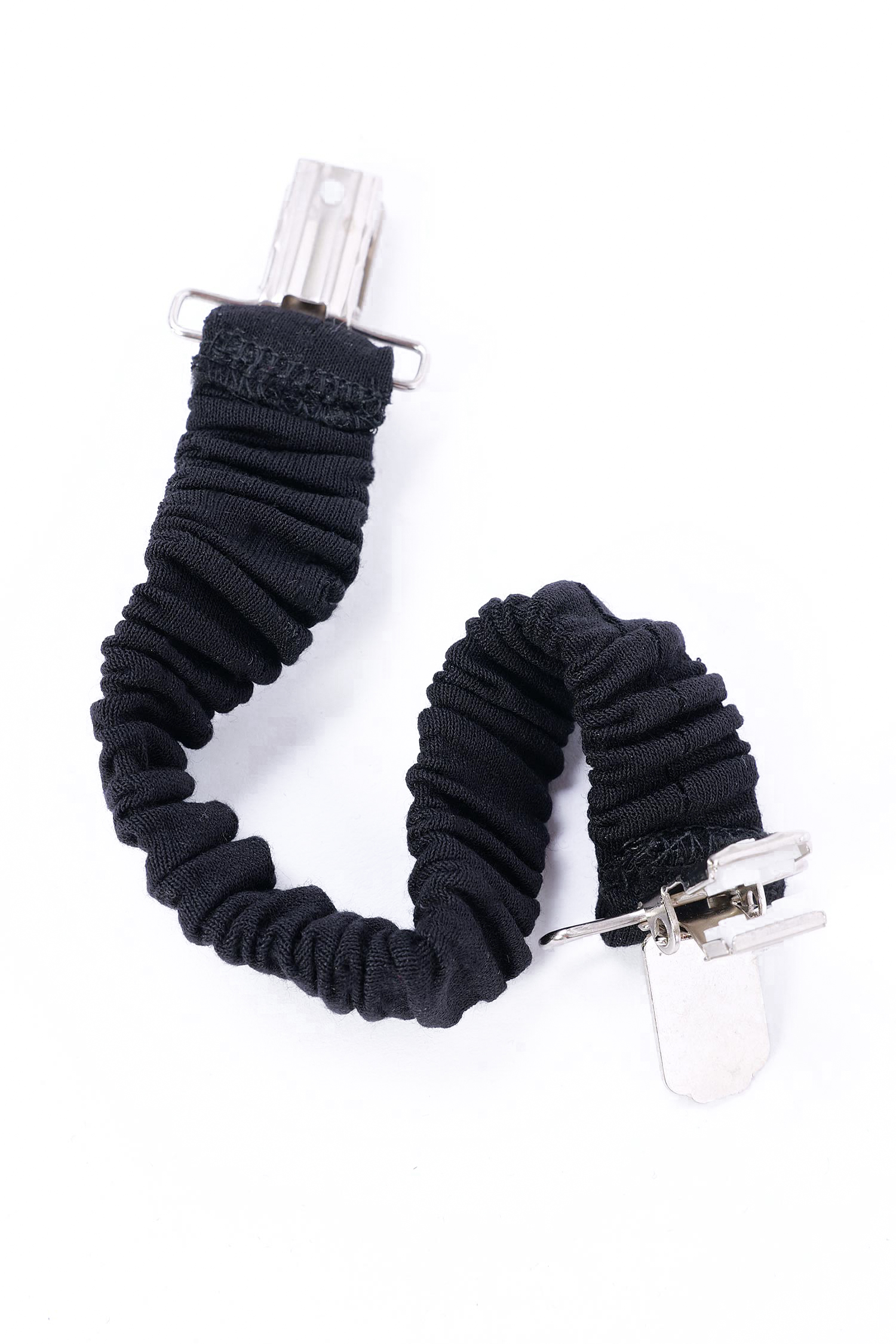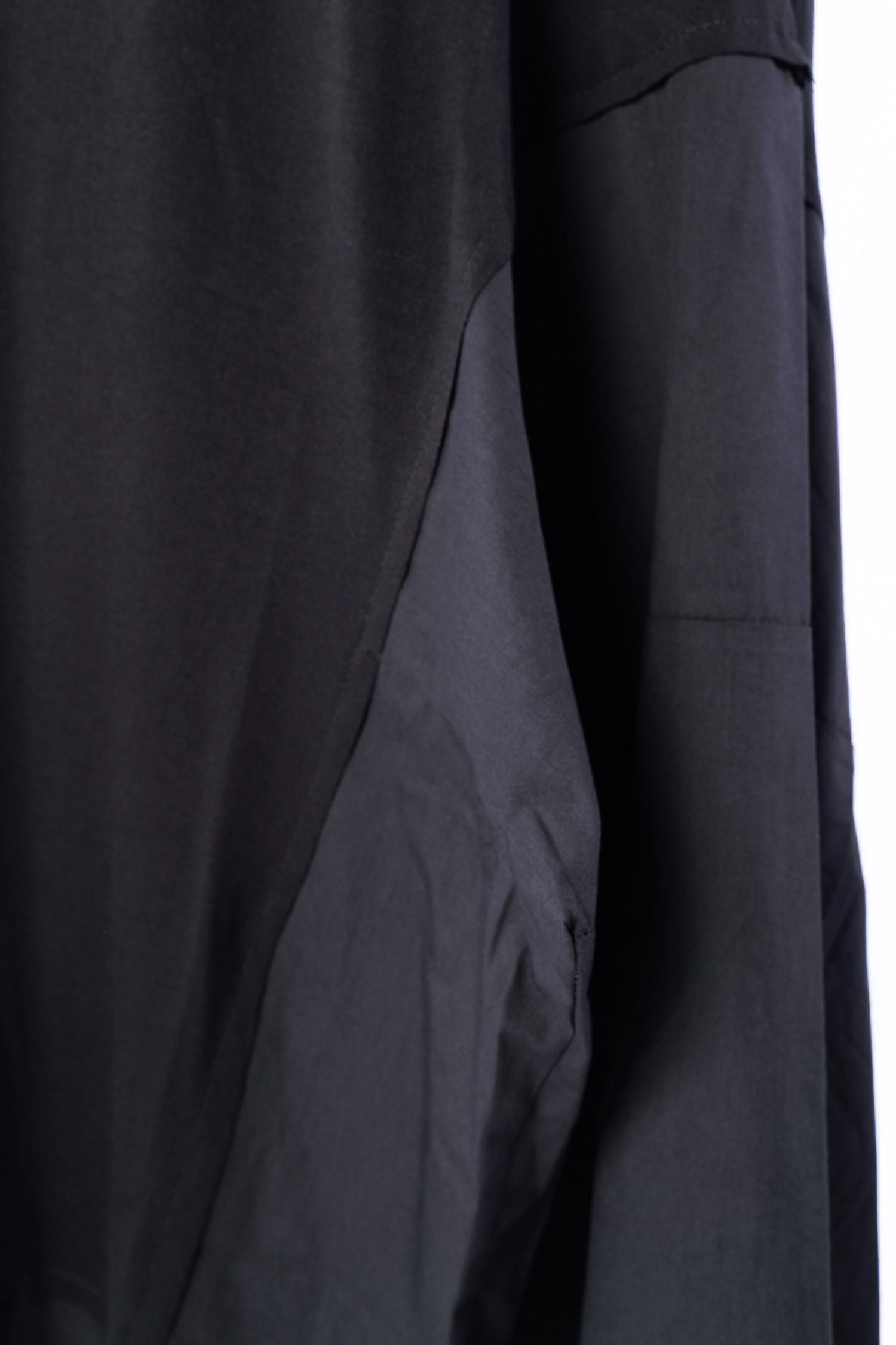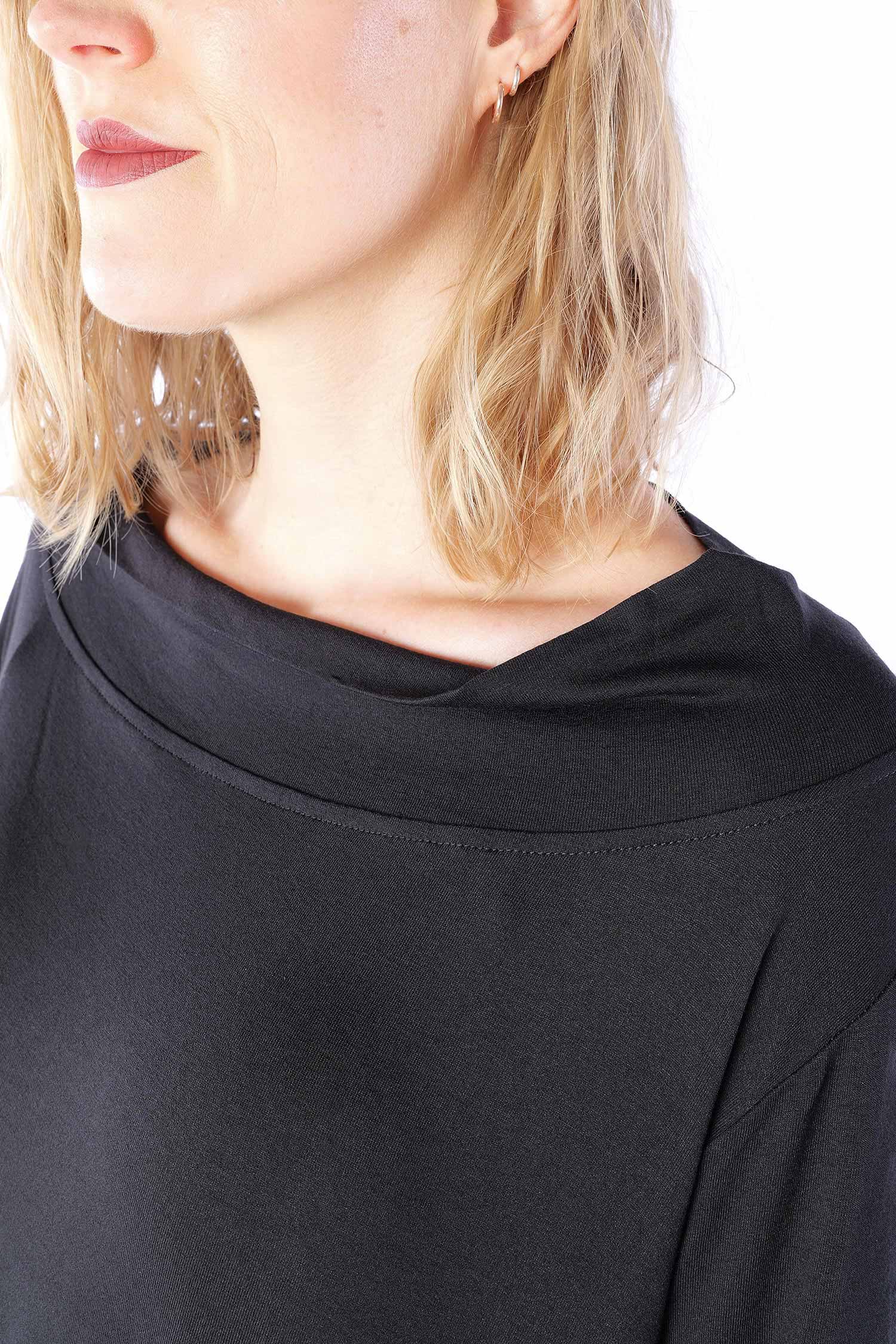 Details: - High neckline with waterfall-look - Jersey material - Cotton material at the side and on hem - Long sleeves - Tulip-shaped cut - Trimmed edges - Clip to vary width included