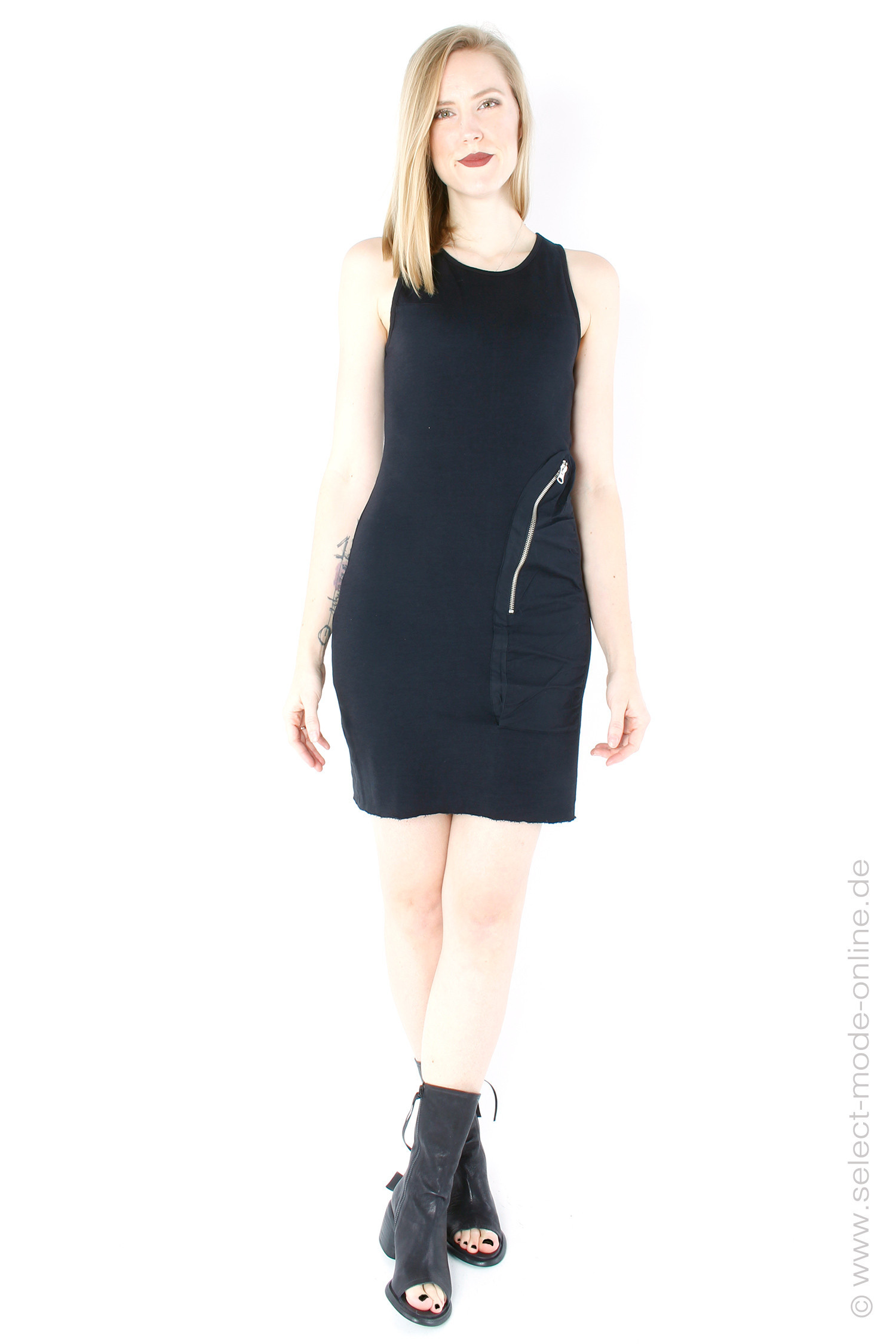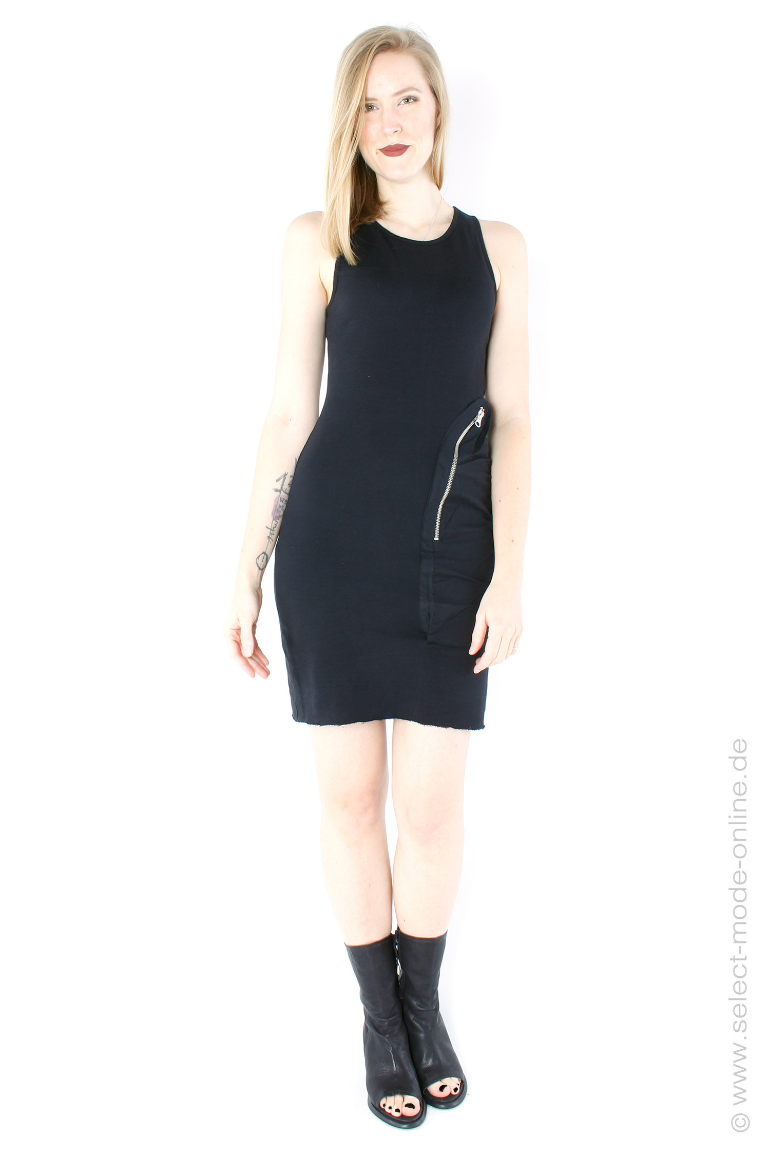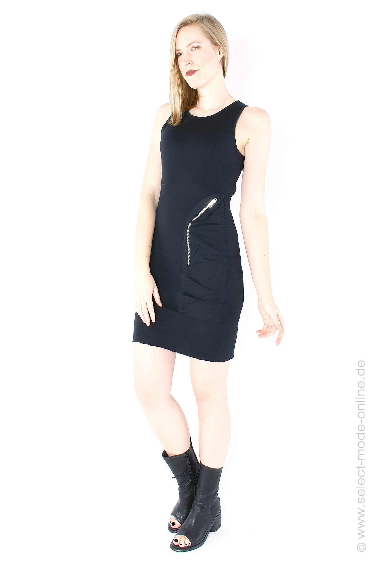 Short dress made of sweatshirt fleece with a pocket with a metal zipper on the side by thom/krom.