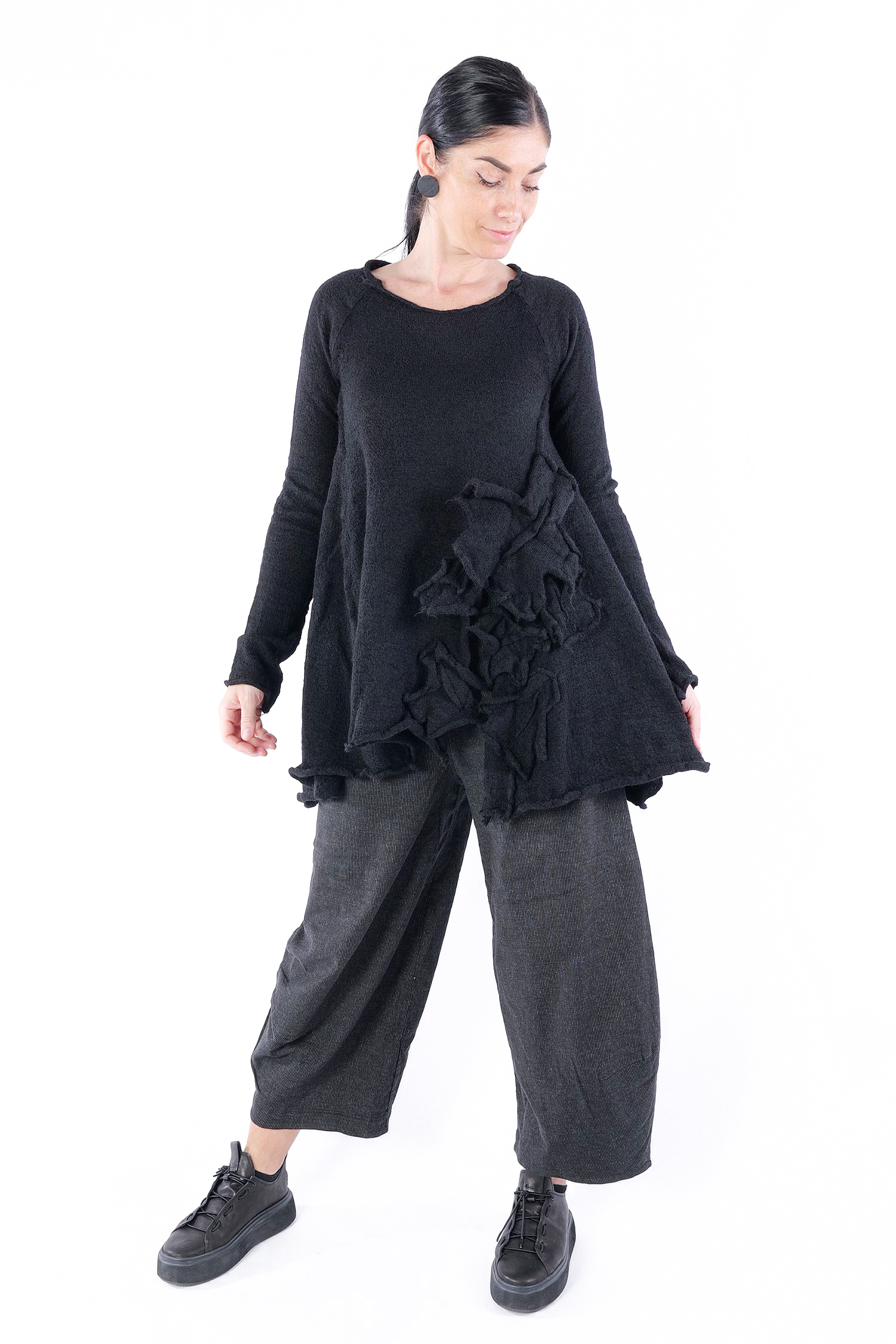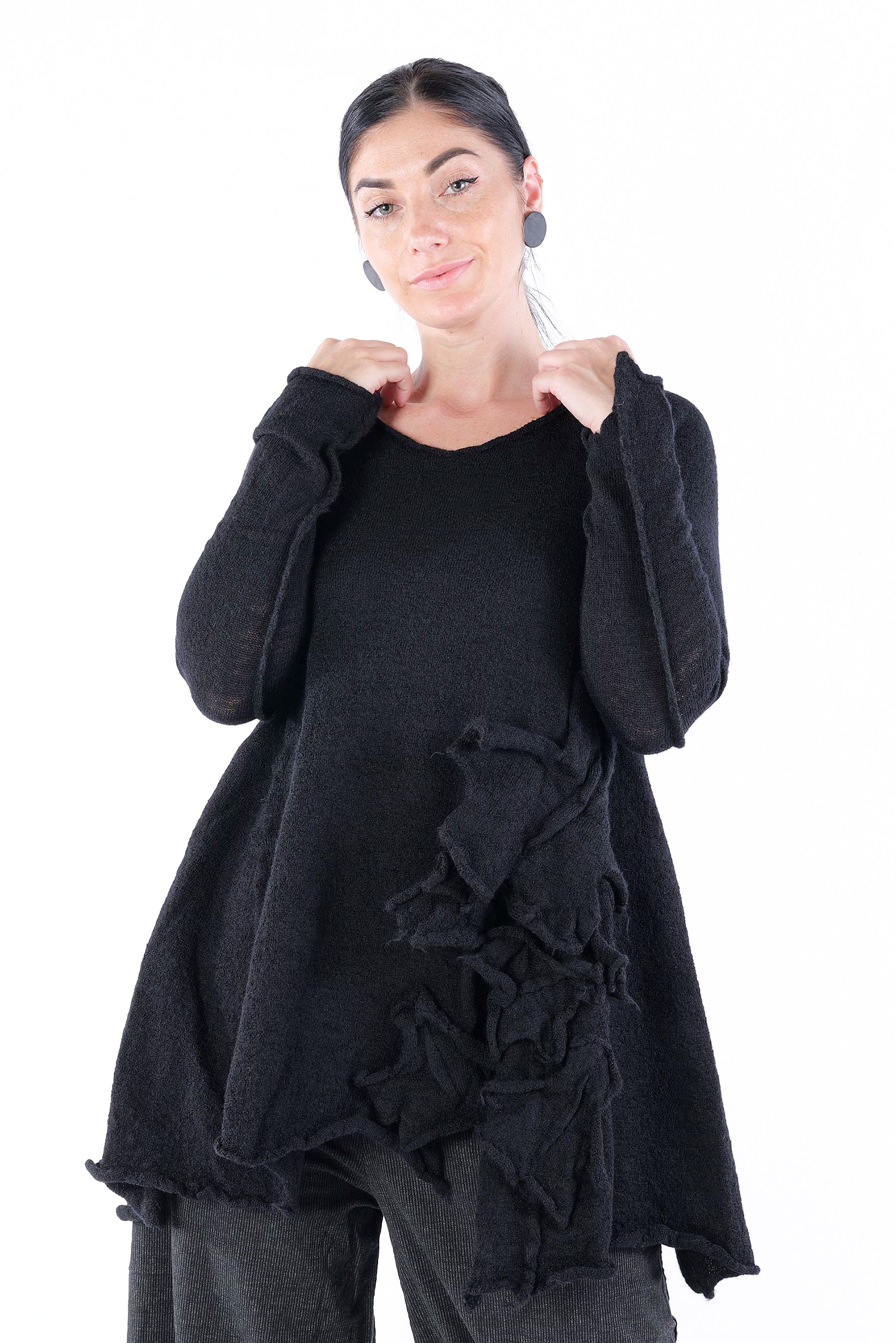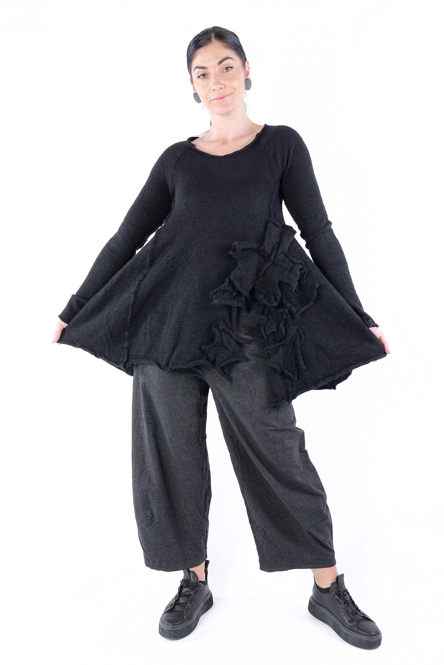 Tulip-shaped virgin wool pullover with blossom details by Rundholz Black Label.
