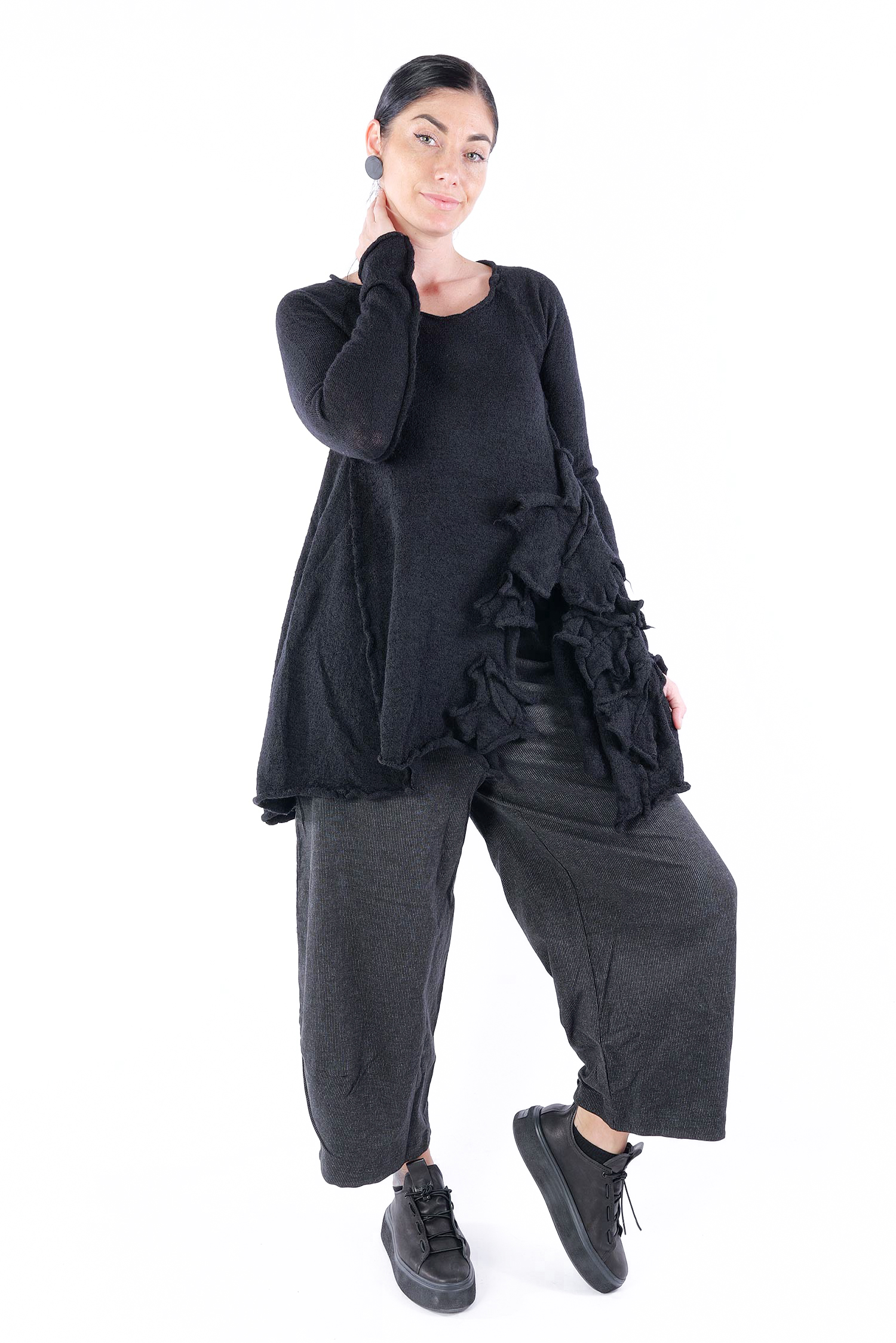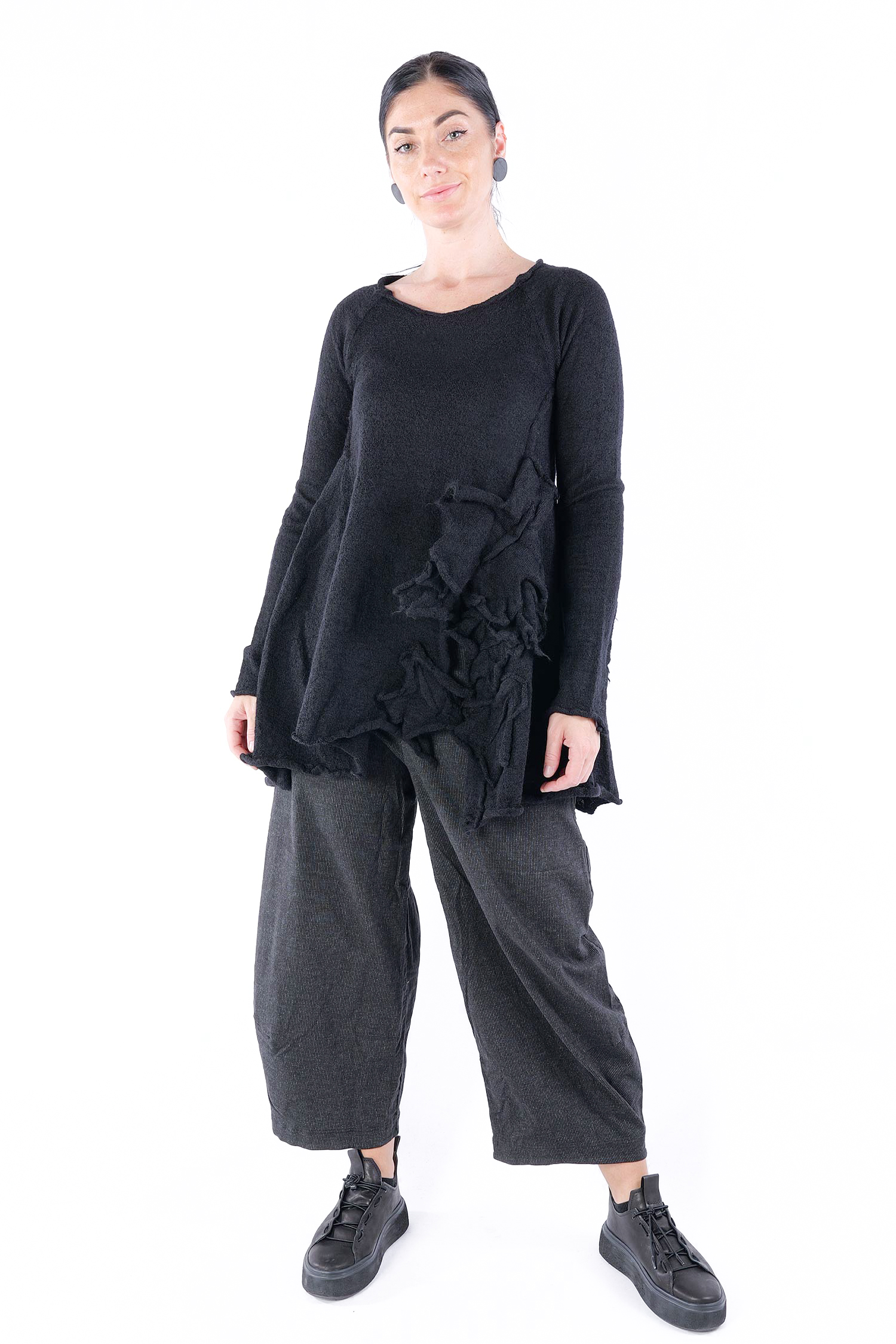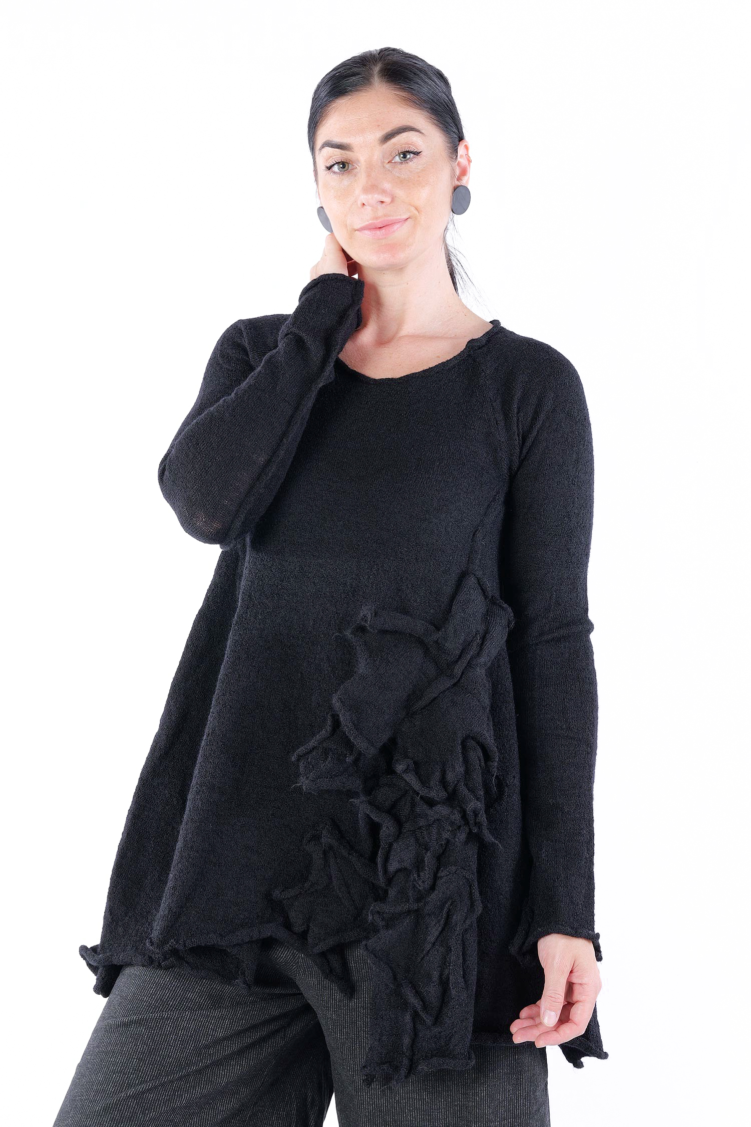 Tulip-shaped virgin wool pullover with blossom details by Rundholz Black Label.