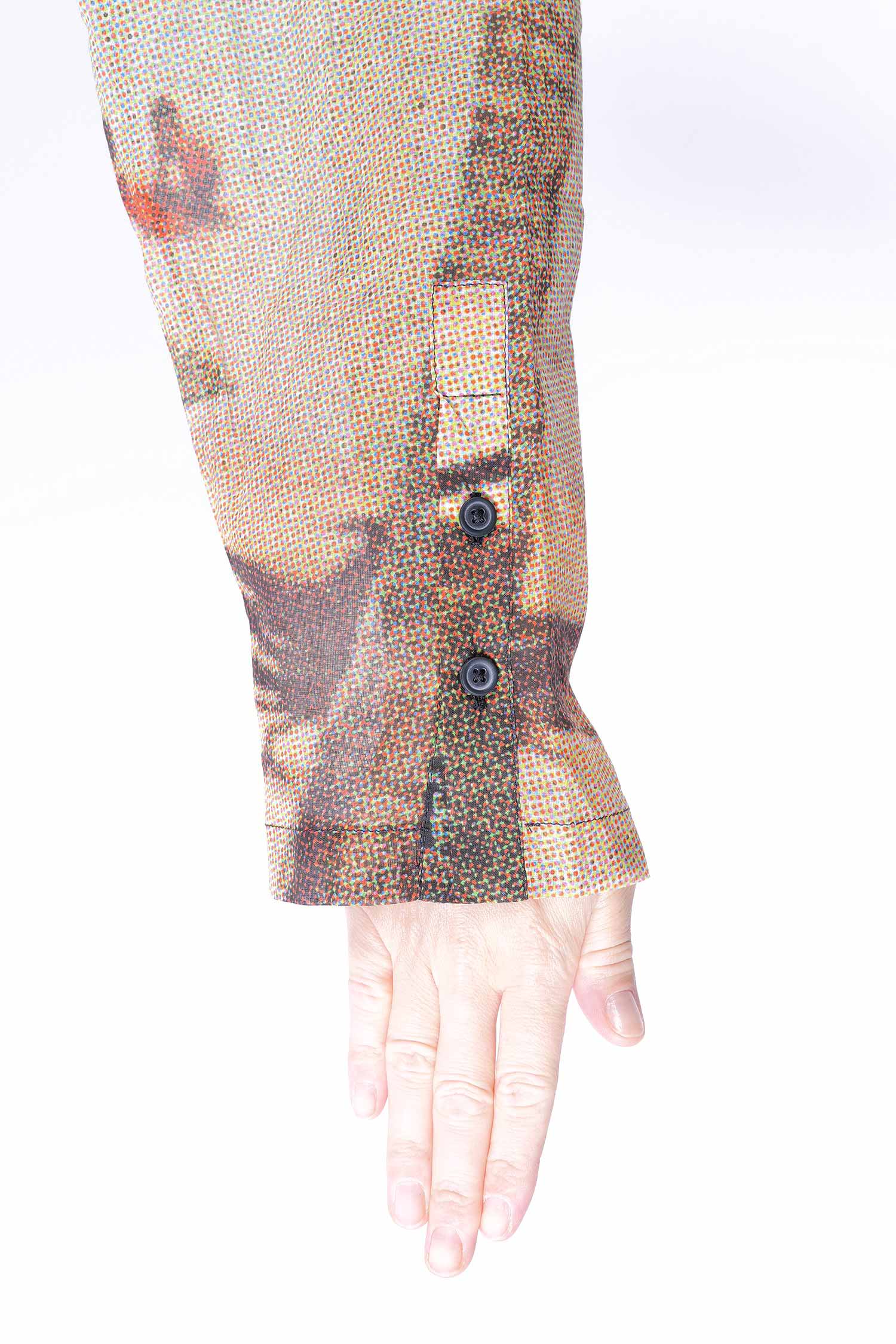 - Sleeves with buttons and cut