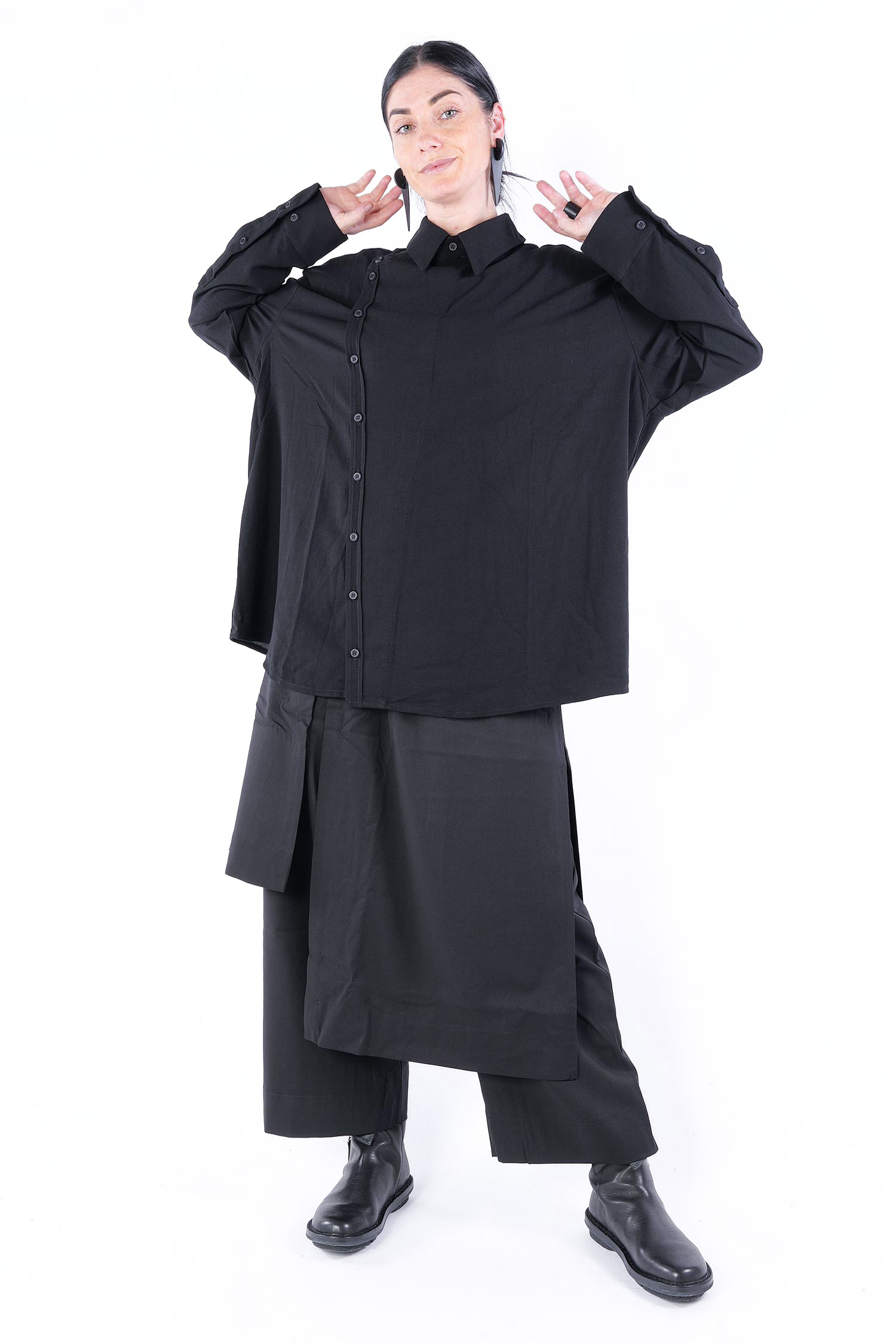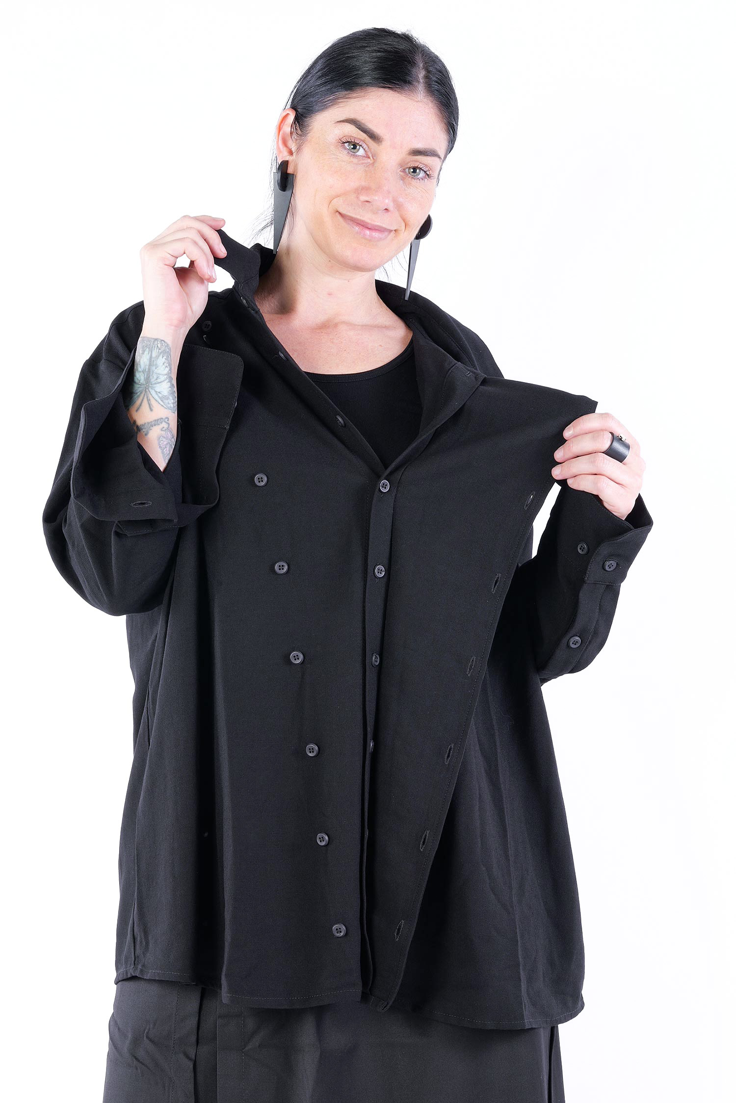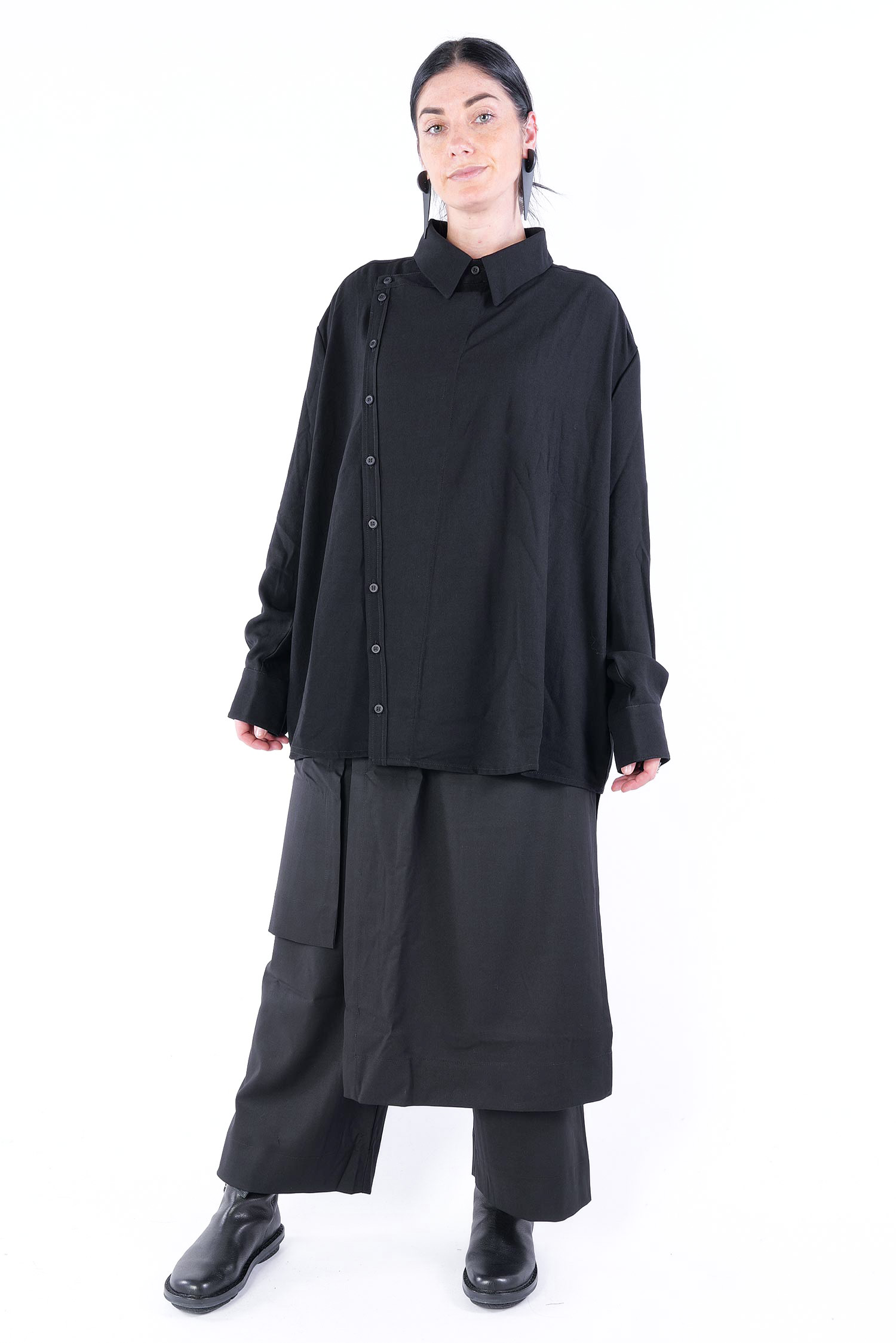 Oversize blouse with asymmetrical button tape by La Vaca Loca.