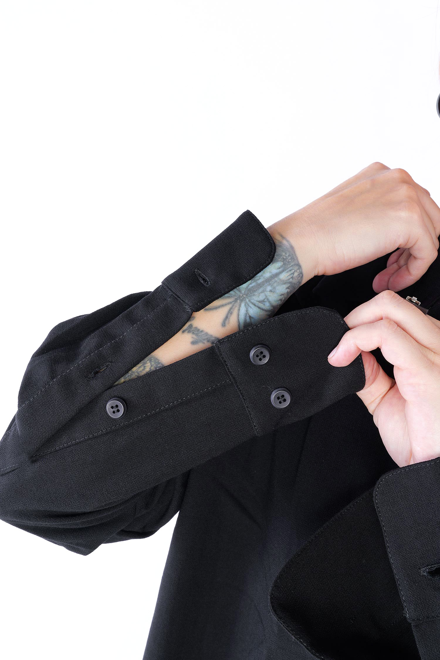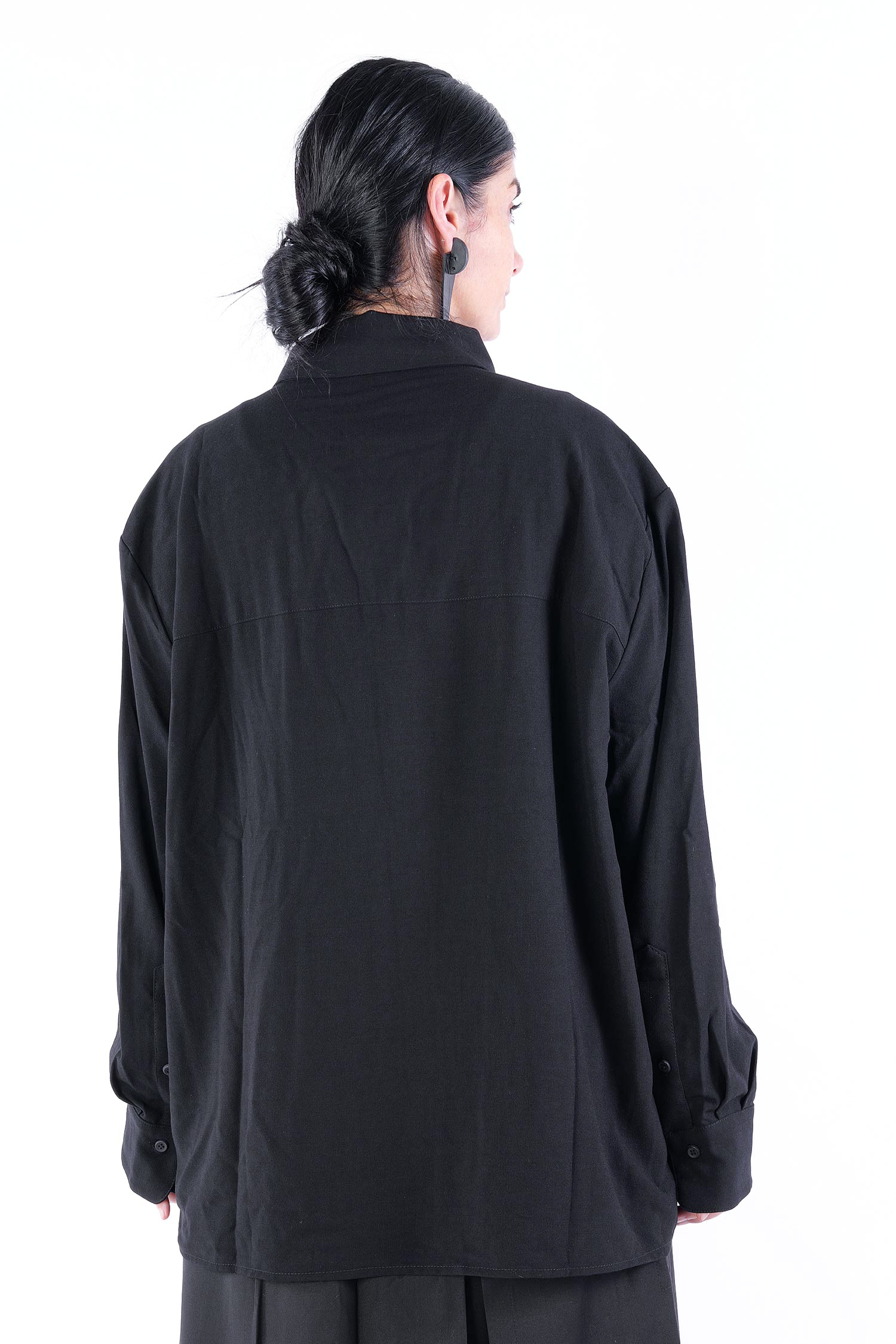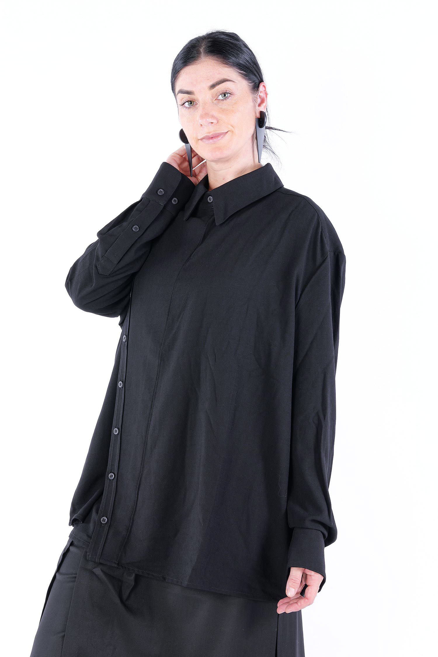 Oversize blouse with asymmetrical button tape by La Vaca Loca.