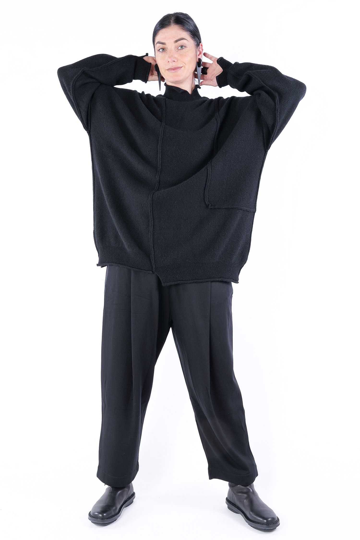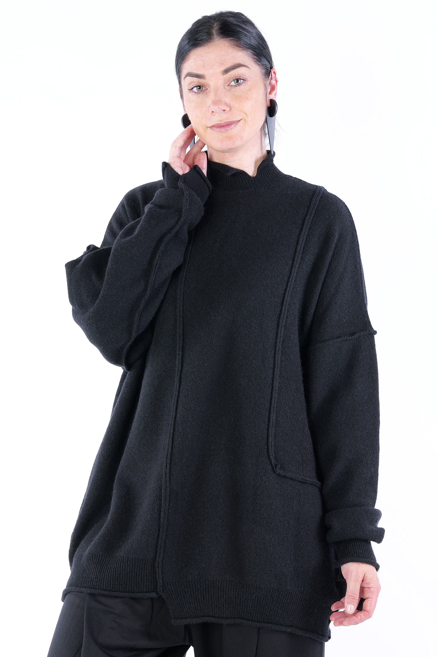 Oversize chunky knit pullover with standing collar by La Vaca Loca.
