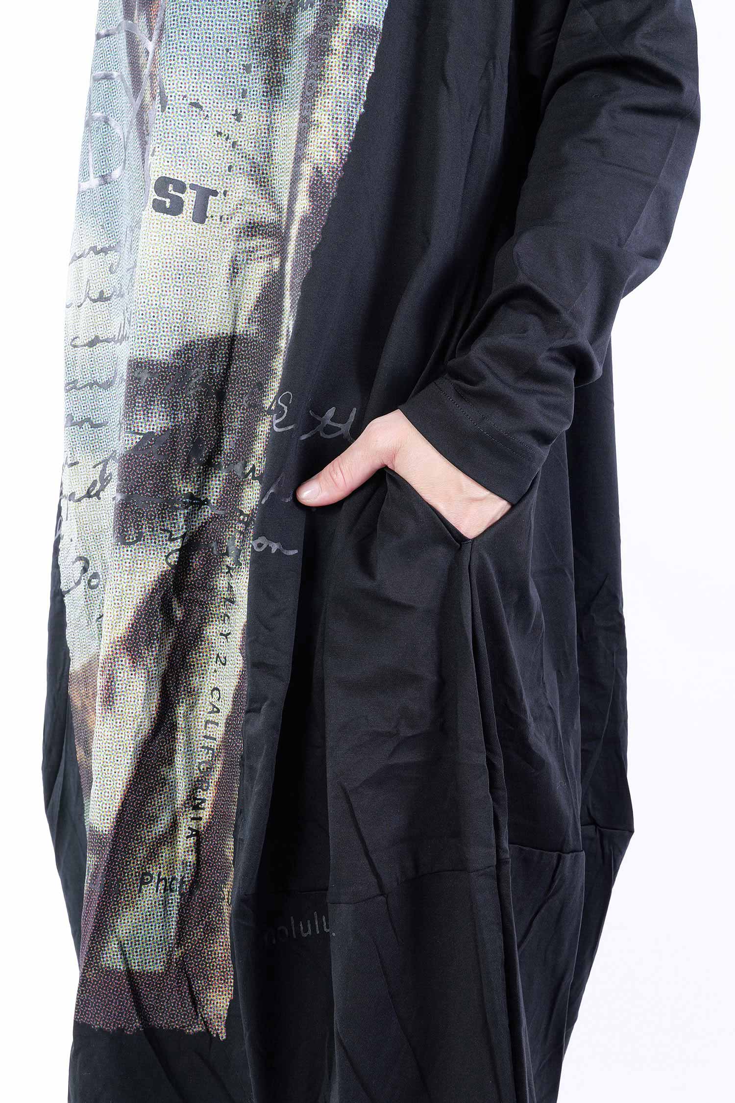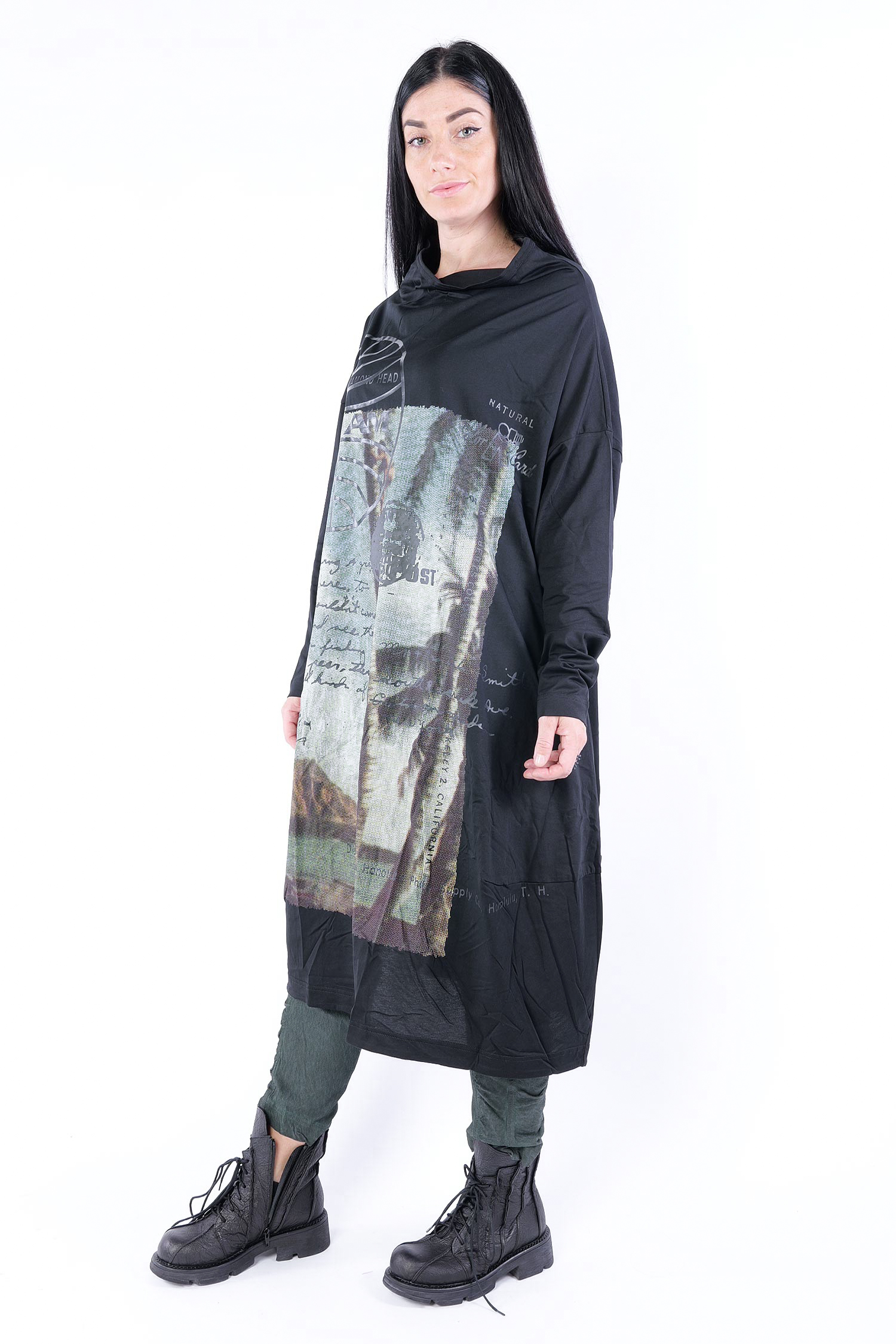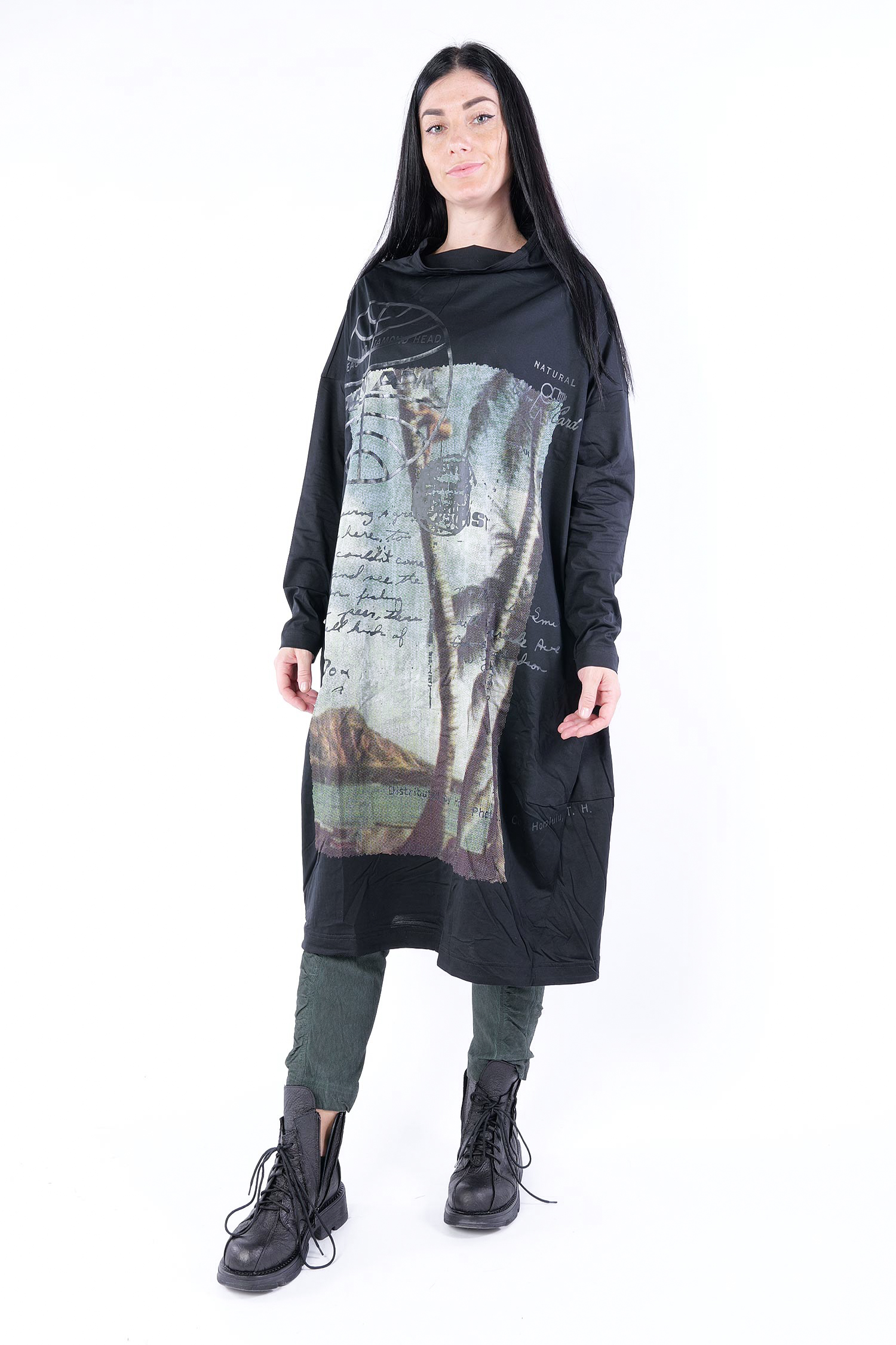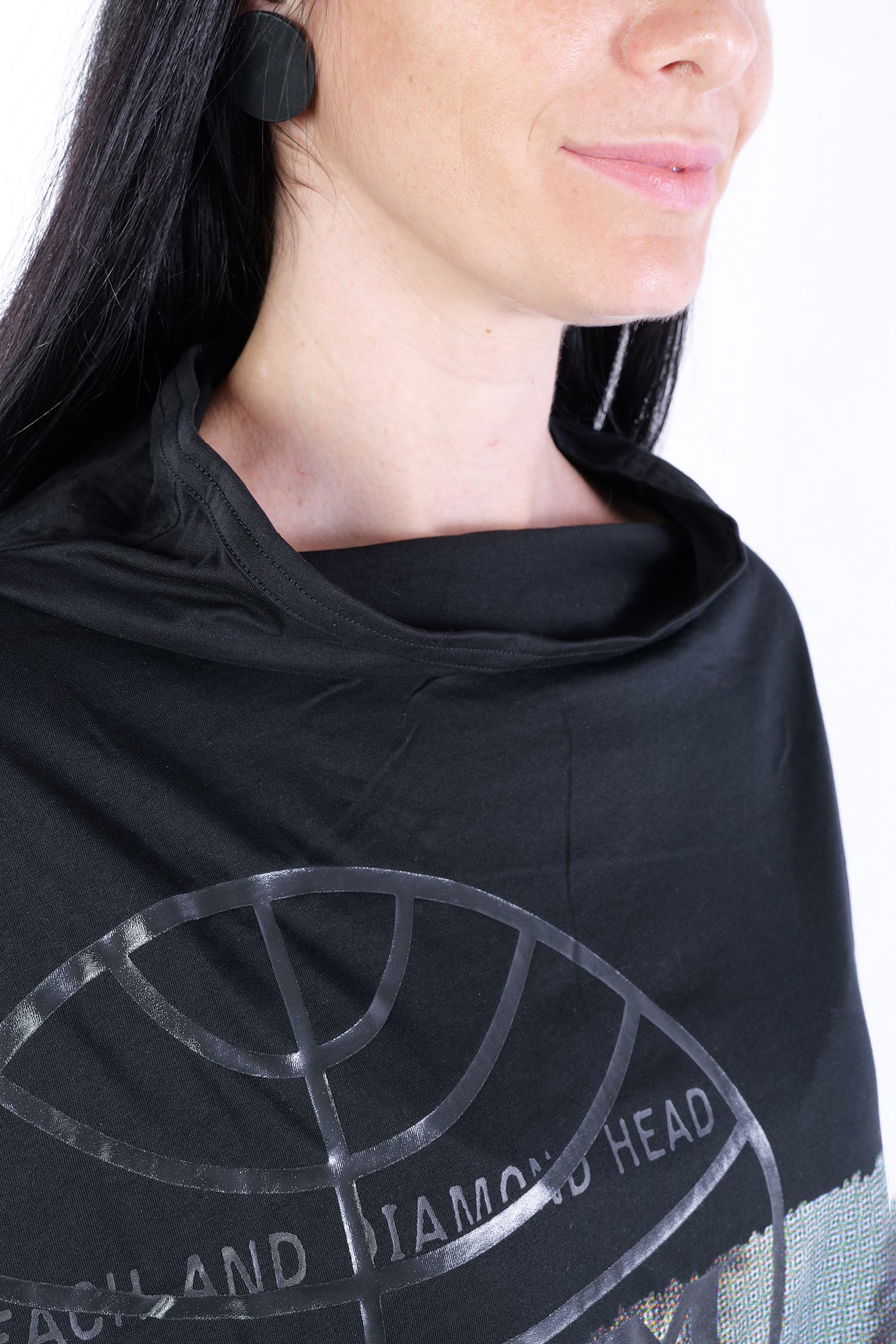 Details: - Print at the front and back - Loose boat collar - Extended shoulder - Trimmed edges - Tulip-shaped cut - Side pockets - T-shirt jersey - Normal sleeve width