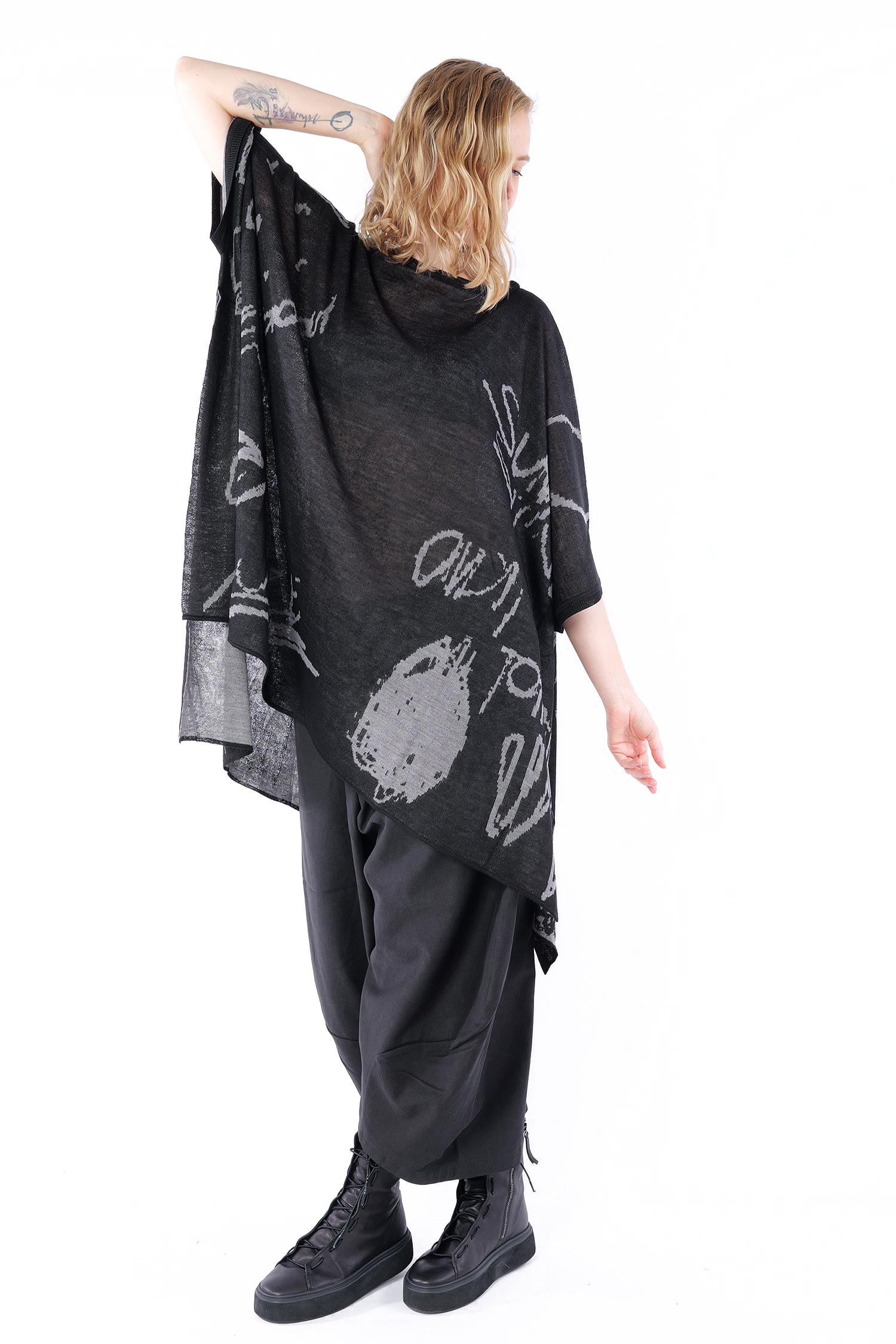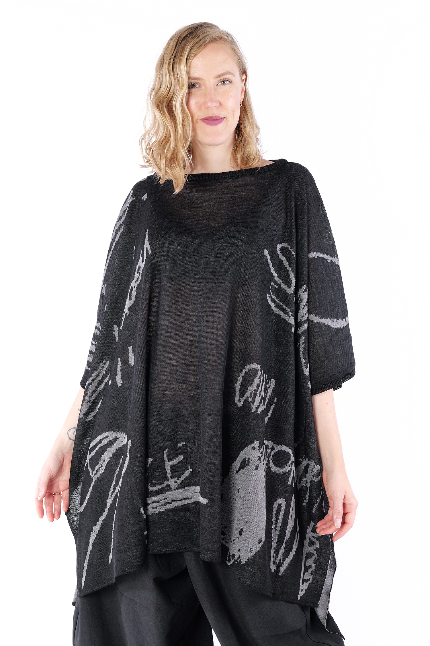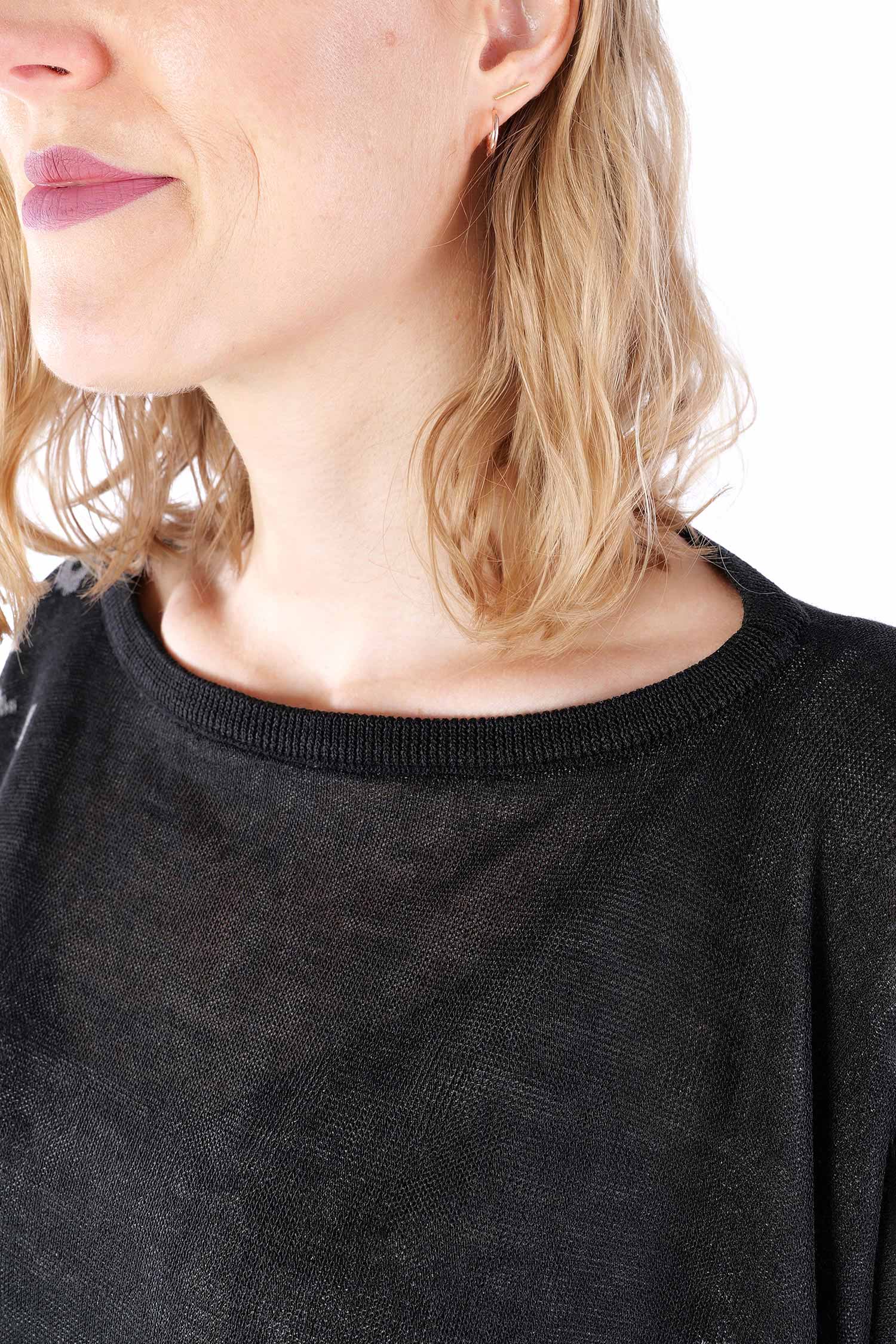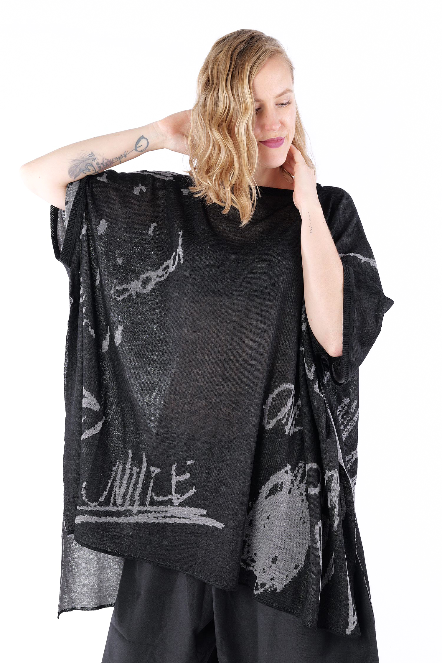 Details: - Loose and straight cut - Cut high at the side - Fine knit material - Minimally semi-transparent - Rib knit on sleeves and neckline - High round neck - Longer at the back - Print all over - Trimmed edges - Reversible (labels must be removed)