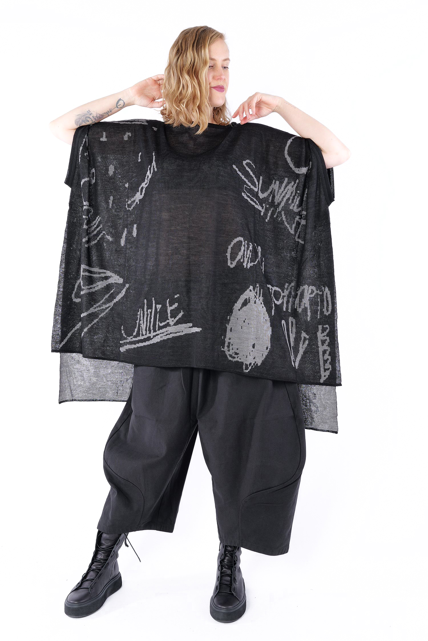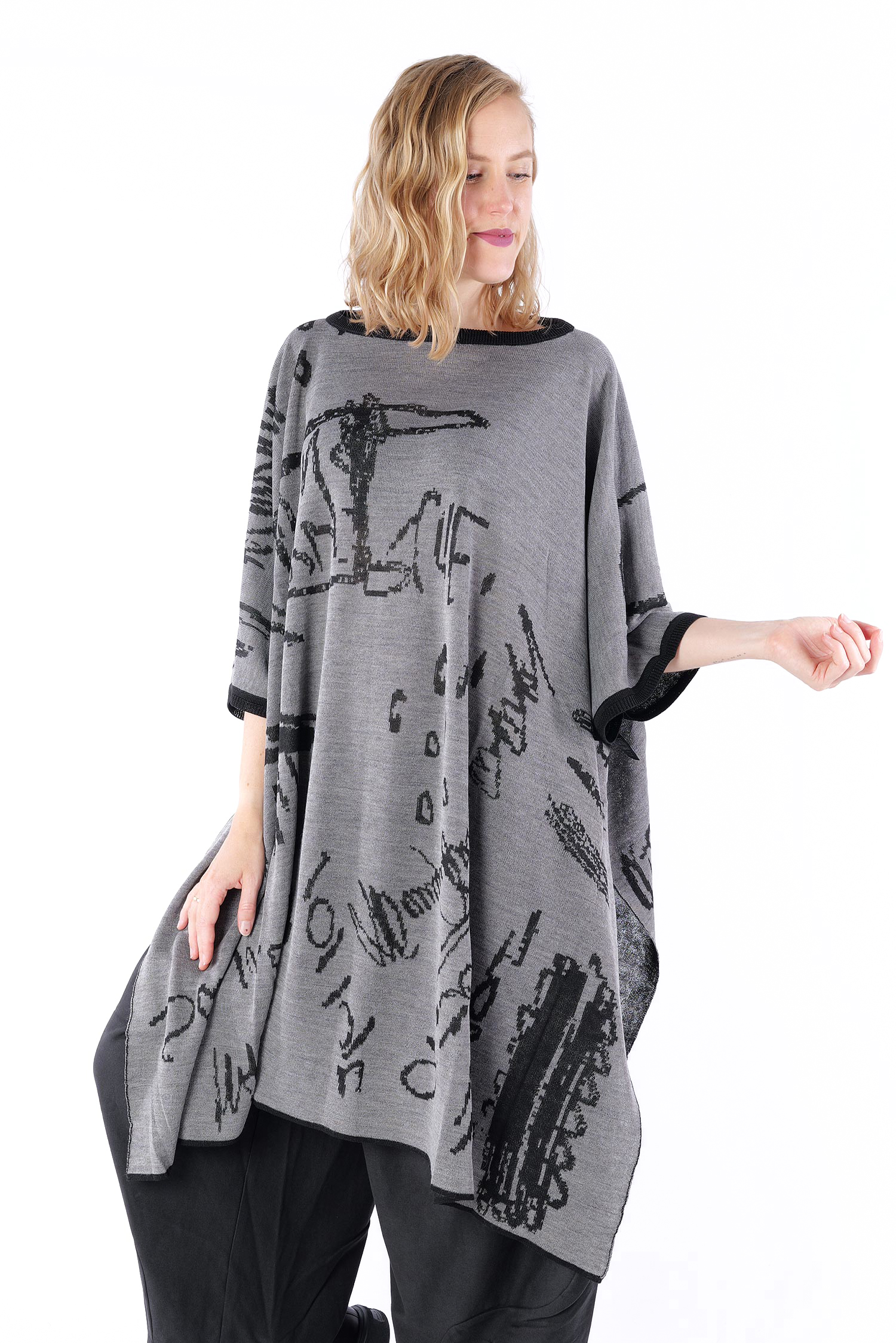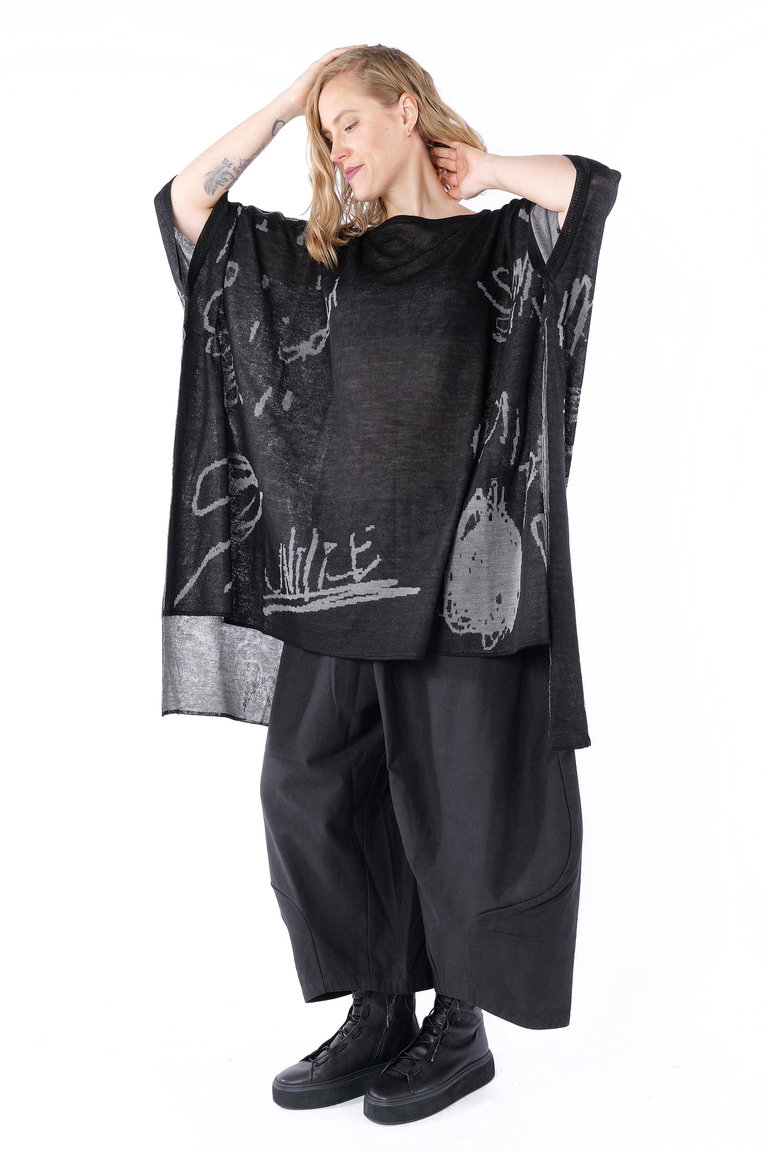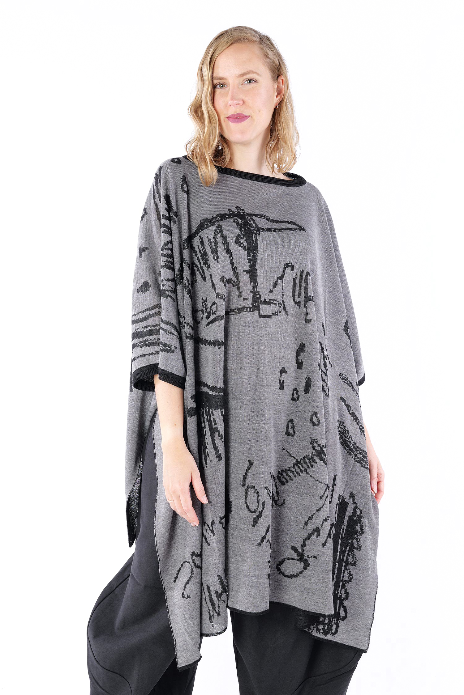 Details: - Loose and straight cut - Cut high at the side - Fine knit material - Minimally semi-transparent - Rib knit on sleeves and neckline - High round neck - Longer at the back - Print all over - Trimmed edges - Reversible (labels must be removed)