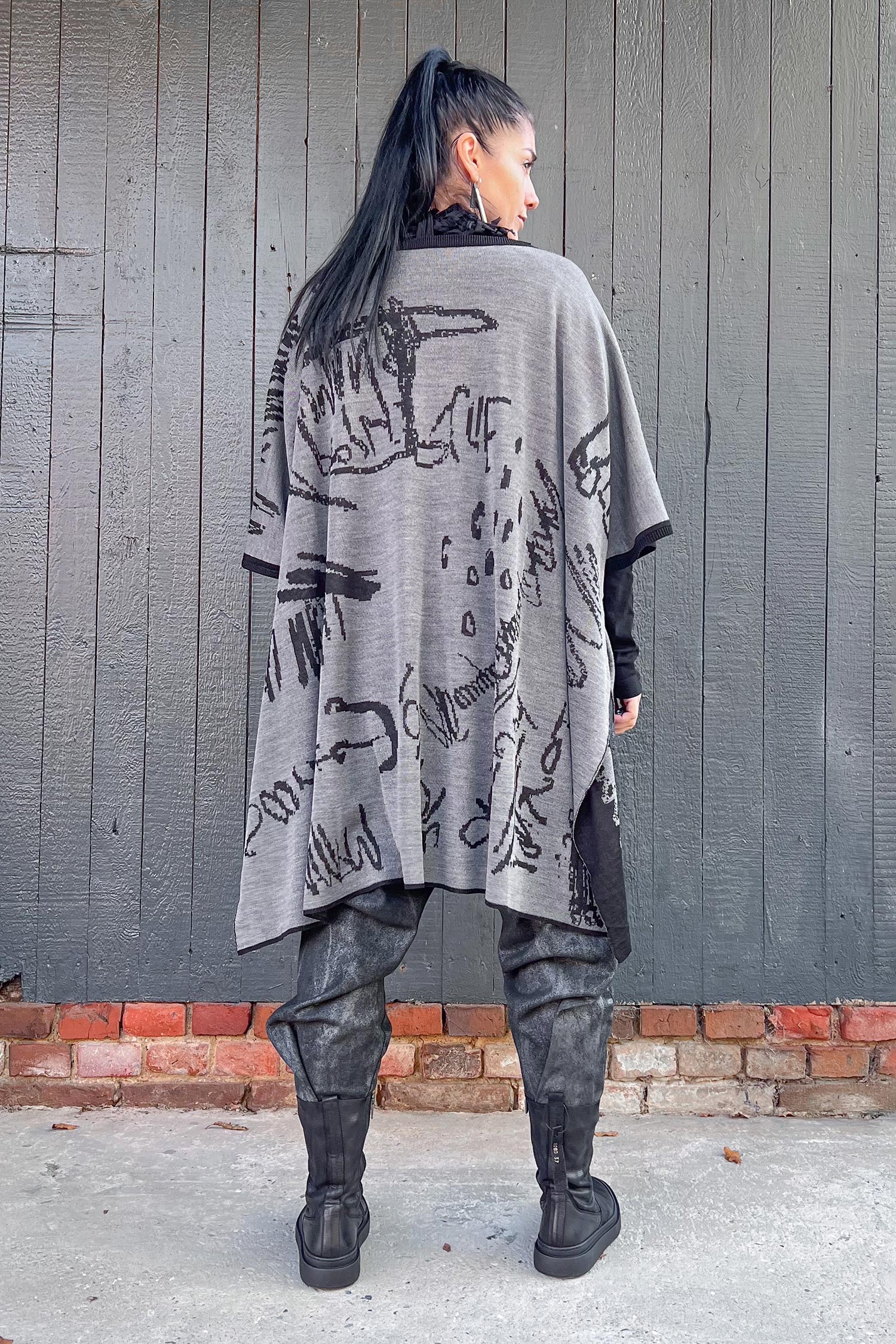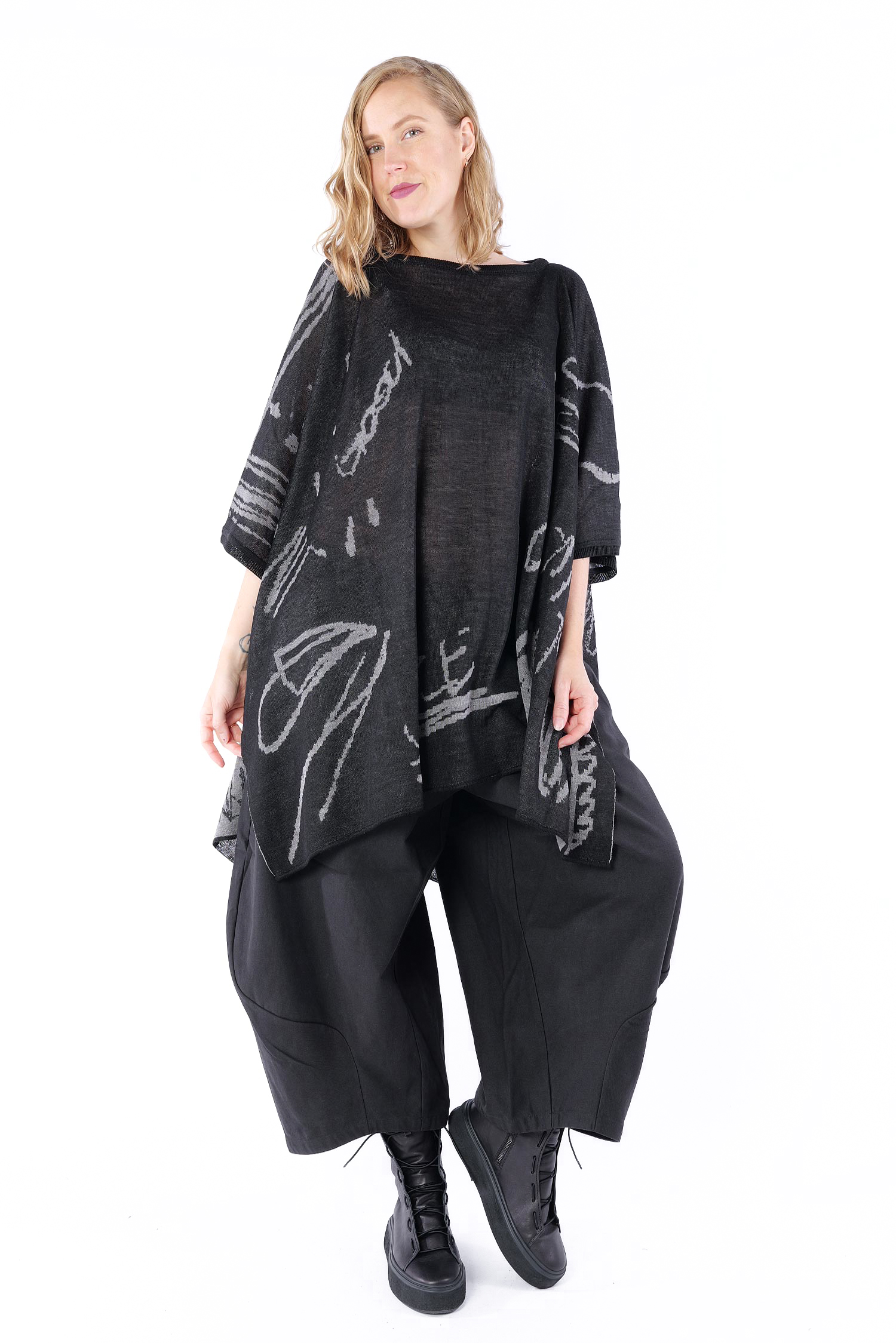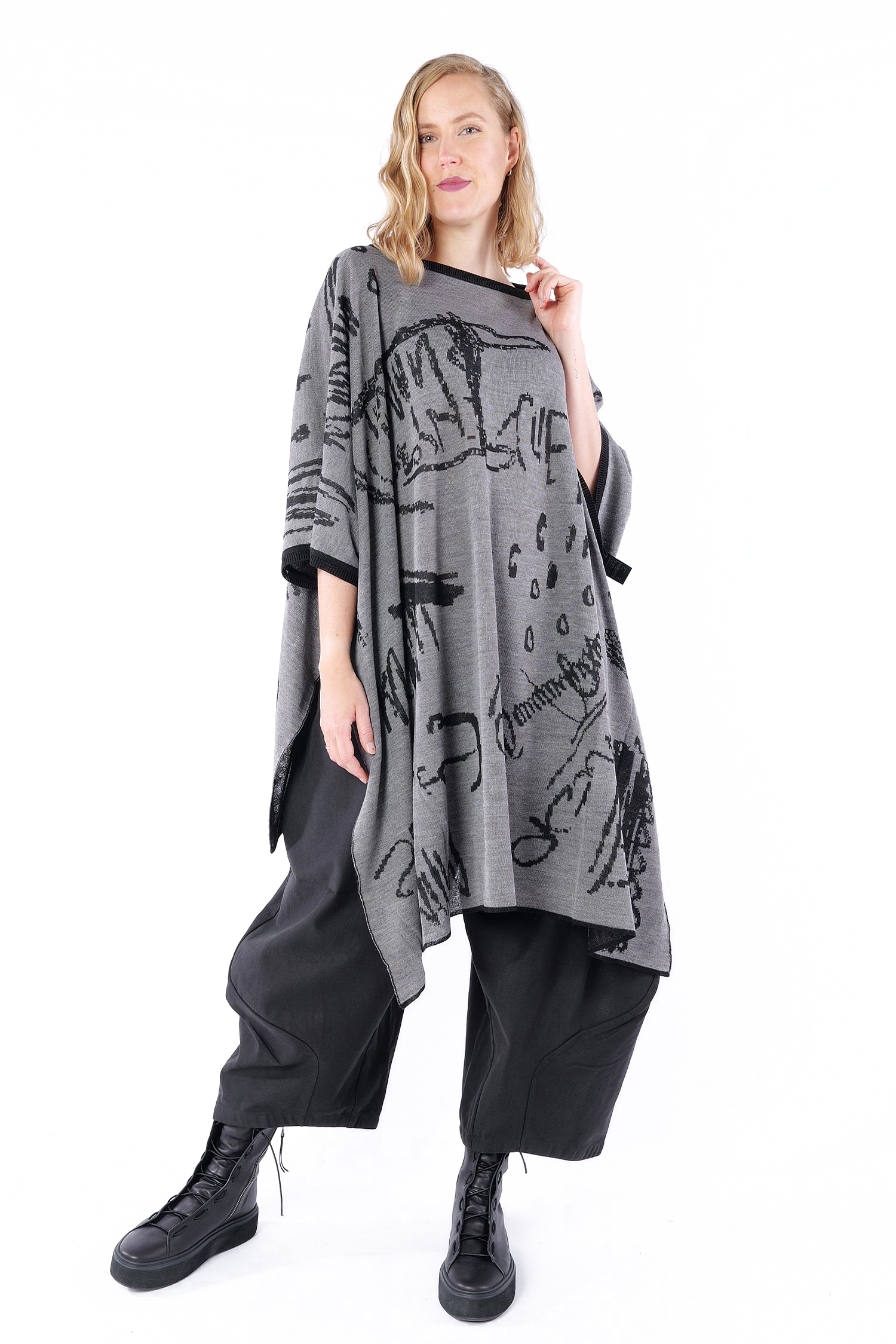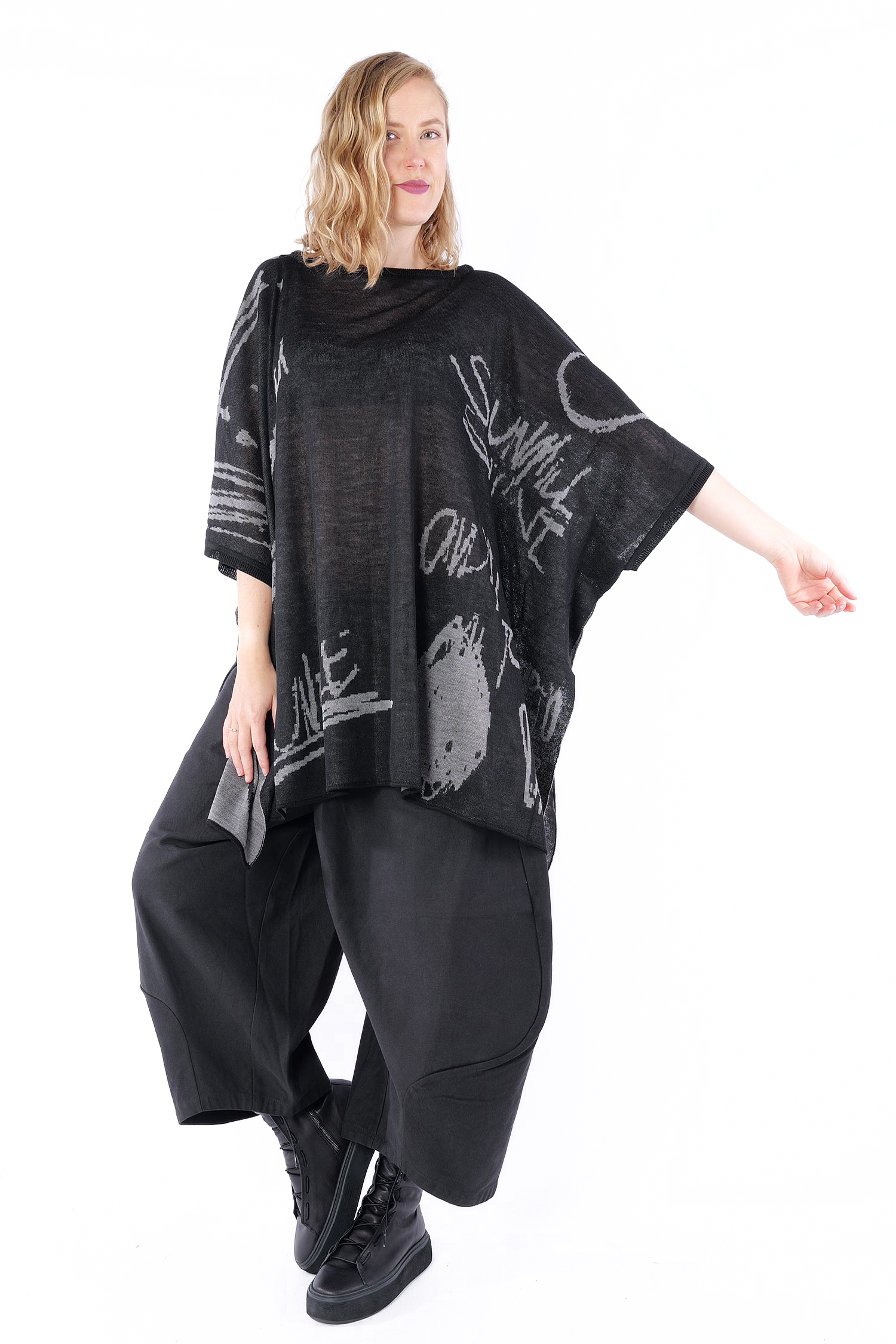 Details: - Loose and straight cut - Cut high at the side - Fine knit material - Minimally semi-transparent - Rib knit on sleeves and neckline - High round neck - Longer at the back - Print all over - Trimmed edges - Reversible (labels must be removed)