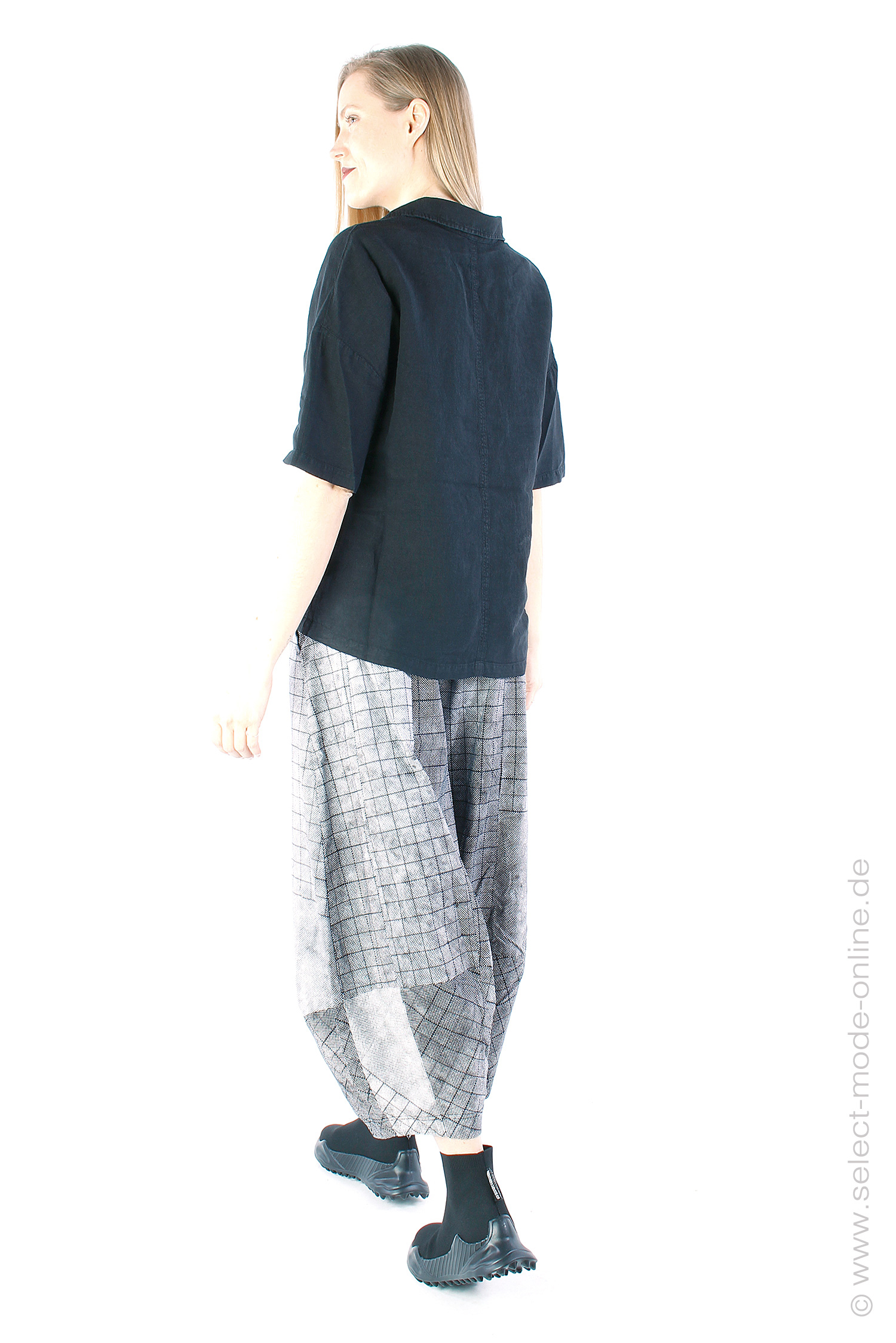 Oversize linen shirt with V-neck and collar by Elemente Clemente.