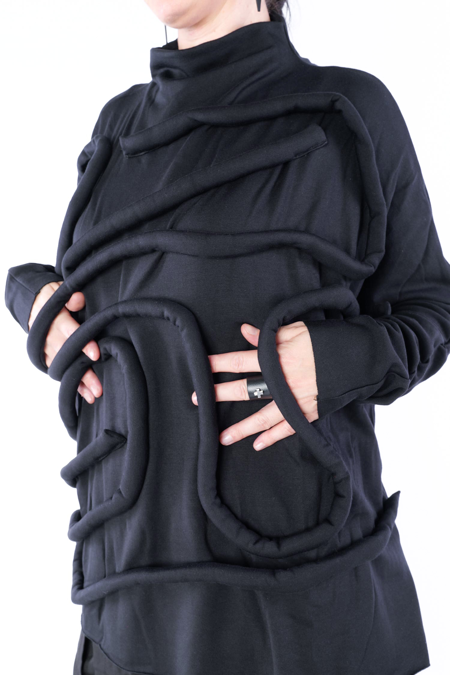 - Open edges on hem and sleeves