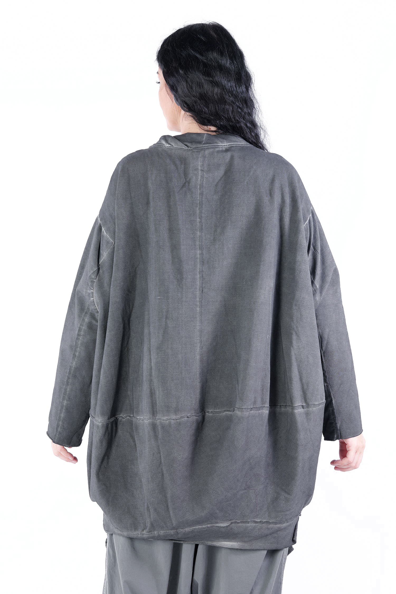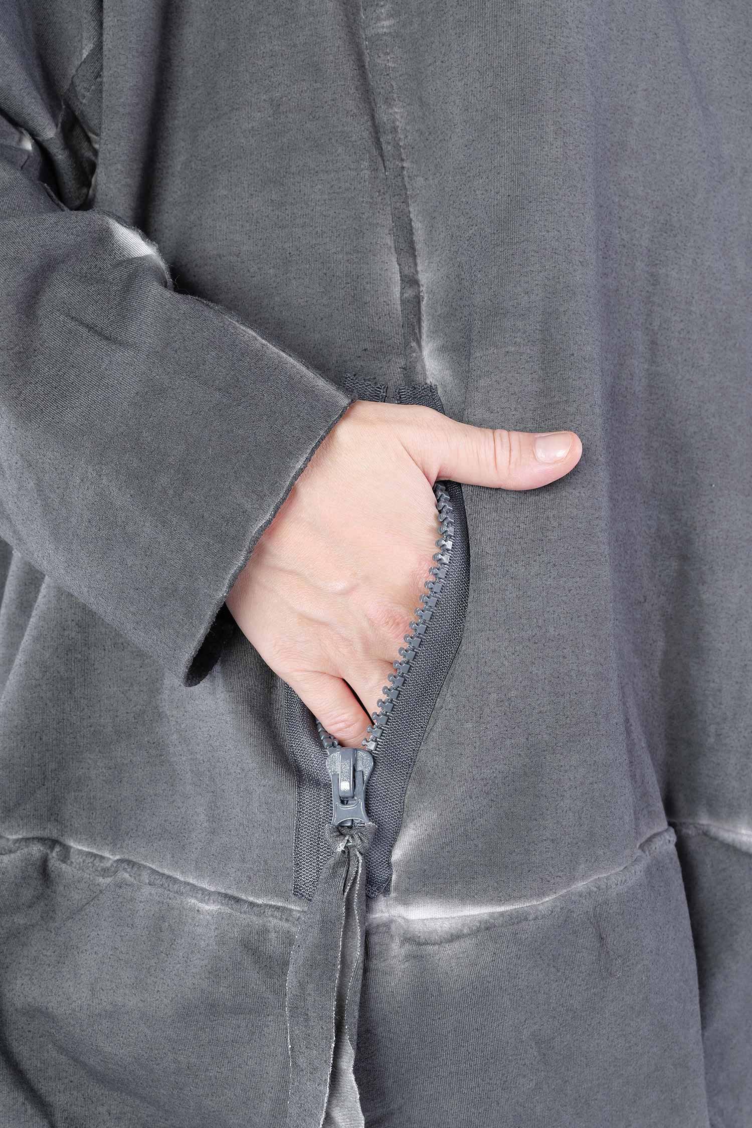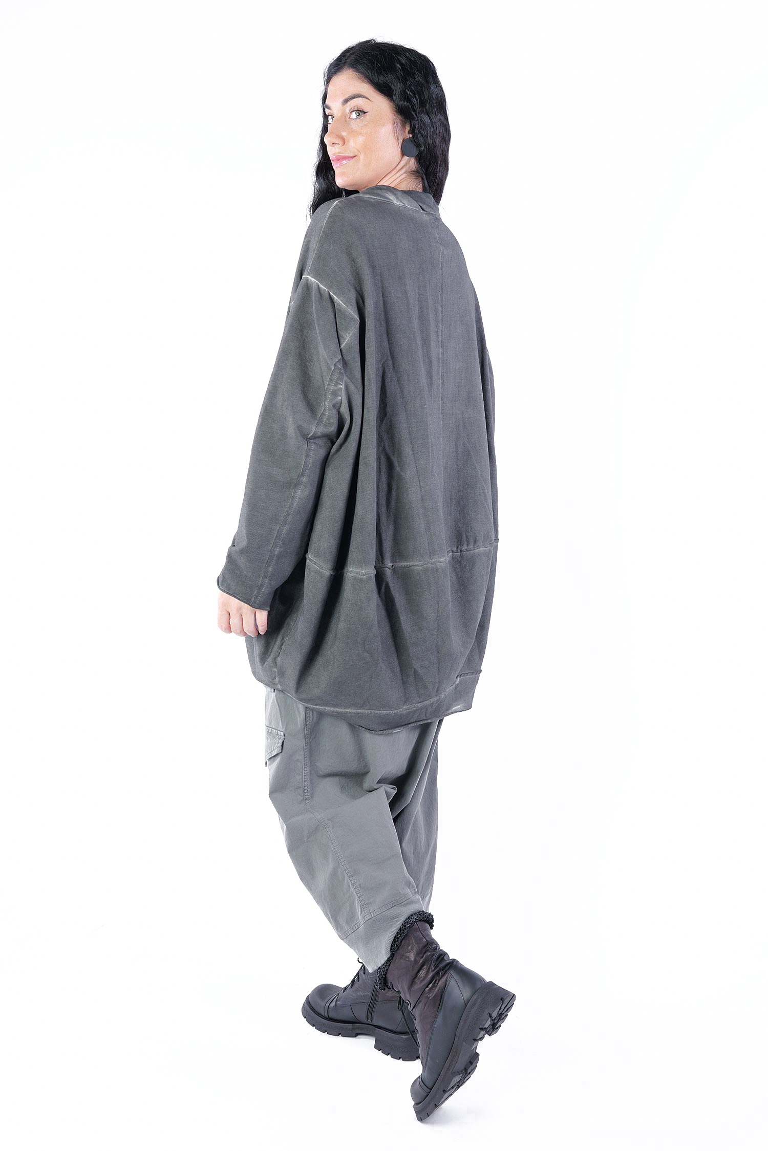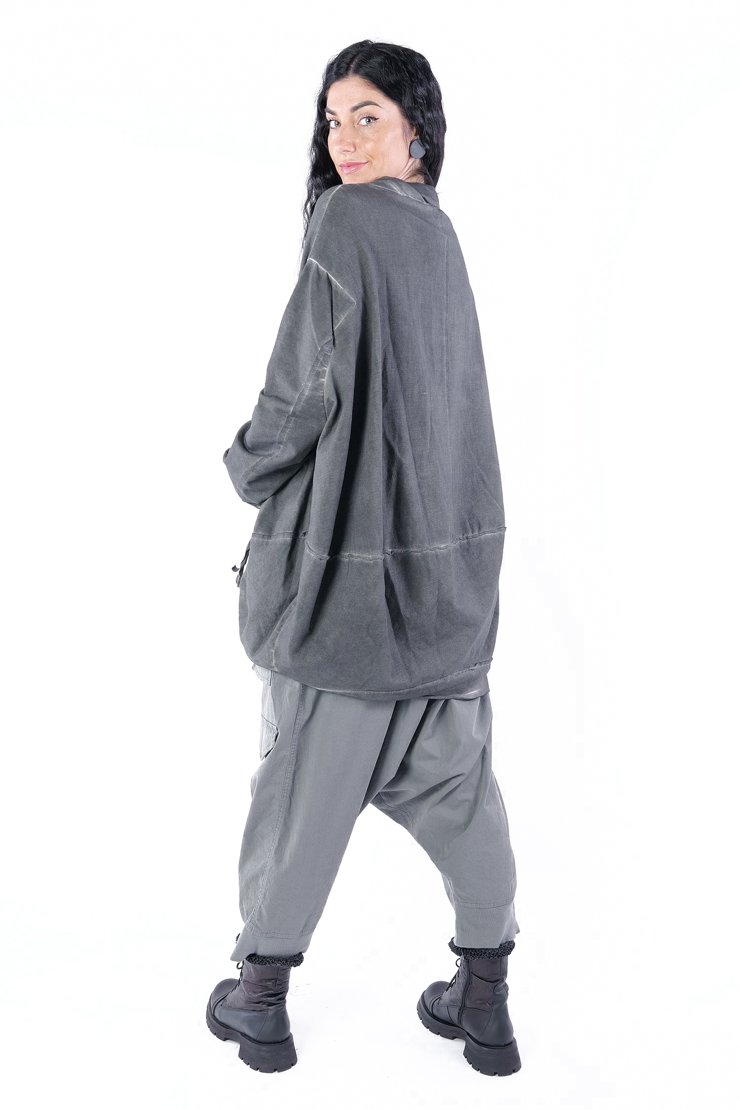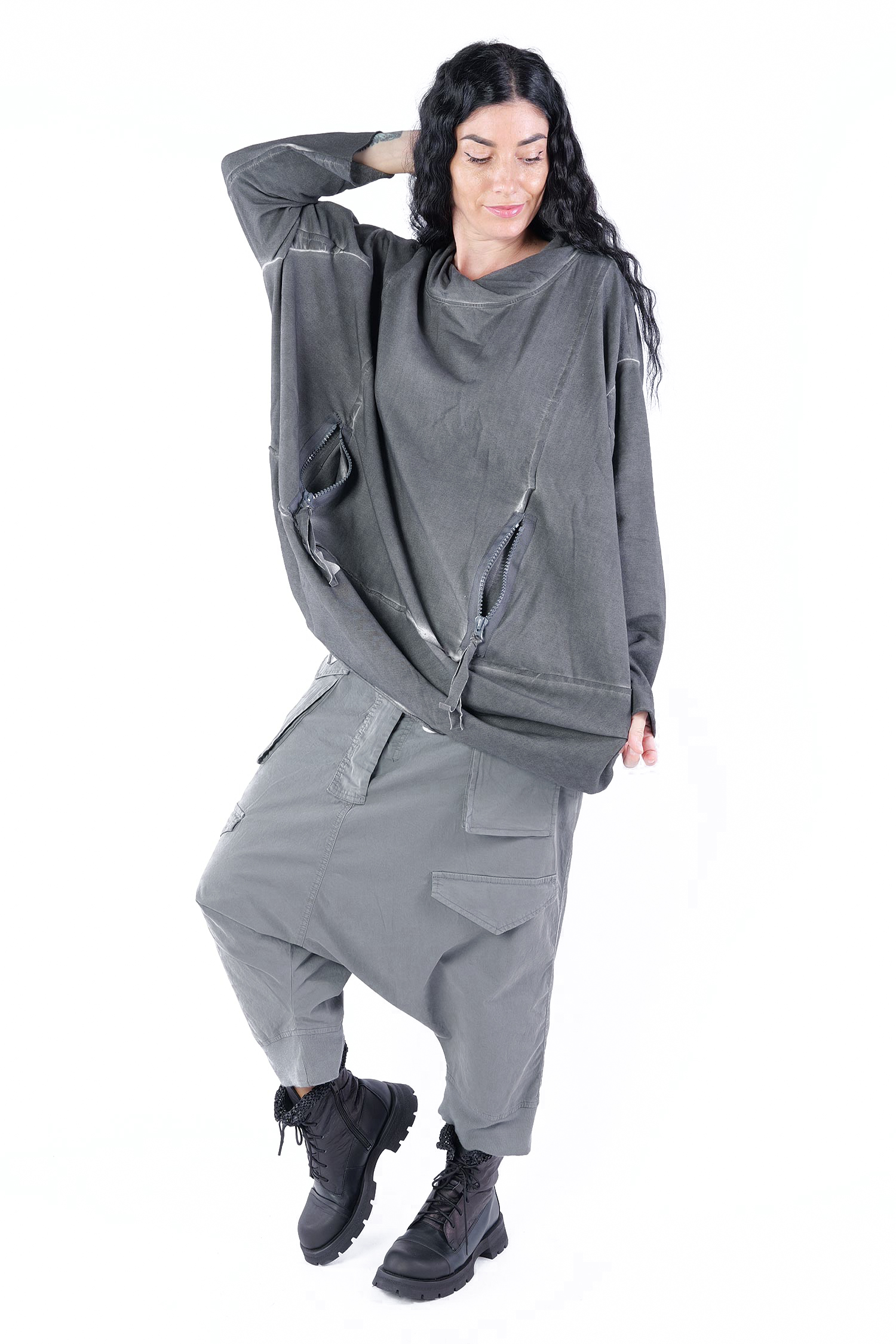 Details: - Zip pockets - Collar twisted in itself - Extended shoulder - O-shaped - Sweat material, cozy and napped inside - Oversize - Open edges