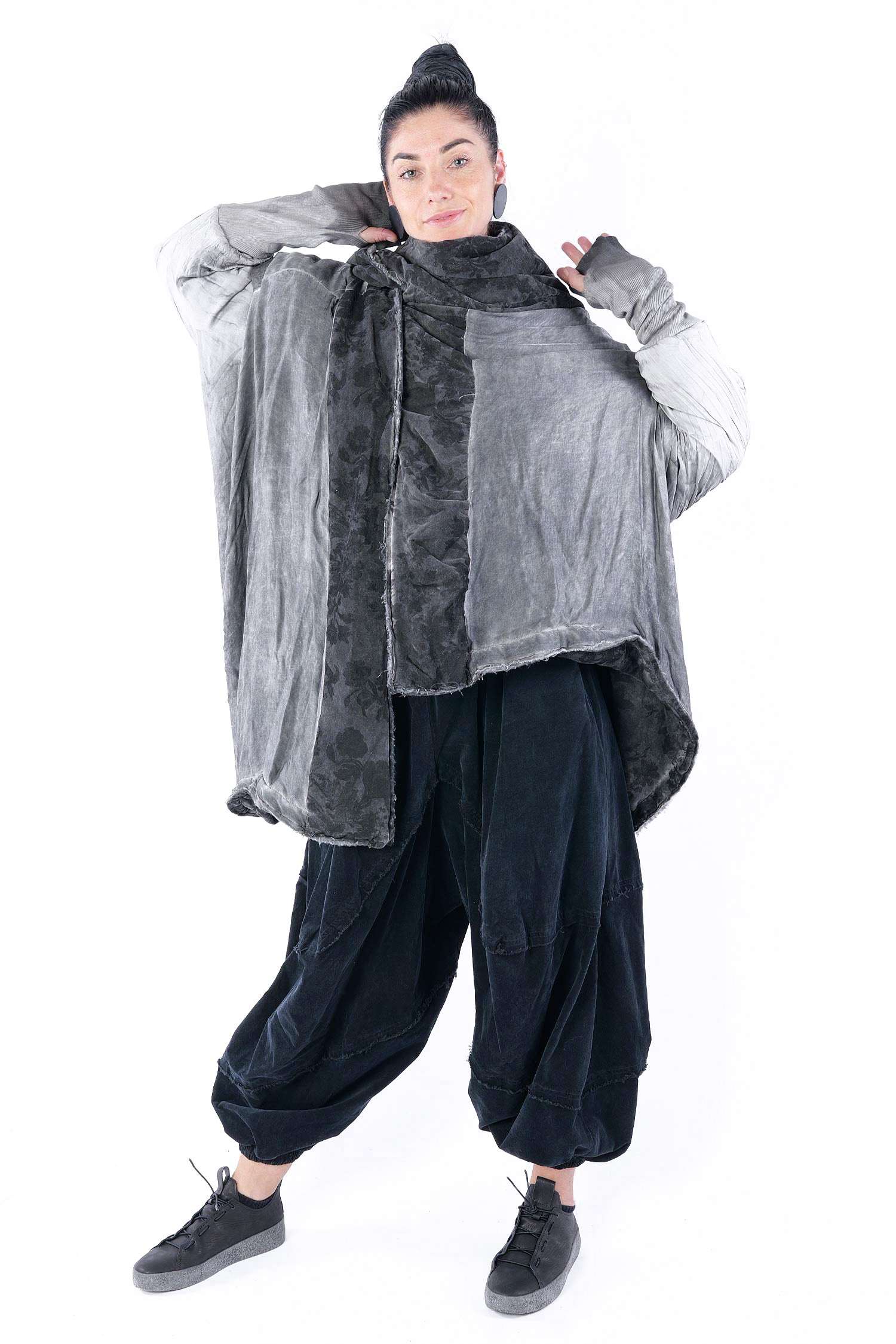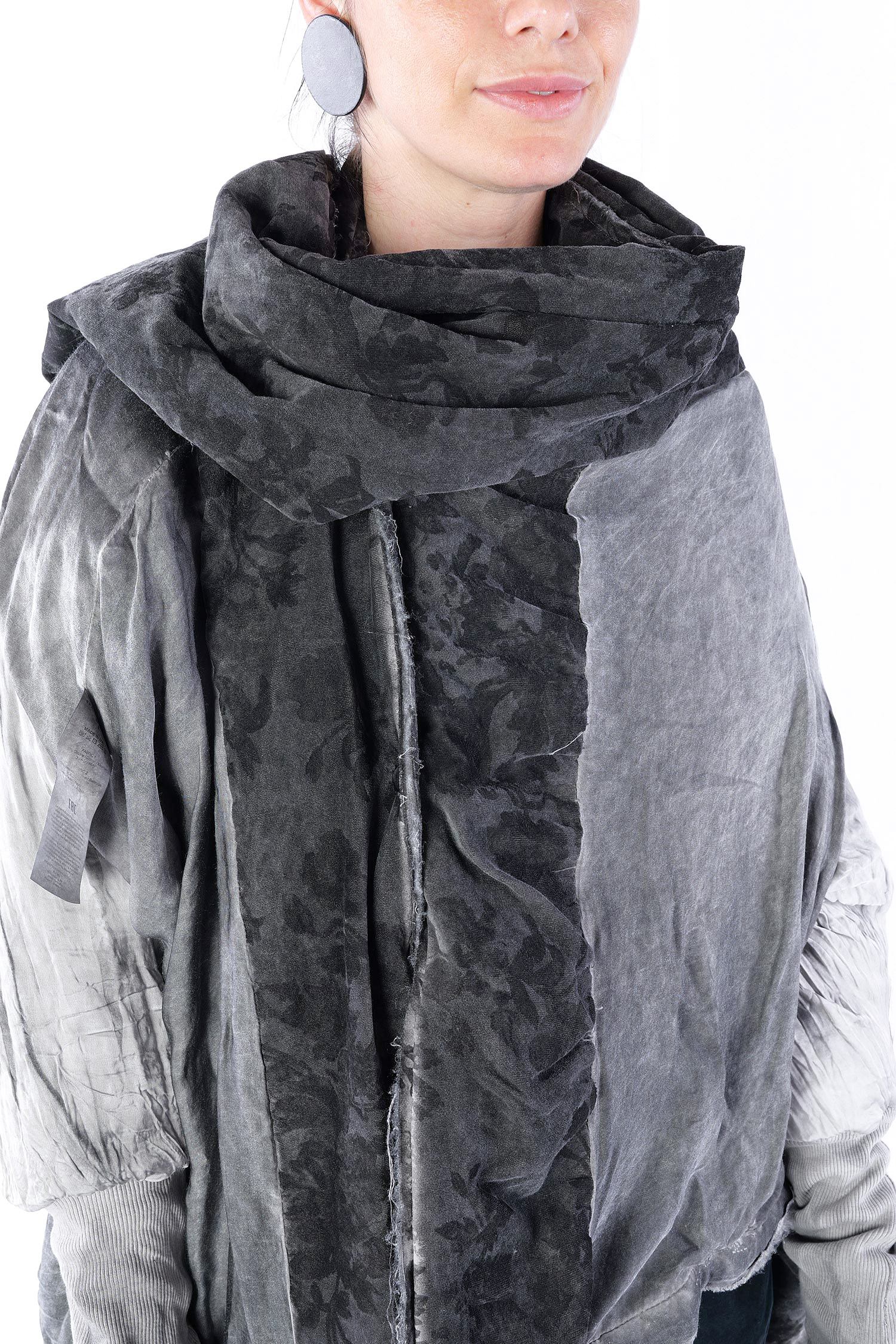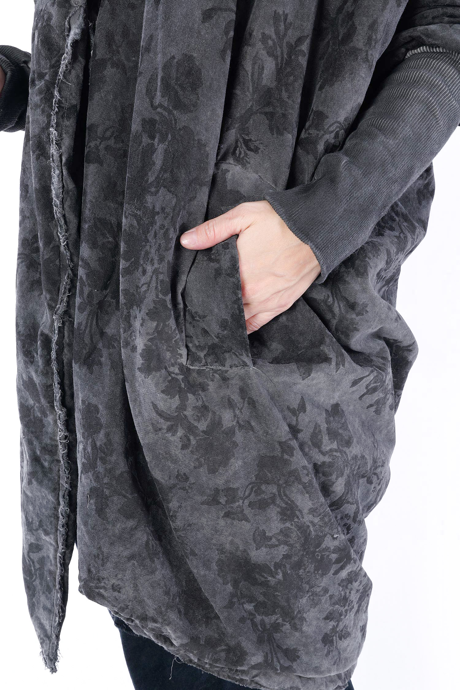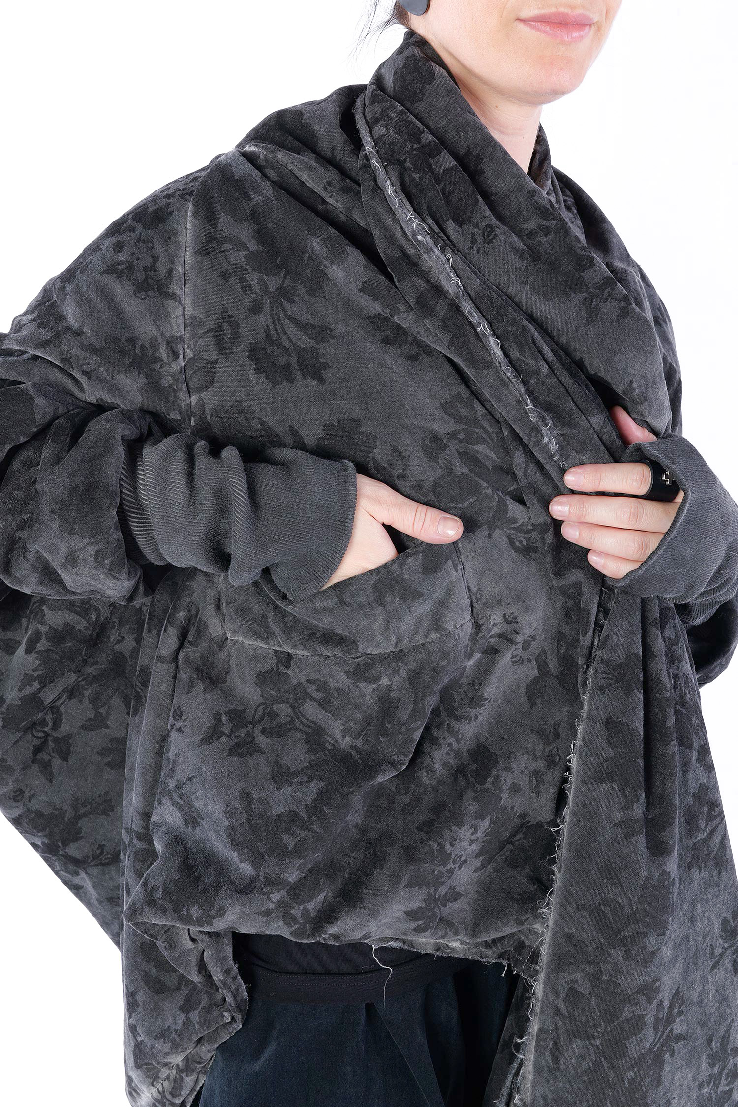 - Padded, velvet outside, grey batik viscose inside (reversible, labels must be removed)