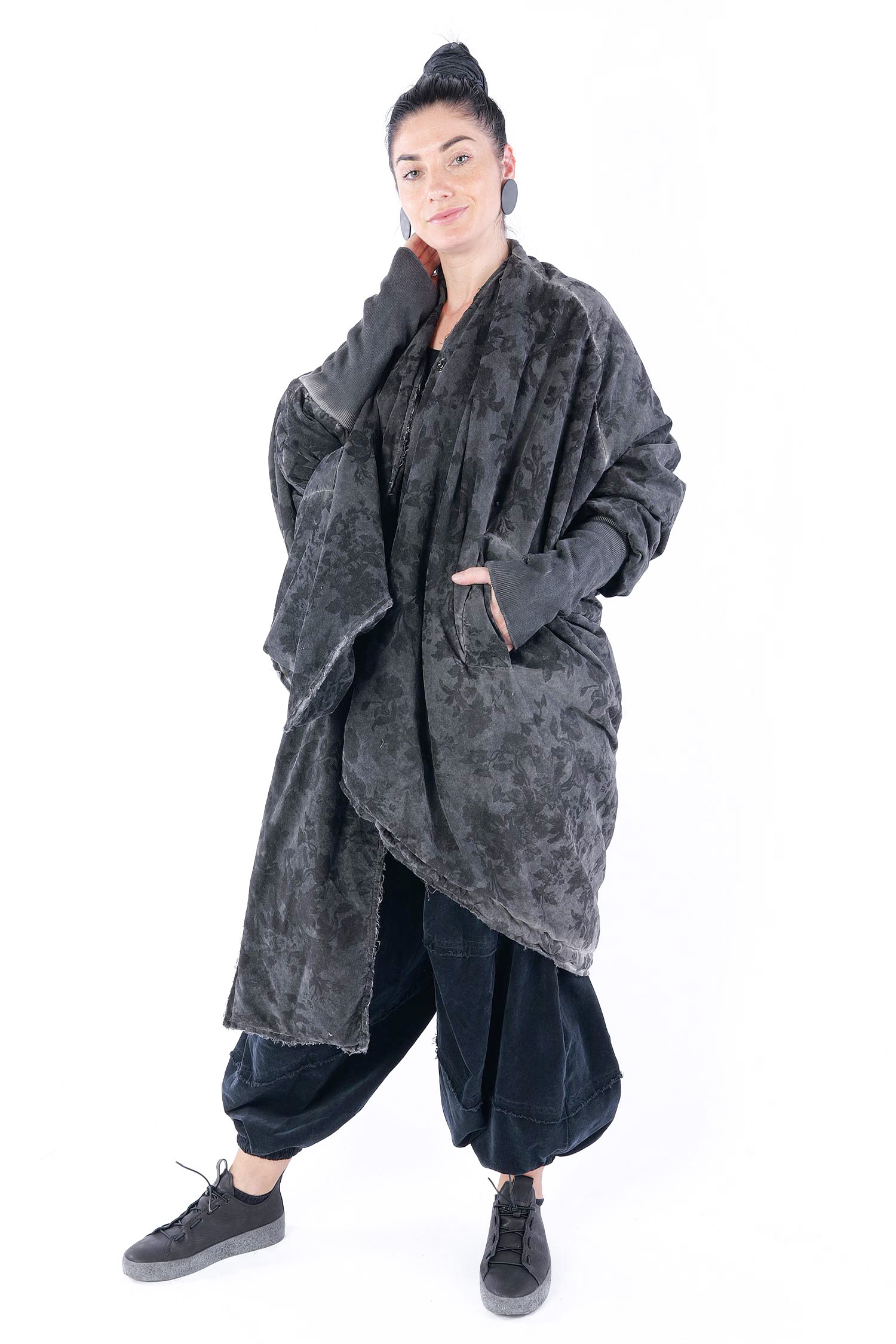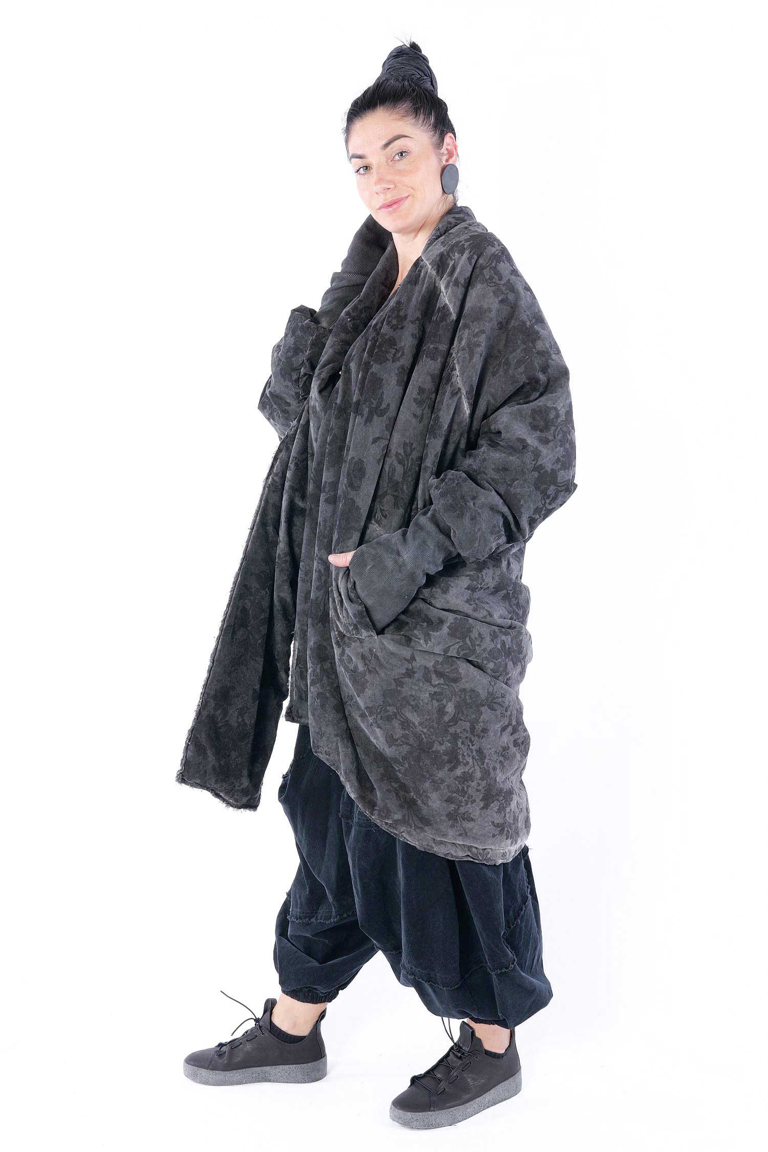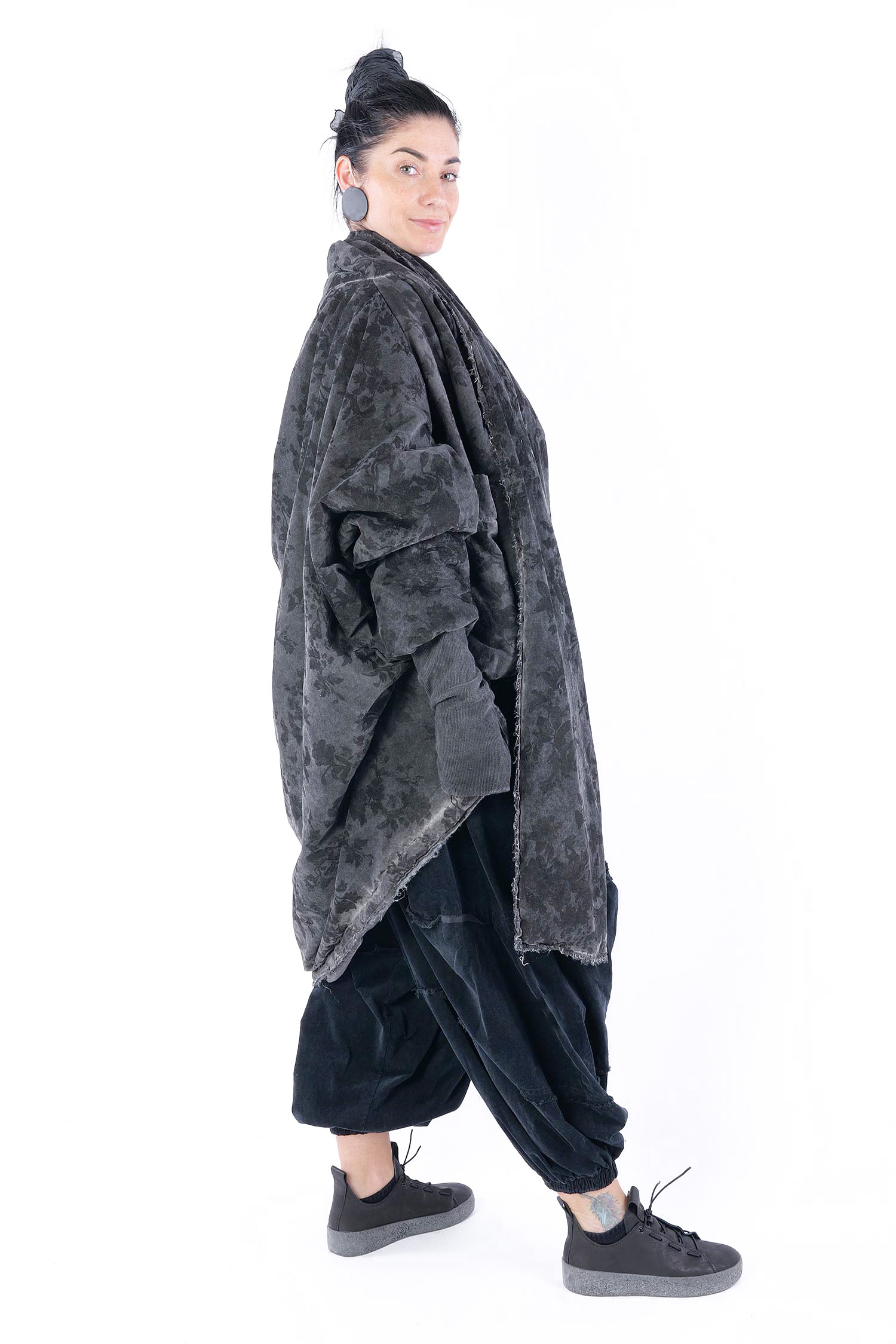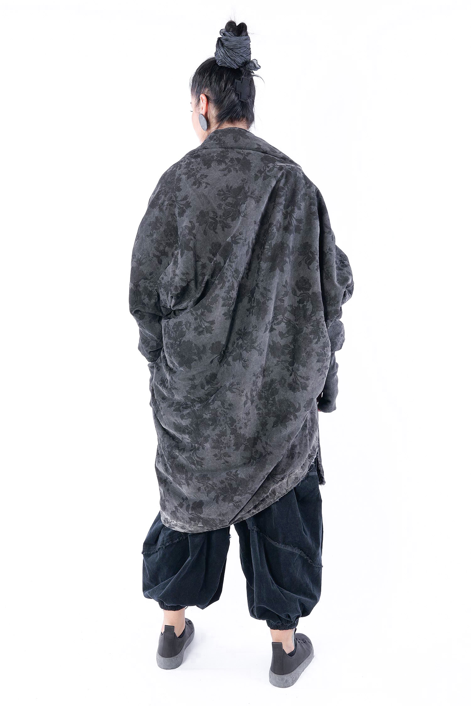 - Padded, velvet outside, grey batik viscose inside (reversible, labels must be removed)