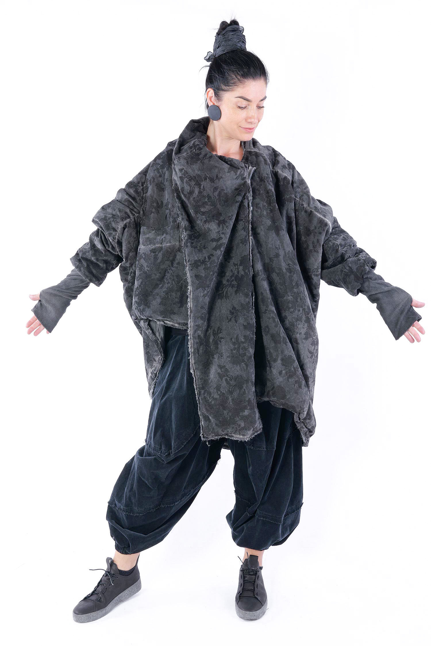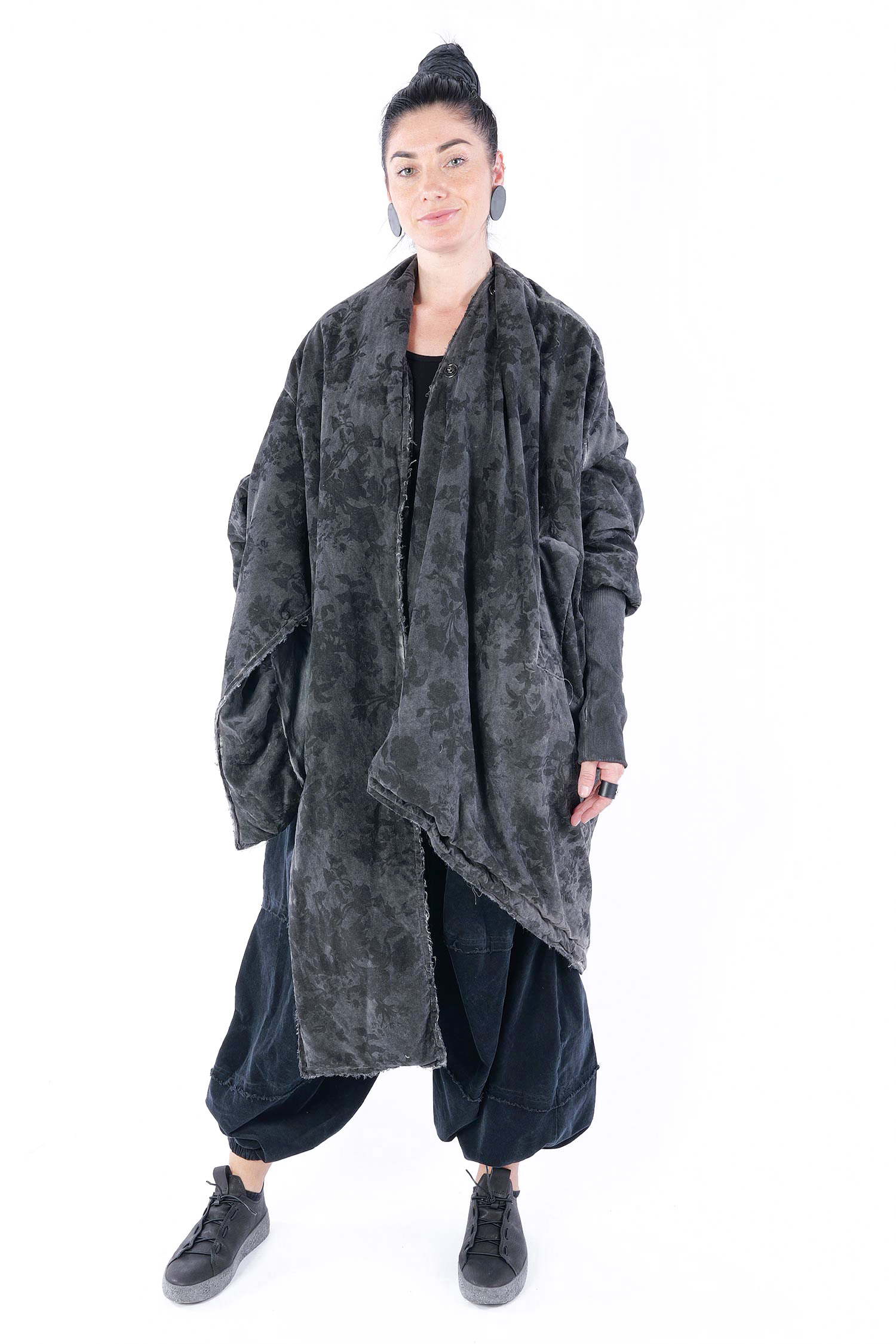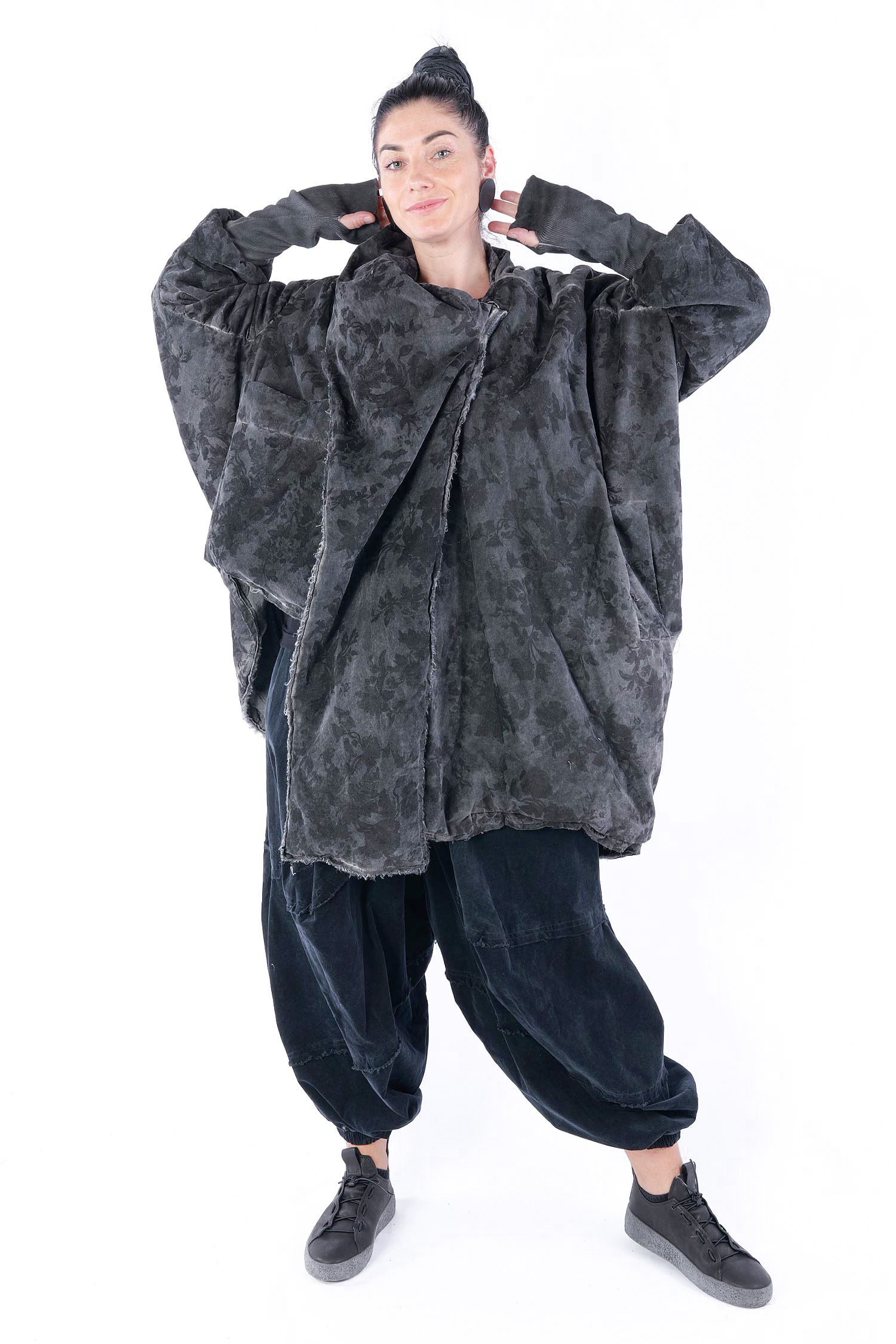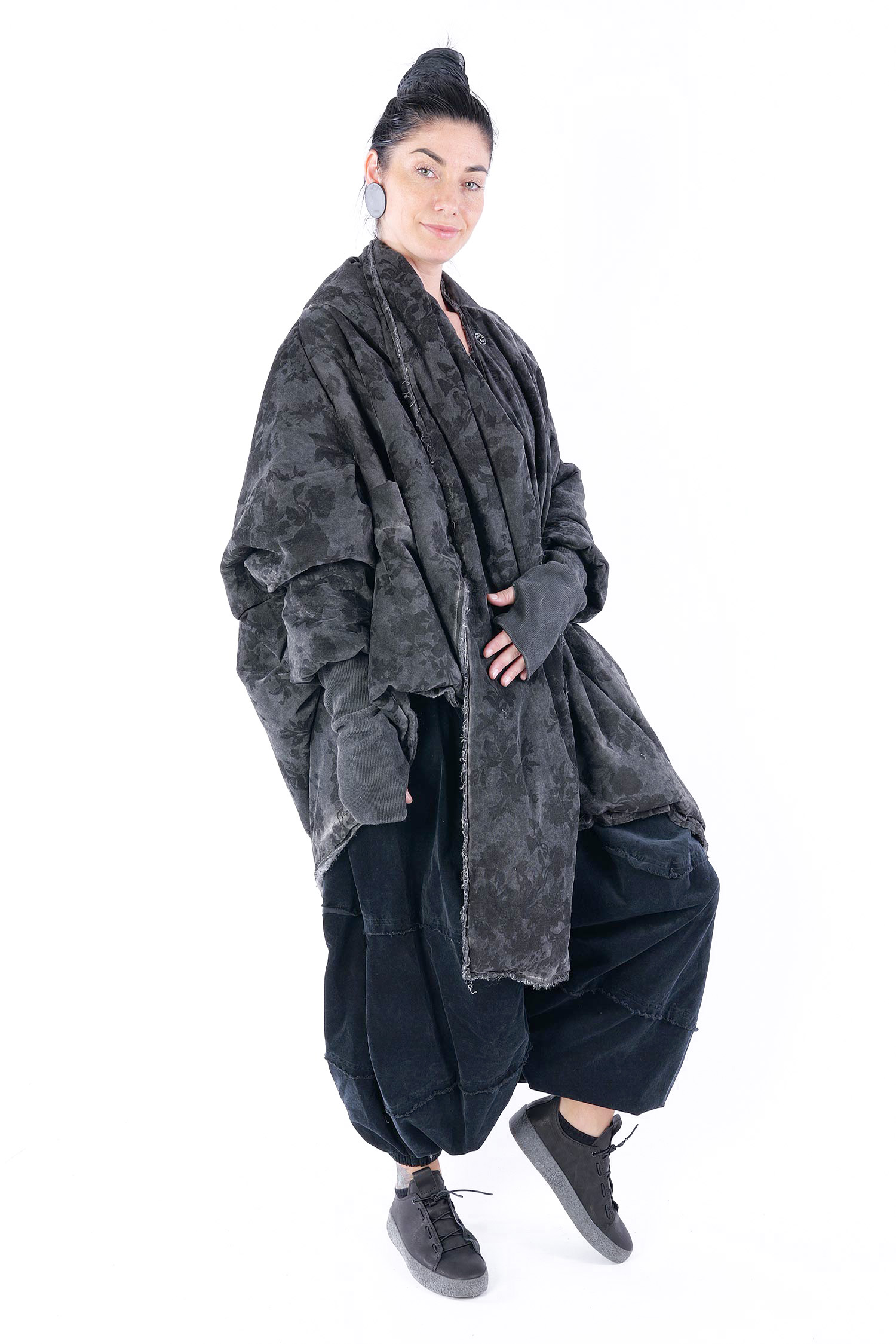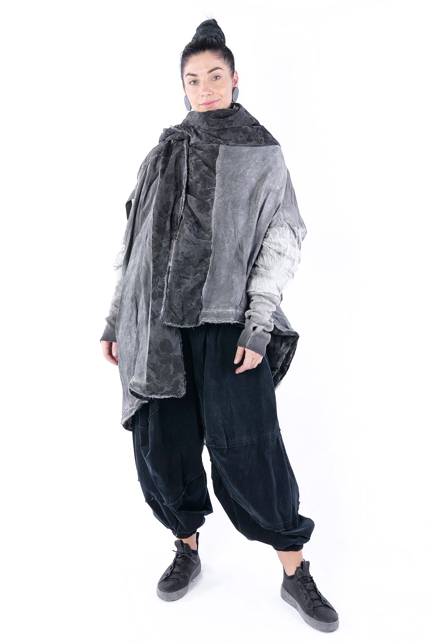 - Padded, velvet outside, grey batik viscose inside (reversible, labels must be removed)