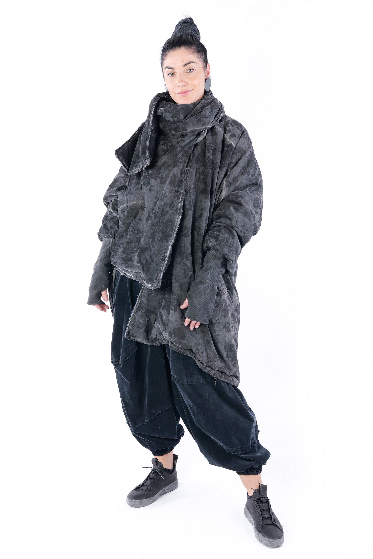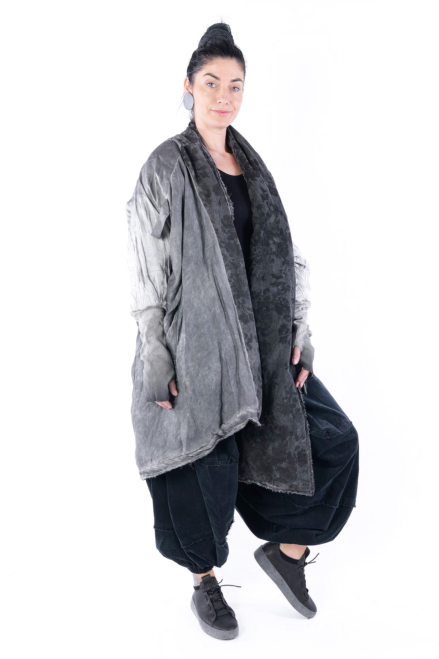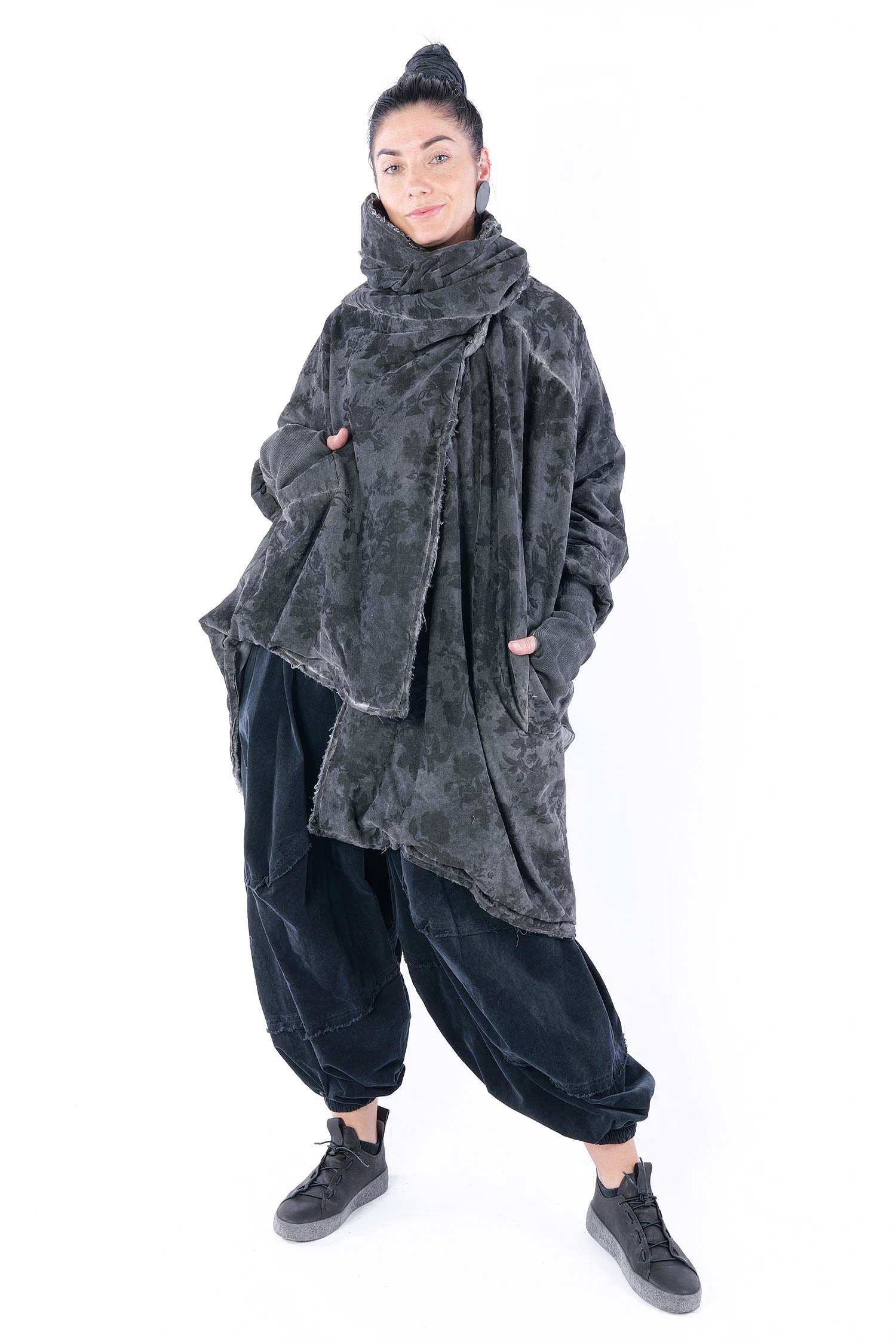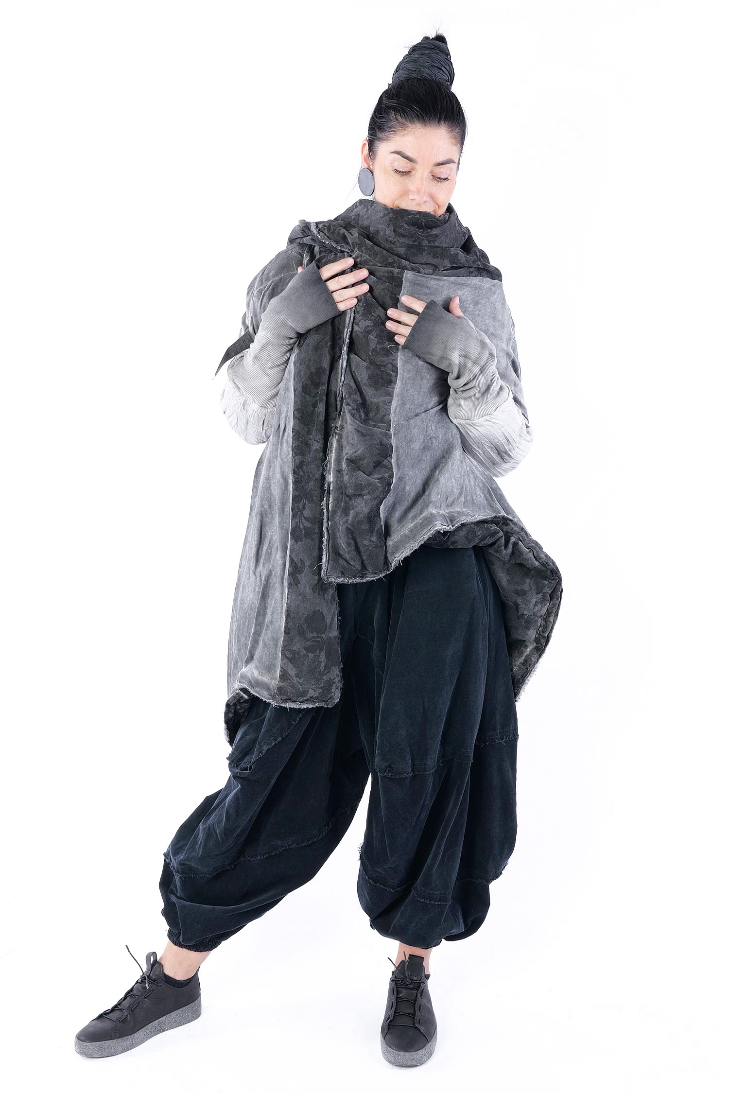 - Padded, velvet outside, grey batik viscose inside (reversible, labels must be removed)