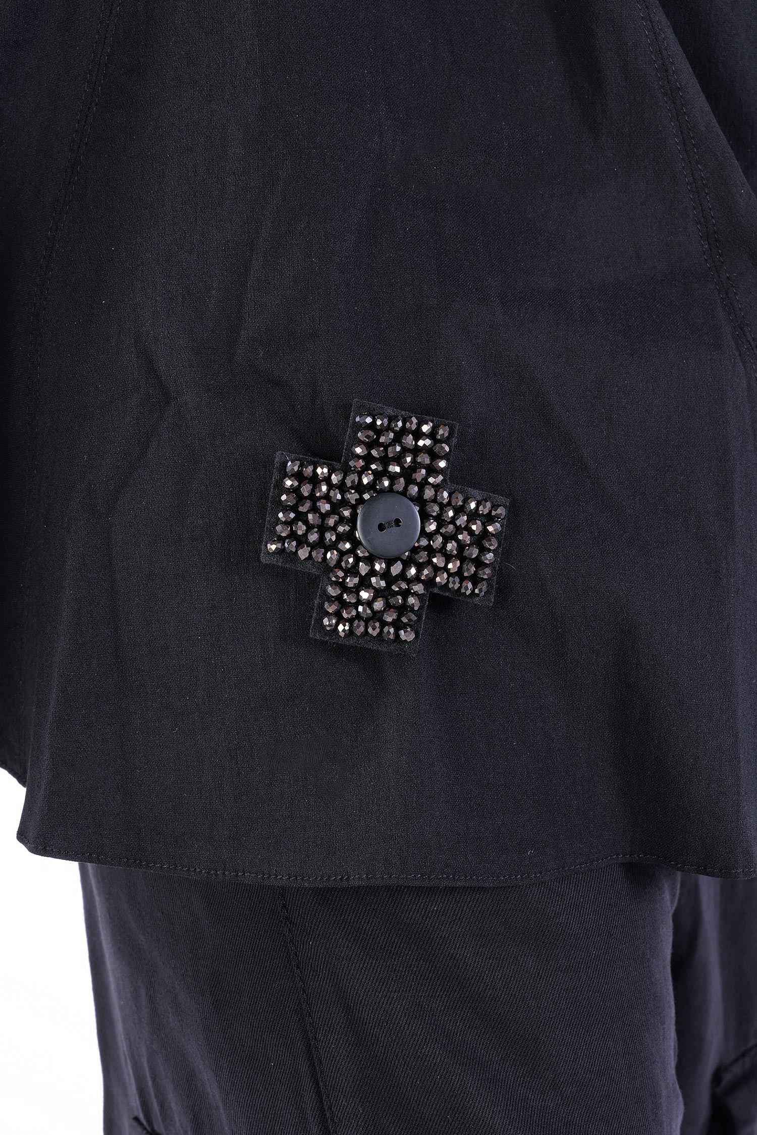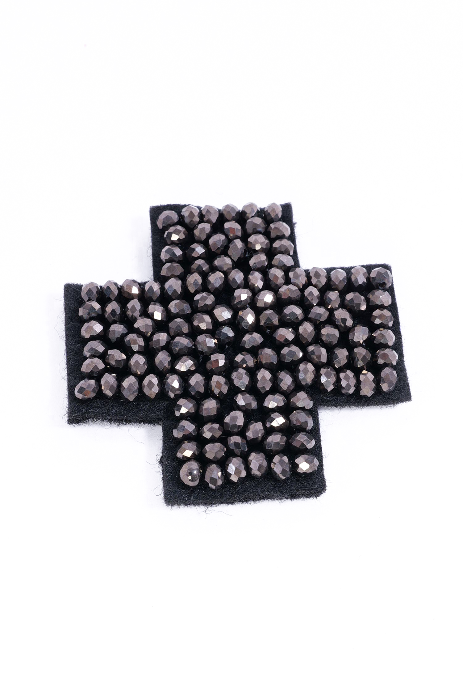 - Wool felt with stitched facetted glass pearls