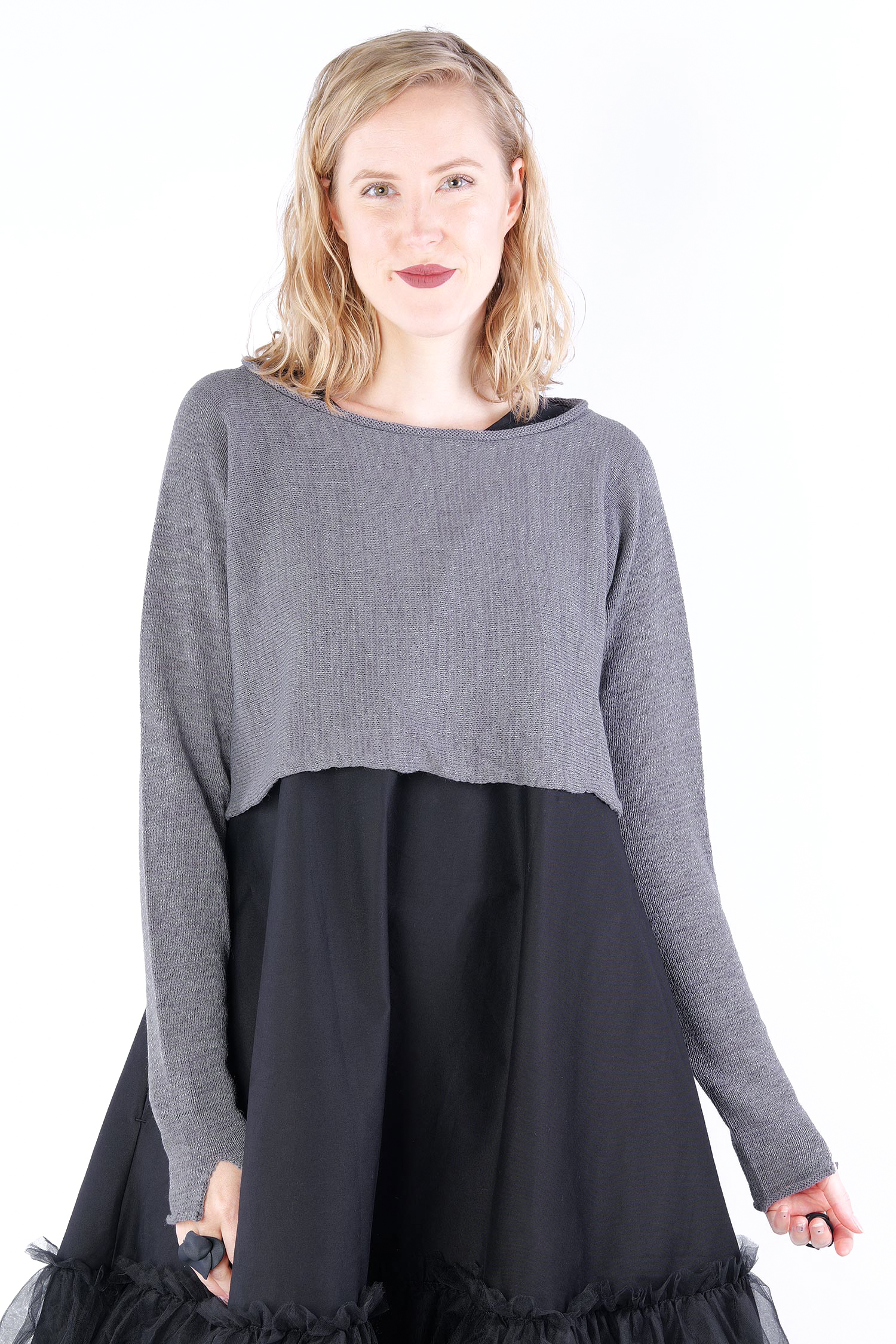Short knit pullover - Dark grey - 2253720715