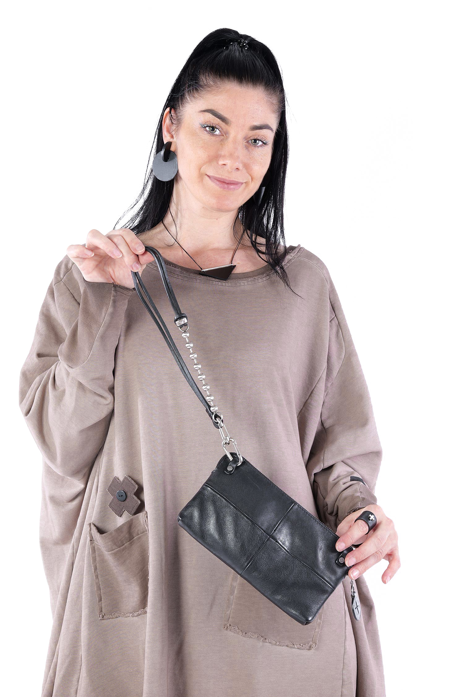 - Can be worn as a shoulder bag, wallet, or clutch