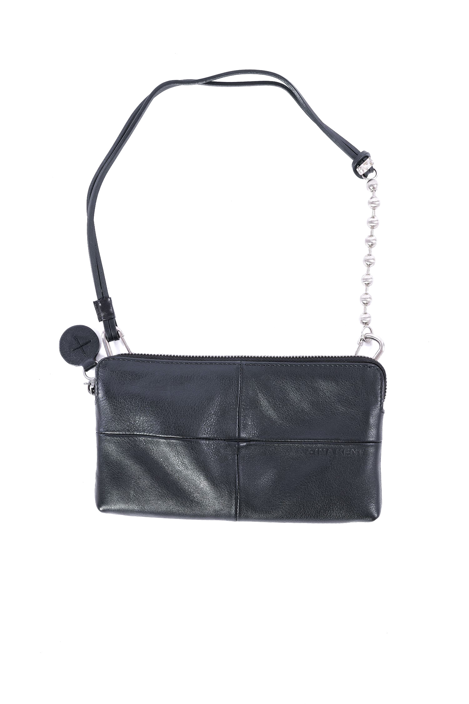 - 3 interior compartments: one large and two smaller ones. One of them has a mini snap hook for a key