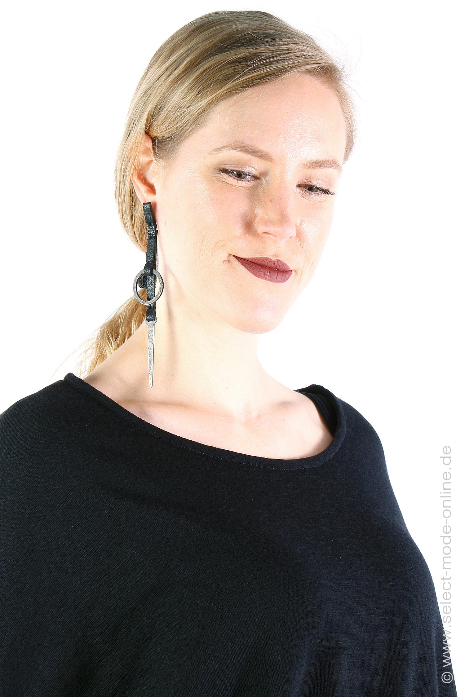 Very long earring with silver tip and circle by Aumorfia