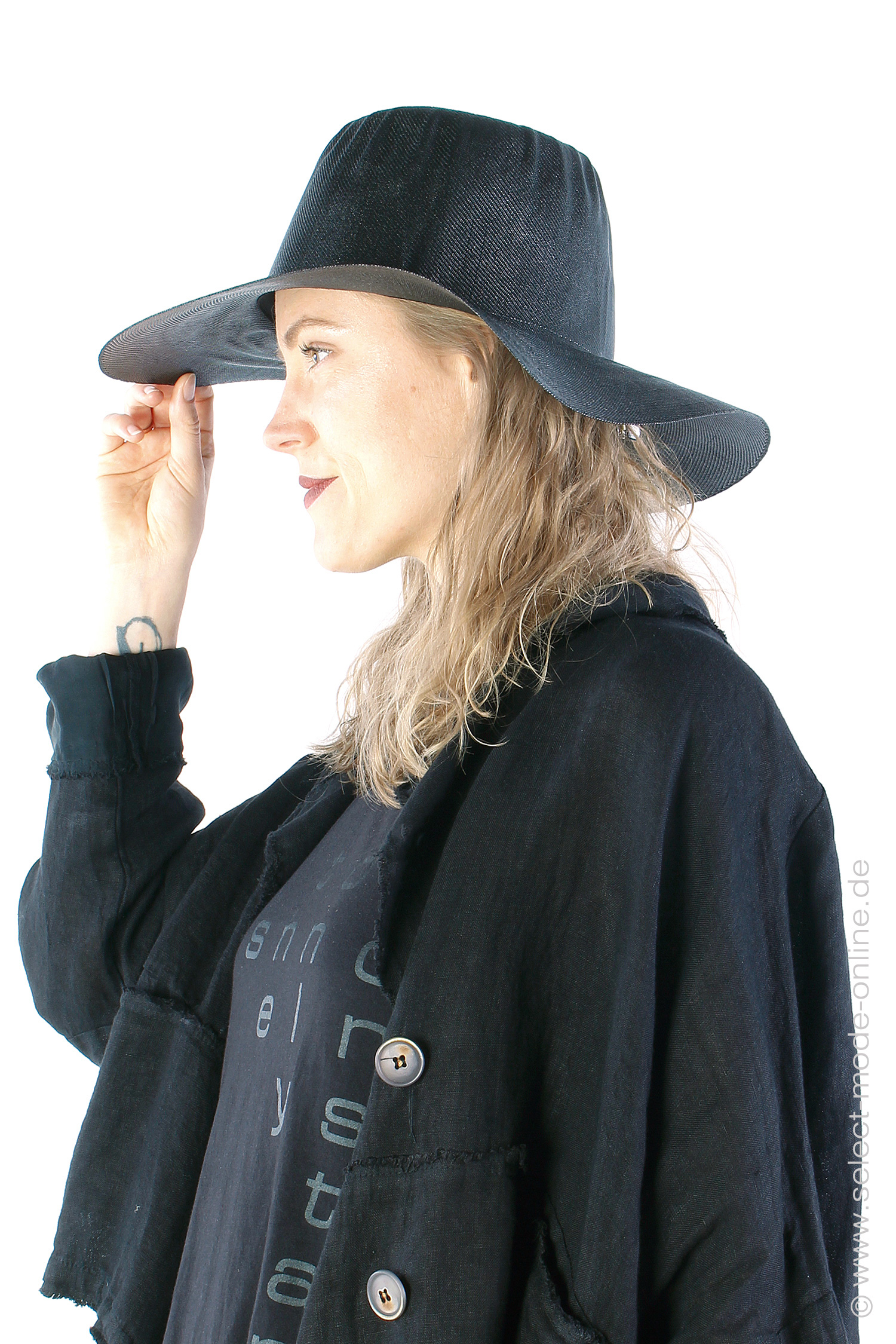 Light straw hat with a large brim by Reinhard Plank.