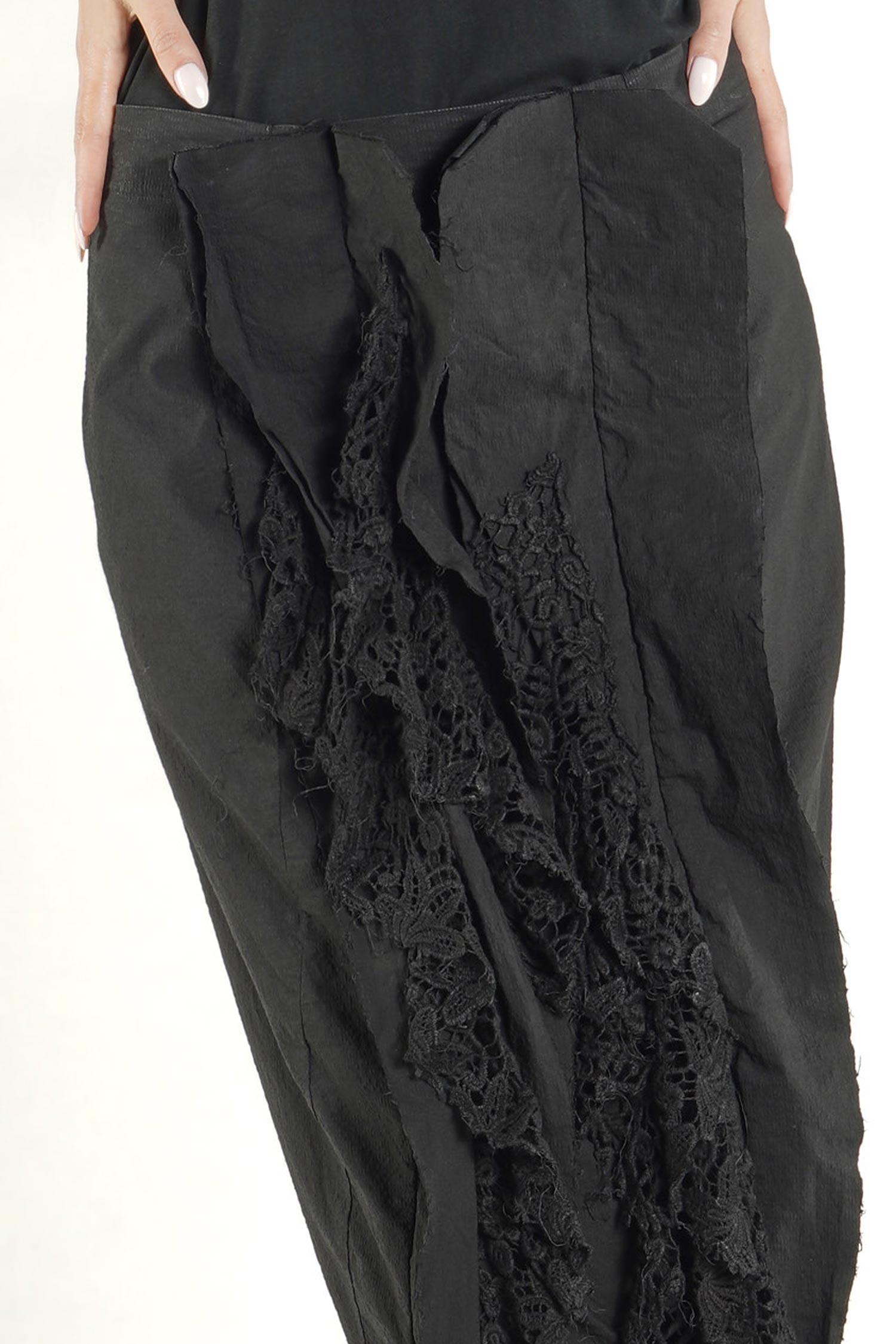 Stretch skirt with lace - Black gloss - 1262240327