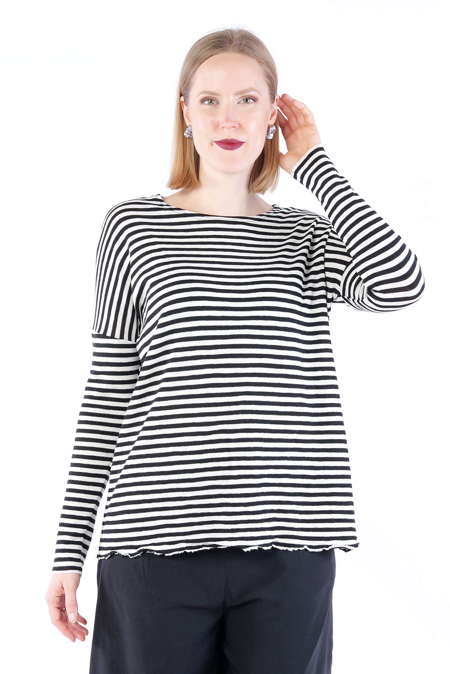Striped merino pullover - White-black schmal - 4039