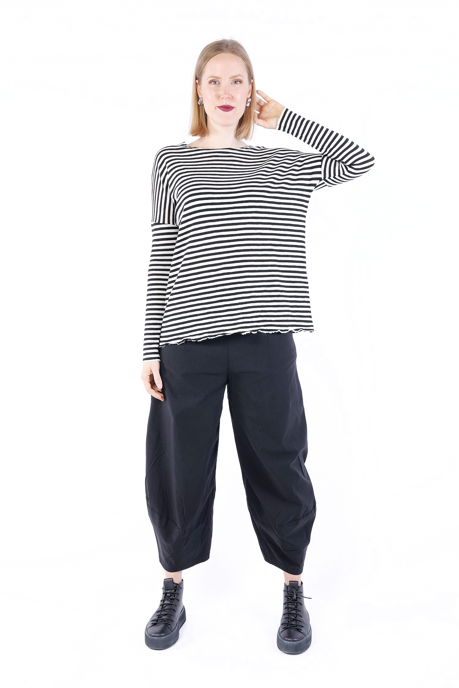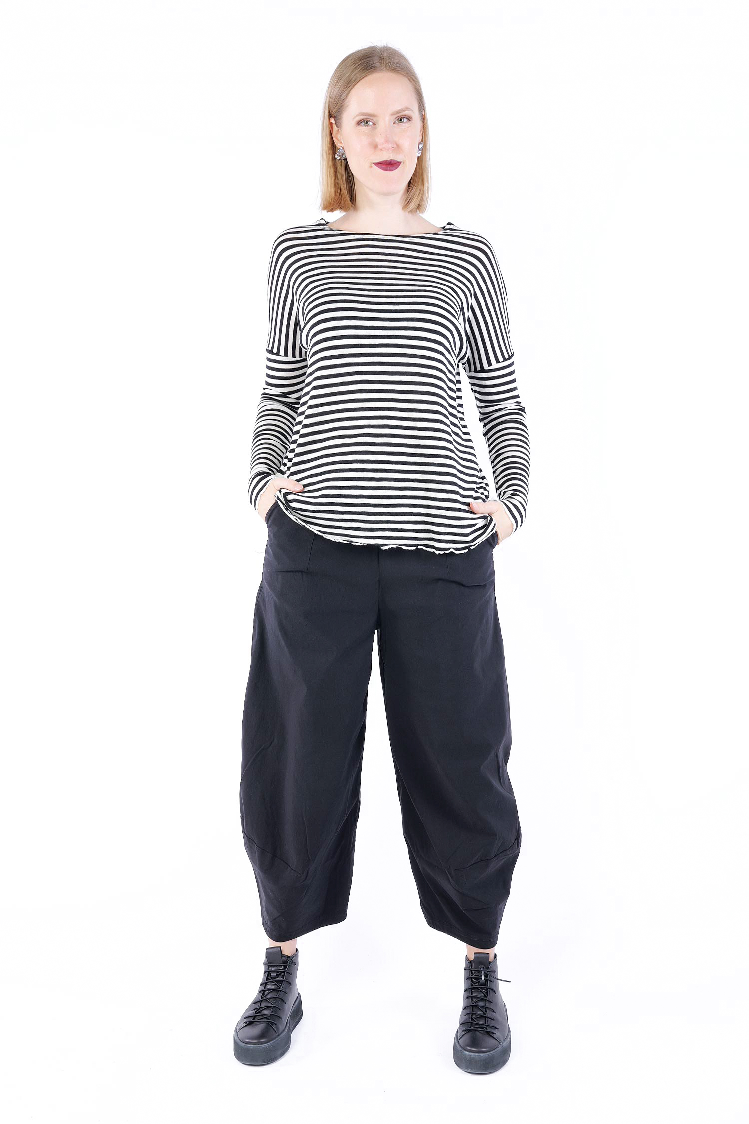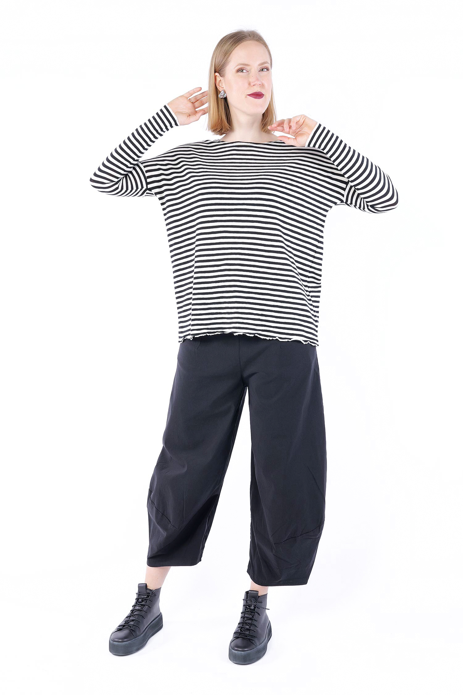 Nina's measurements are 85cm / 74cm / 101cm (chest / waist / hips) and she is 170cm tall. She always wears the smallest size (of the sizes indicated in our measurements), otherwise there is a note in the product description.