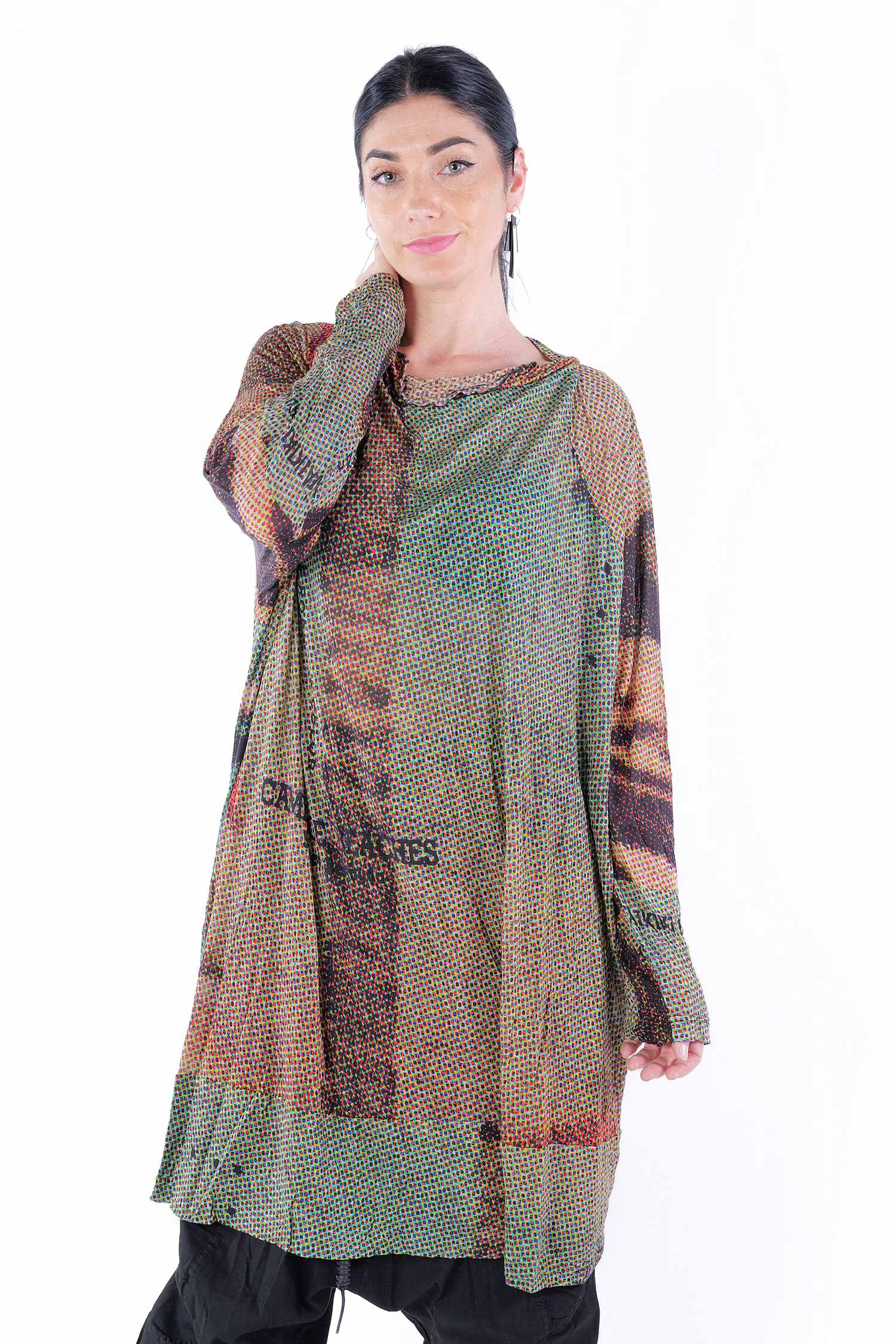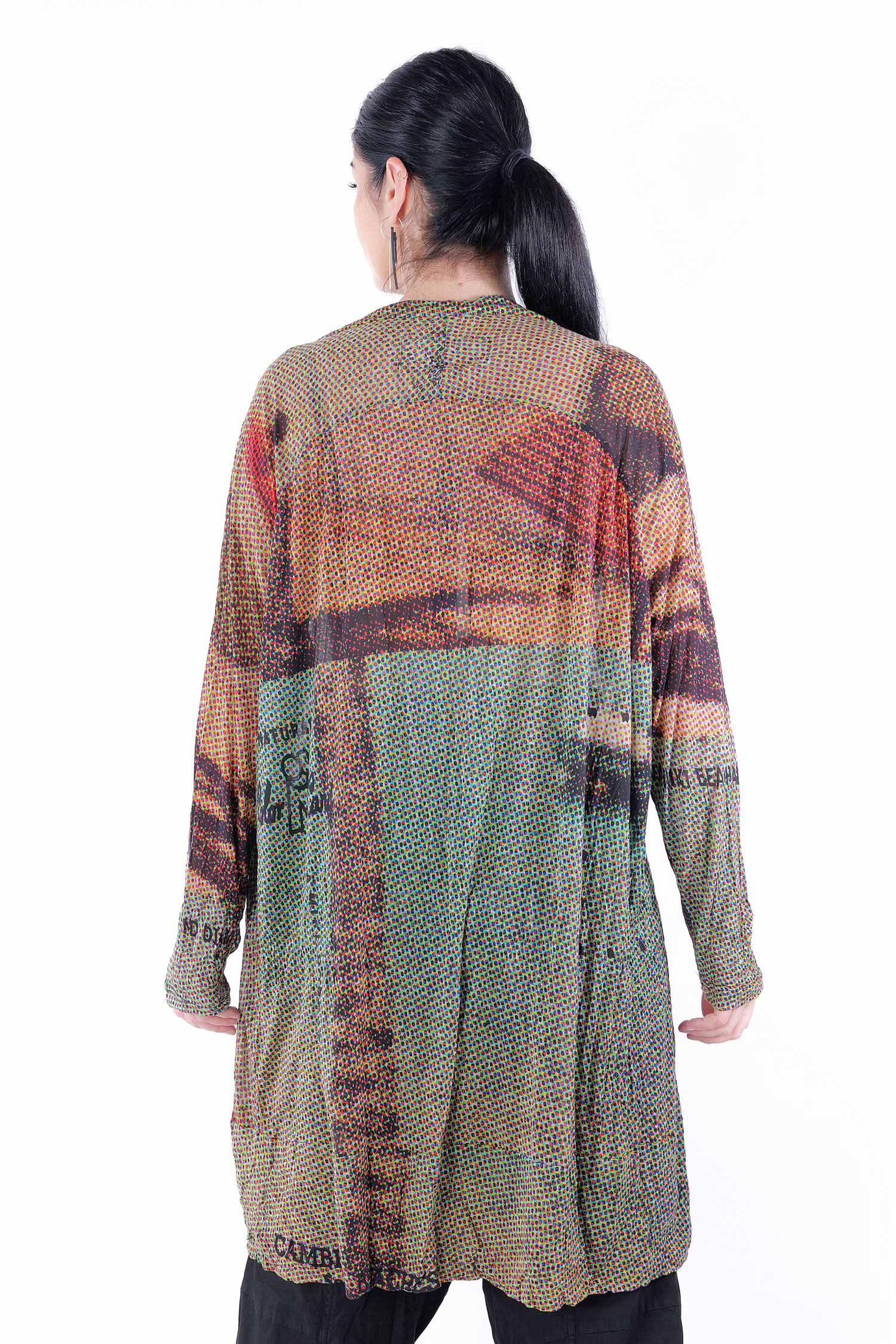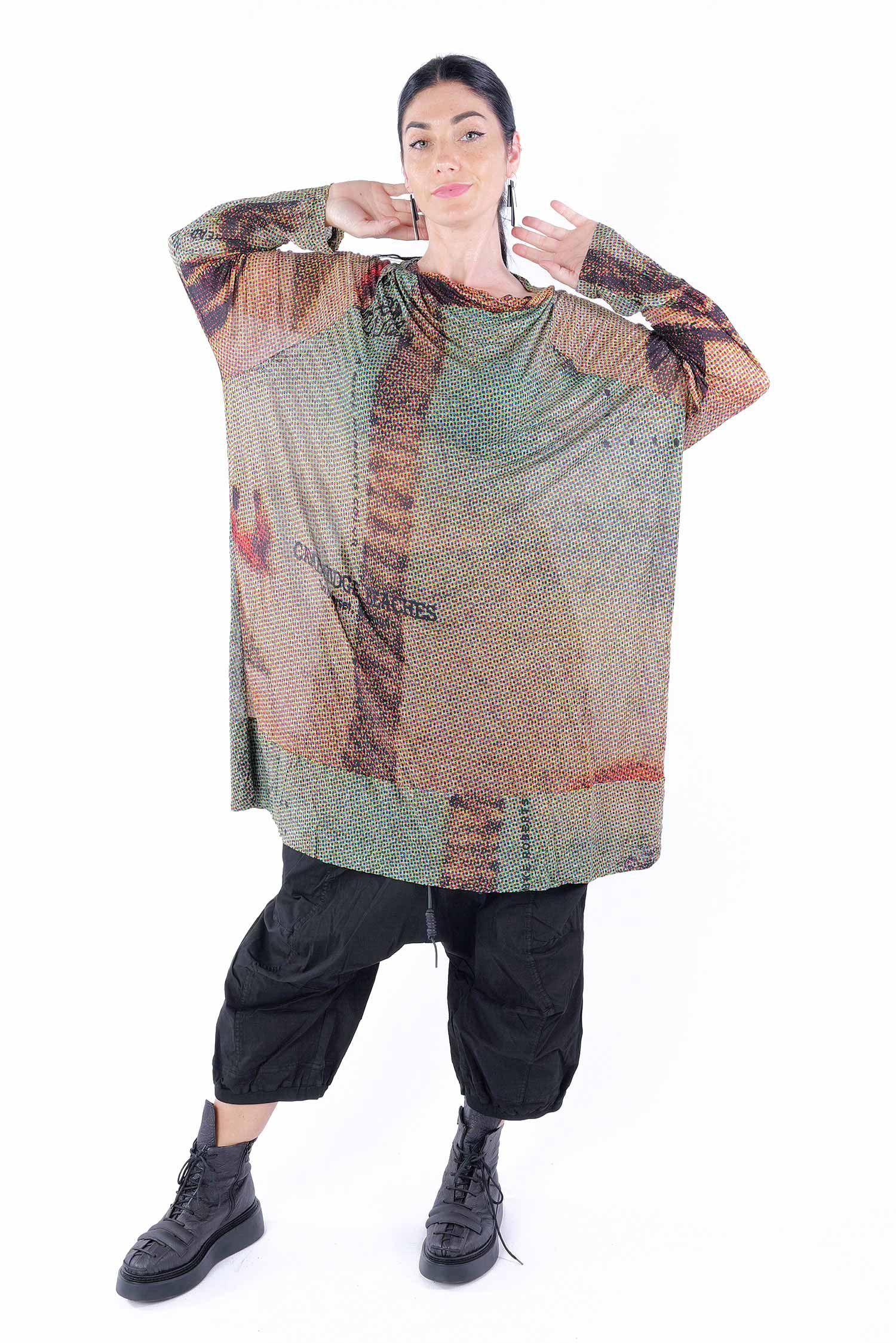 Details: - Waterfall neckline - Very thin material with silk - Print all over, every print is unique - Trimmed edges - Loose and square - Raglan sleeves