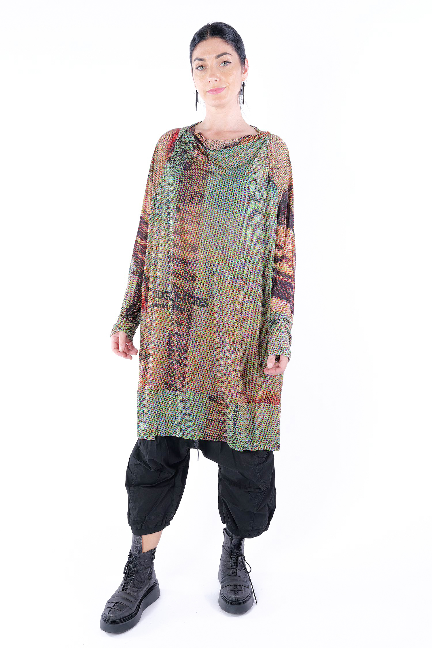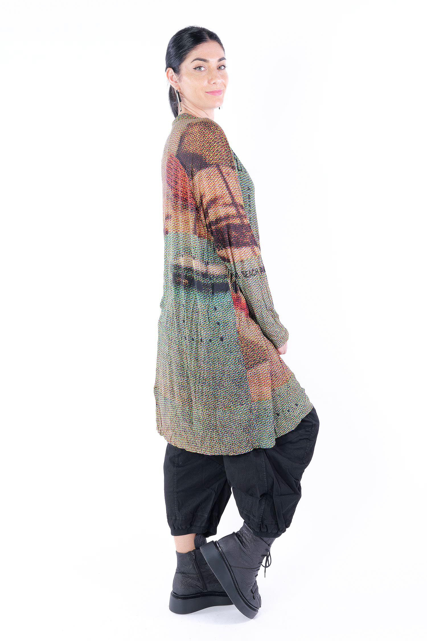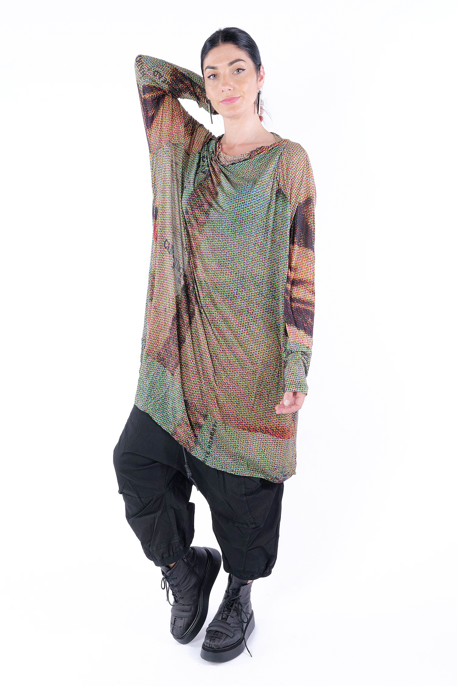 Details: - Waterfall neckline - Very thin material with silk - Print all over, every print is unique - Trimmed edges - Loose and square - Raglan sleeves