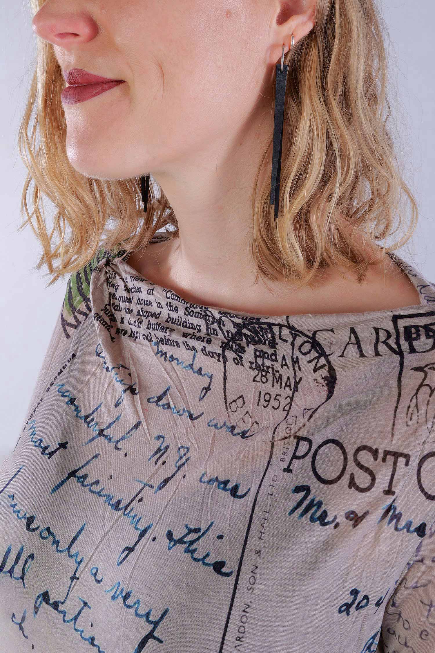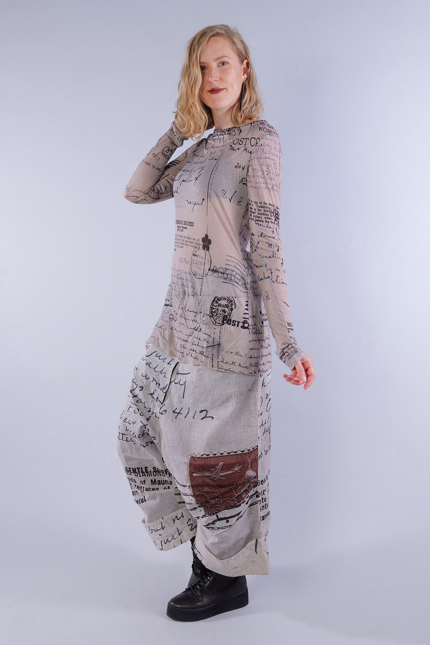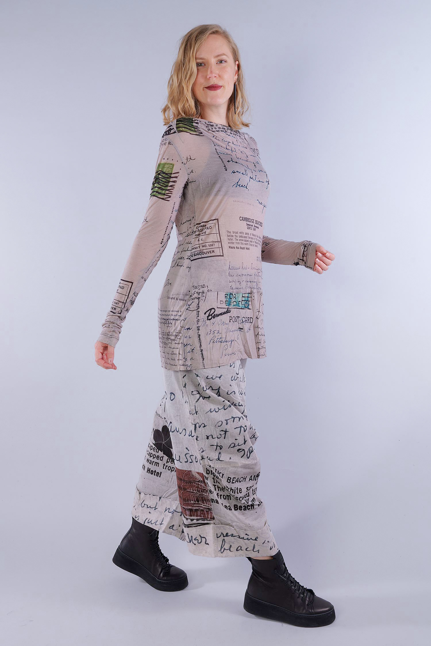 Details: - Loose waterfall neckline - Very thin material with silk - Print all over, every print is unique - Trimmed edges - Slightly tapered - Tulip-shaped cut