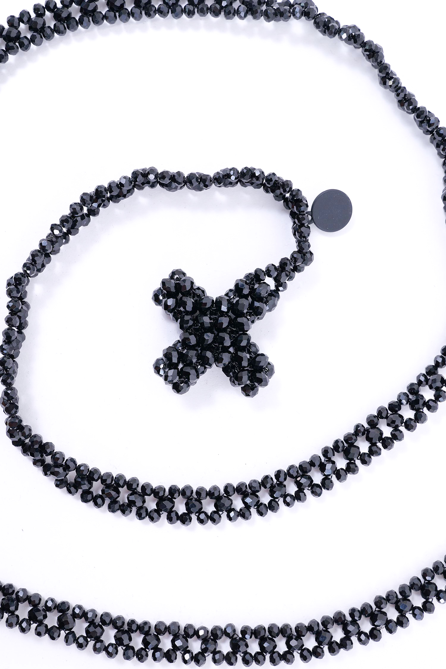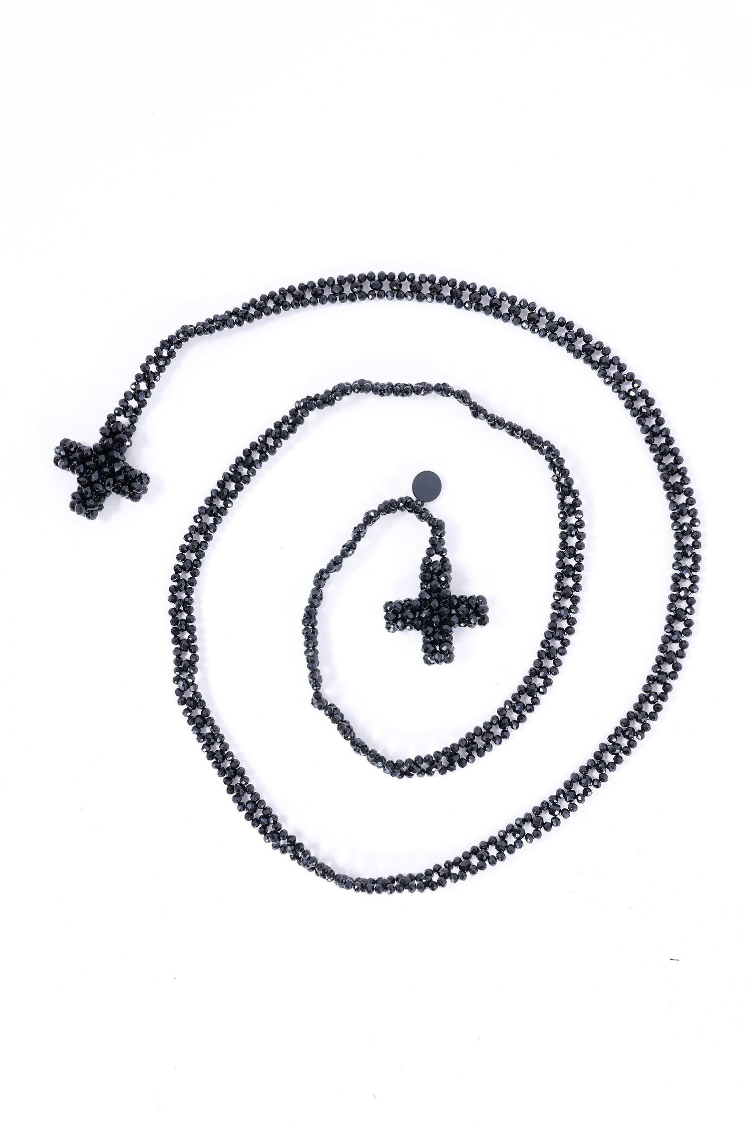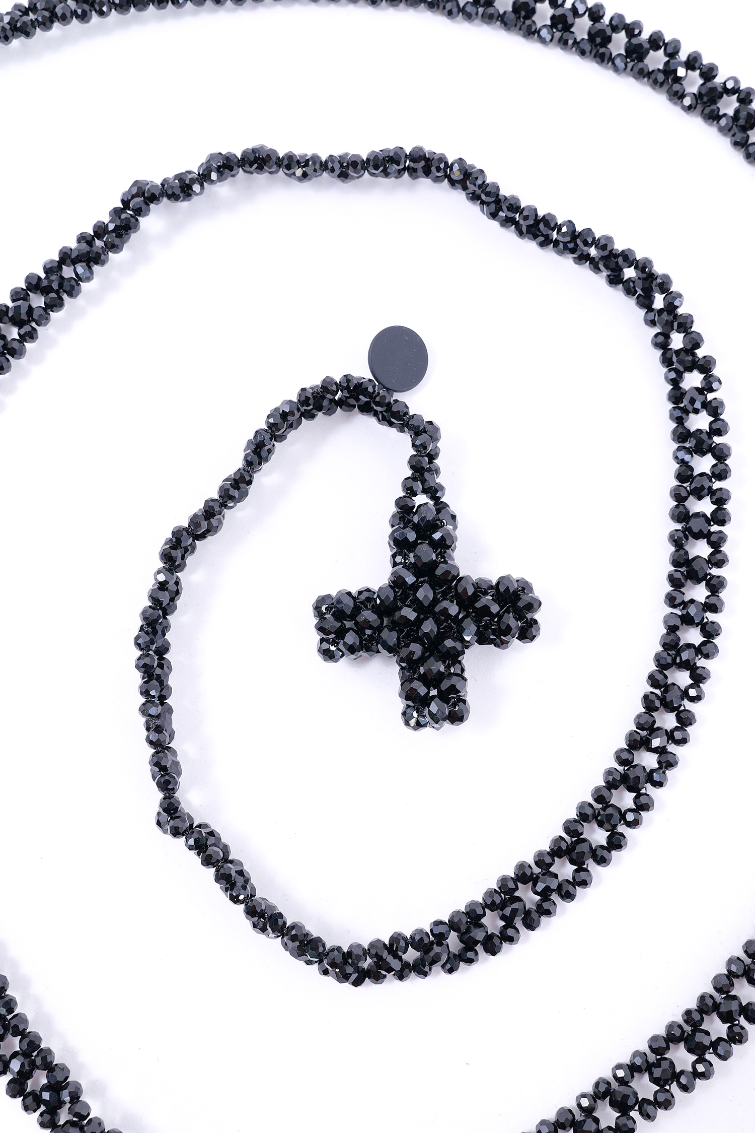Long open chain with a plus at each end made of faceted glass by Plü · Pluslavie.
