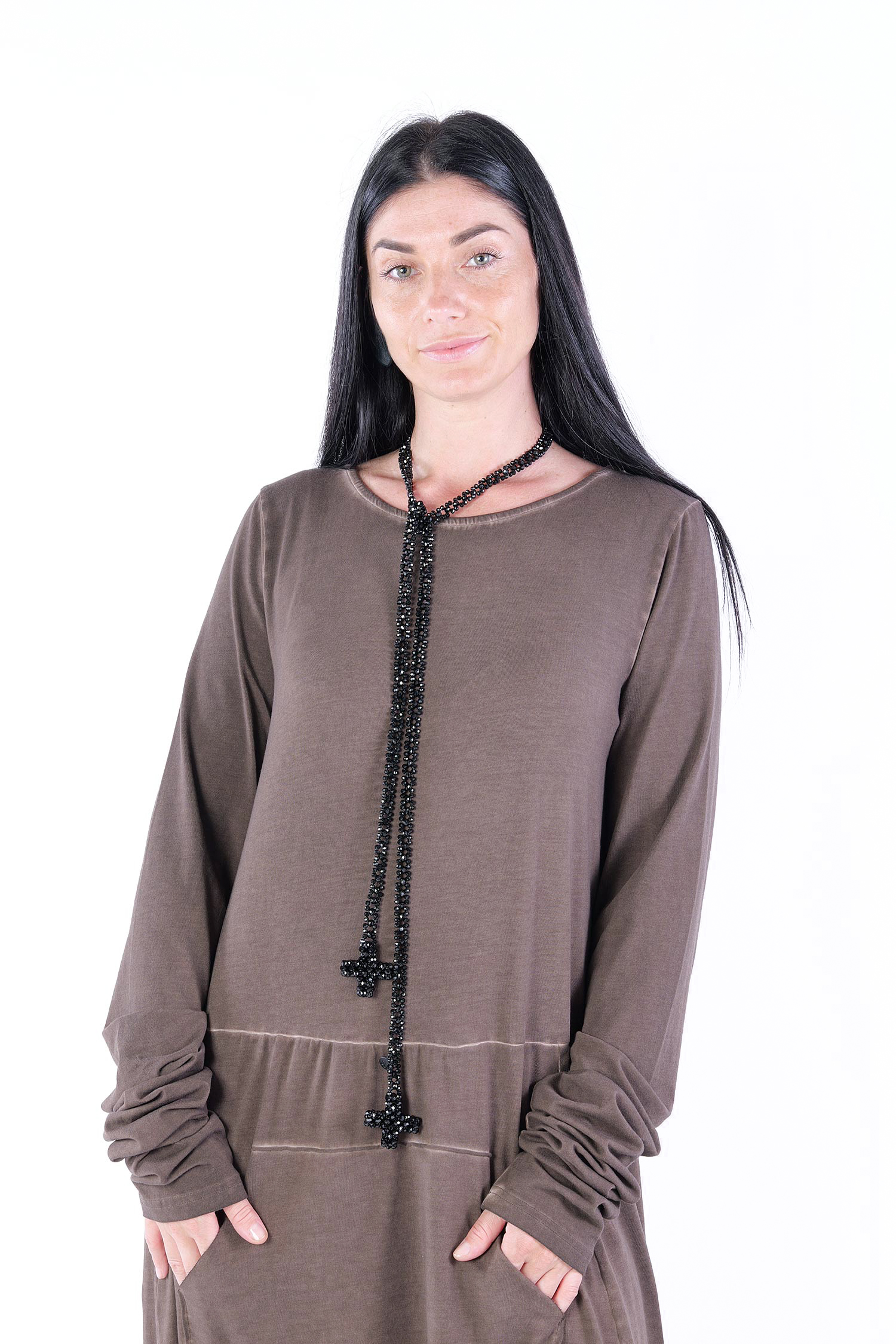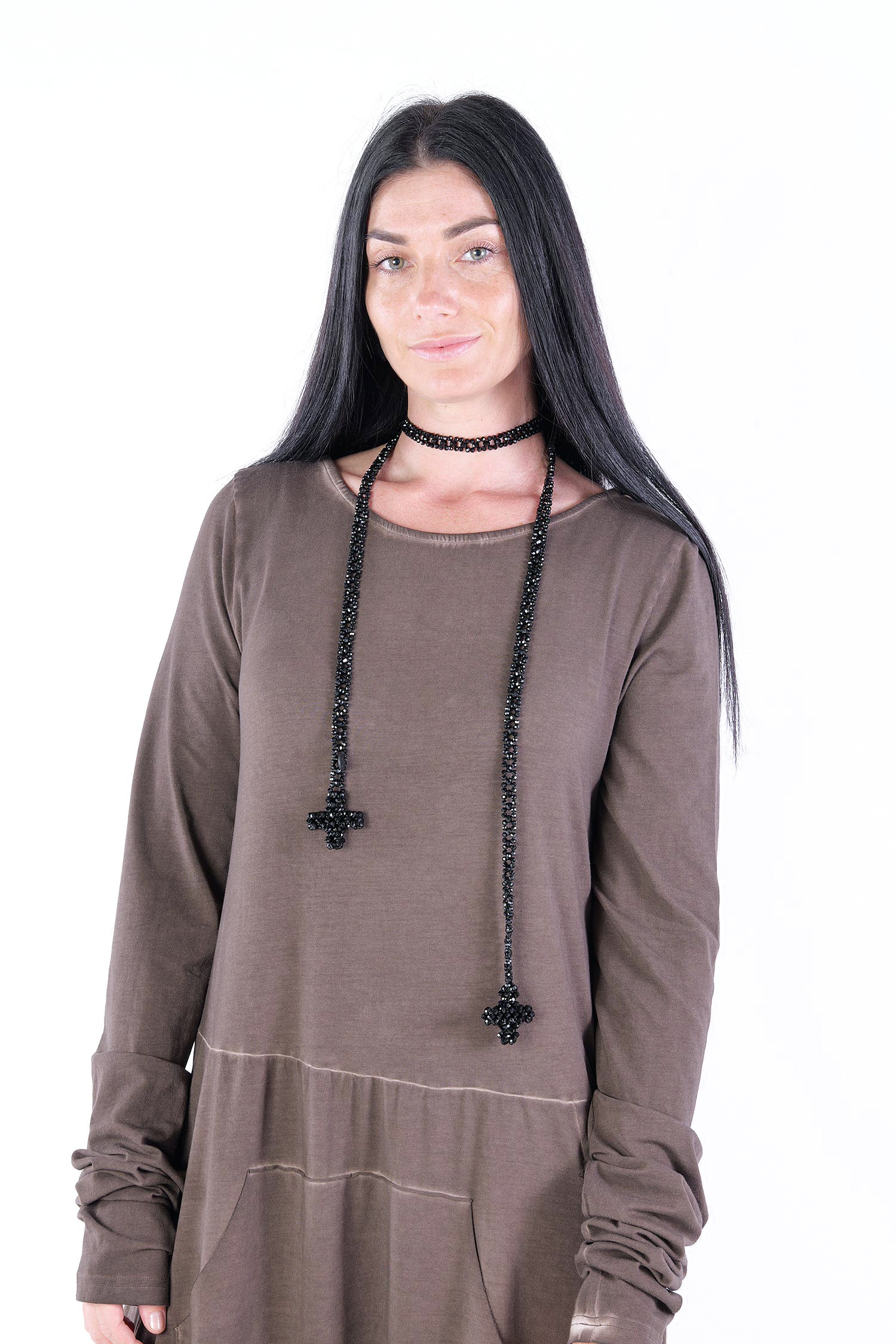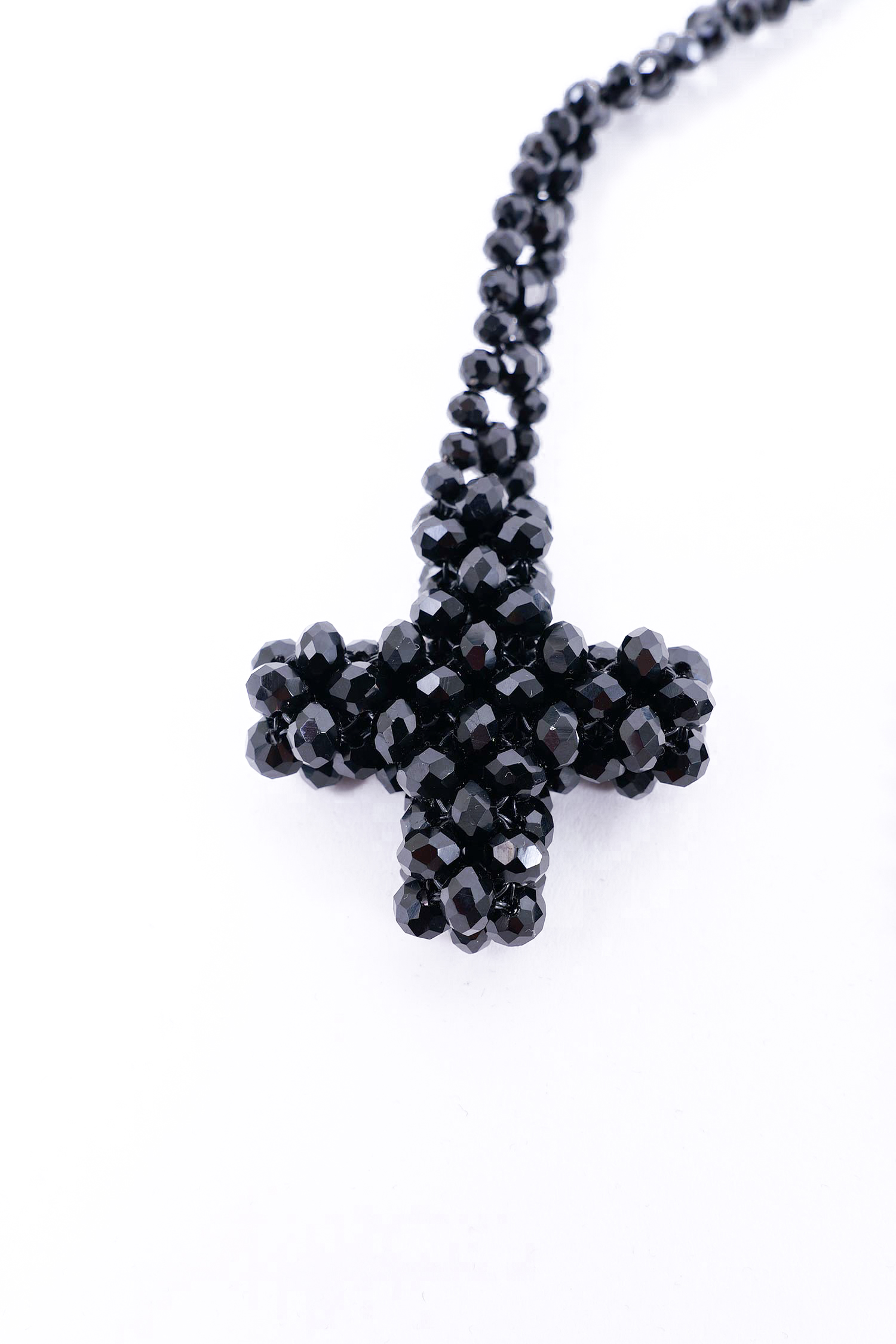 Long open chain with a plus at each end made of faceted glass by Plü · Pluslavie.