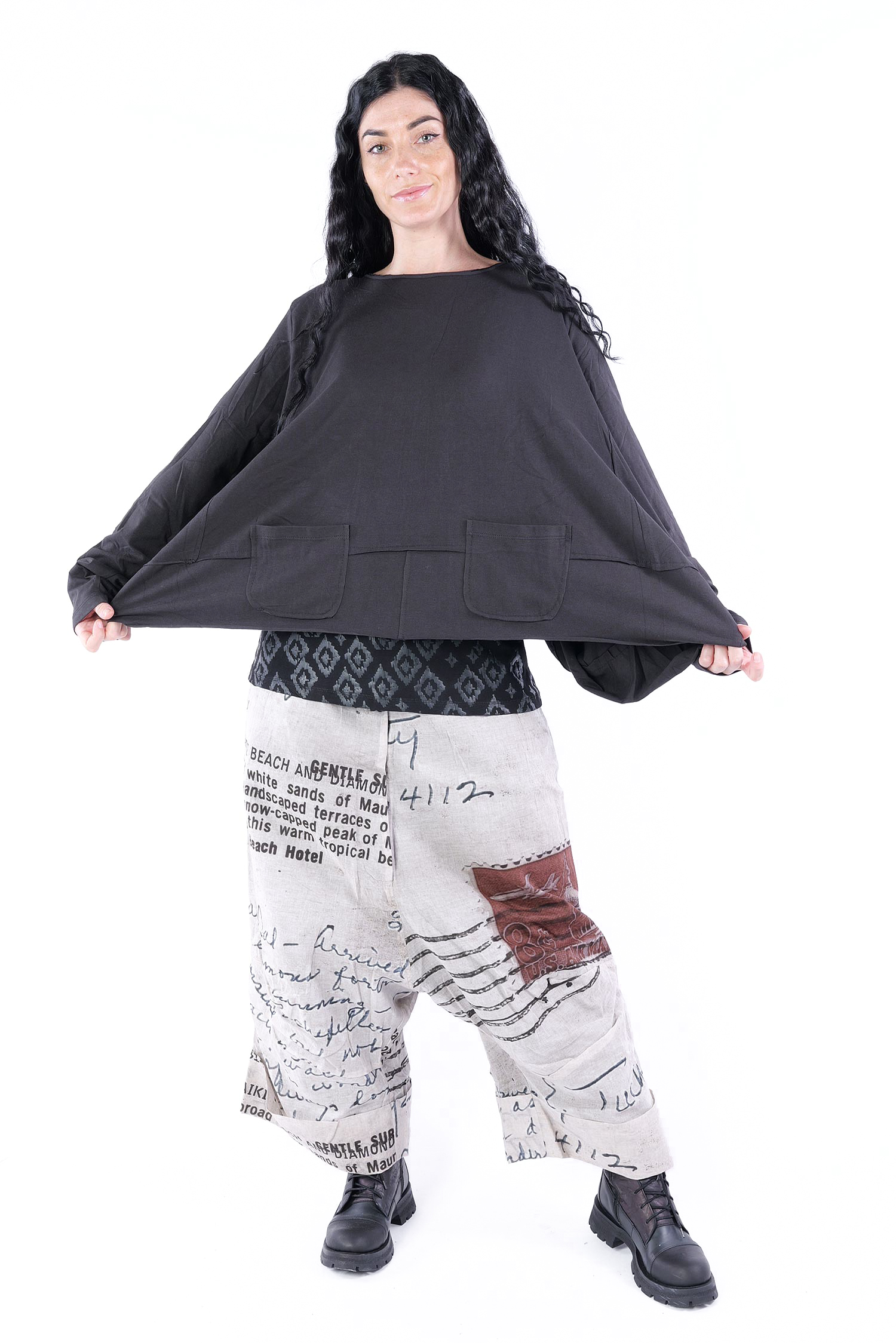 - Pullover: A-line, with decorative seams at the back (look like little cats)