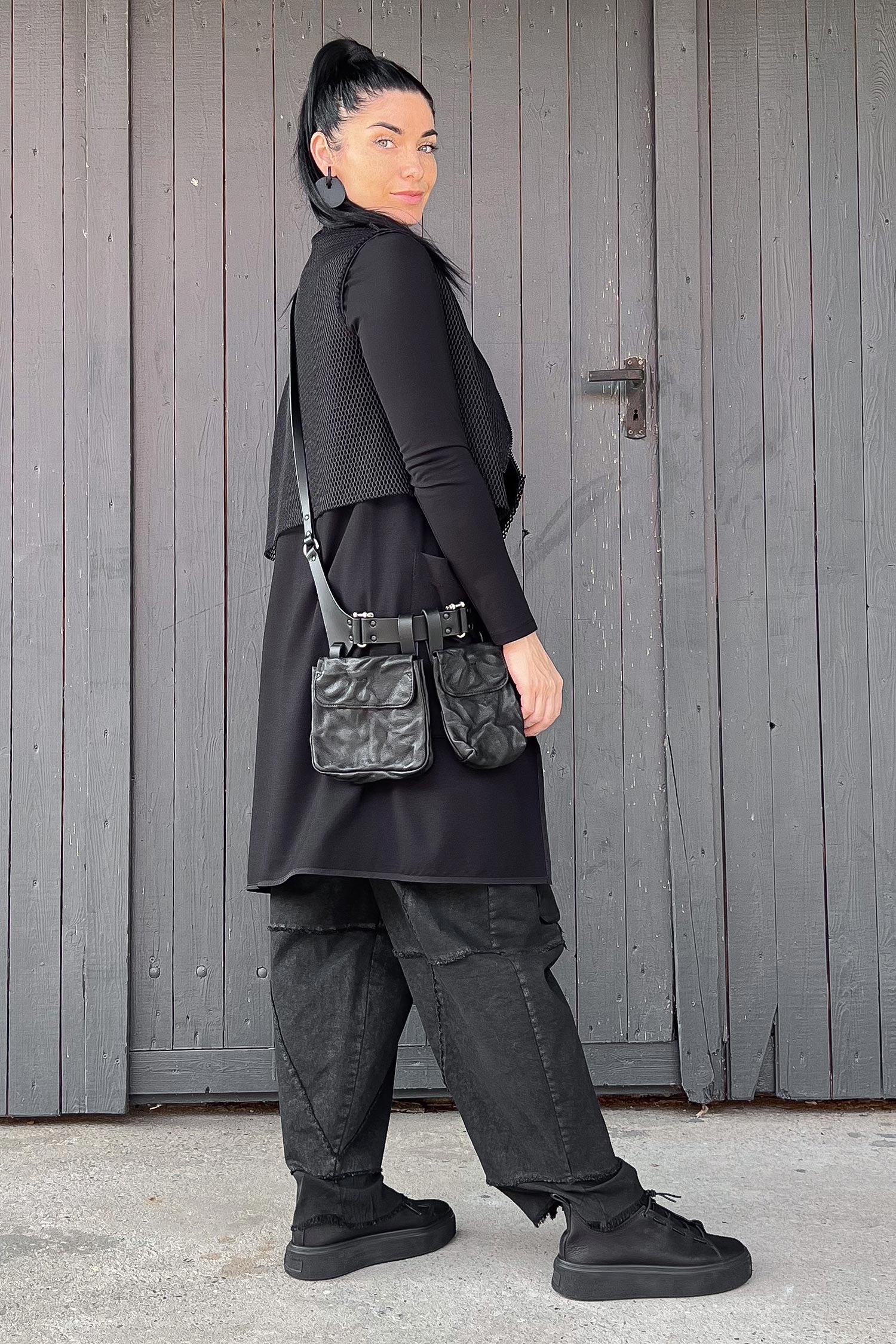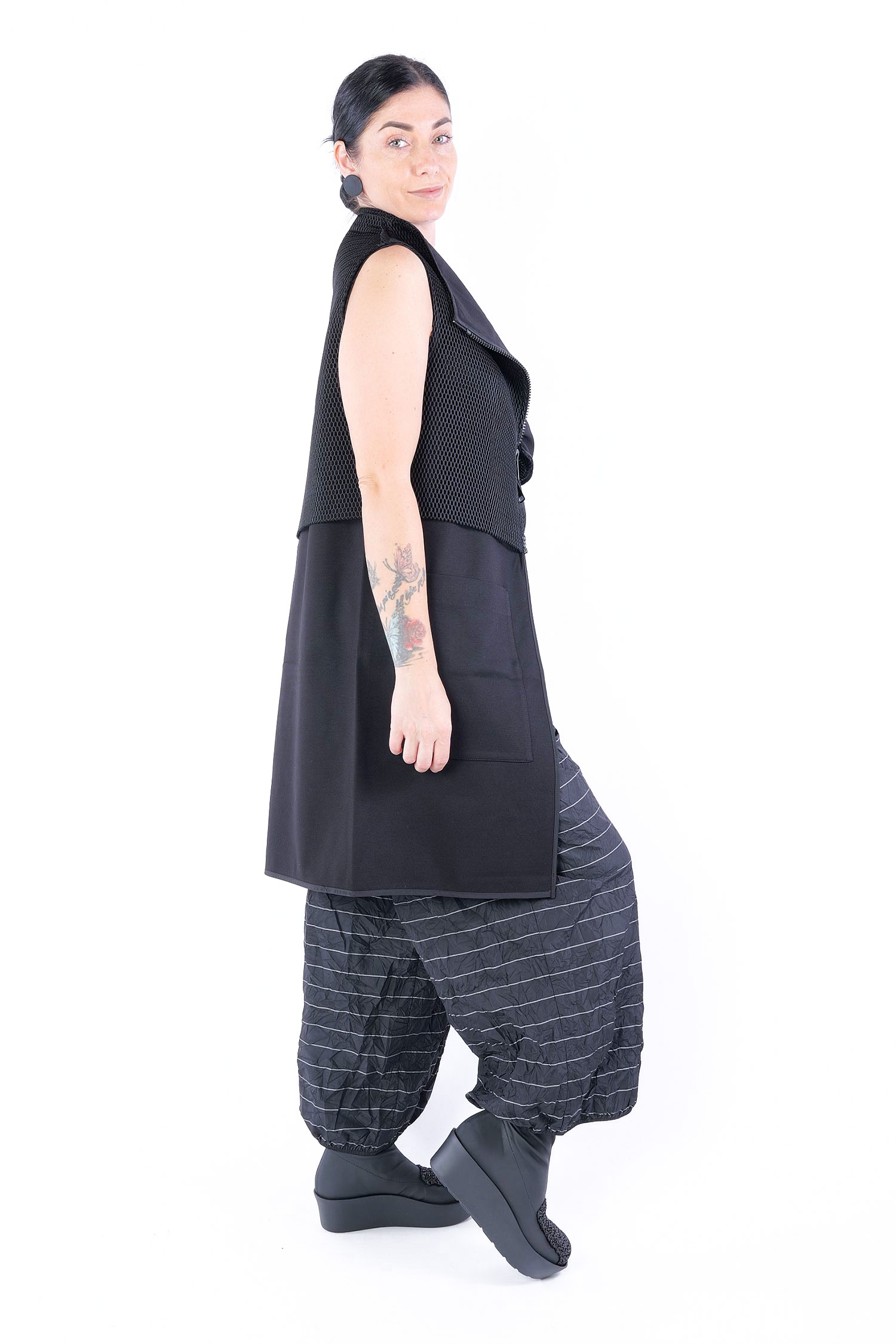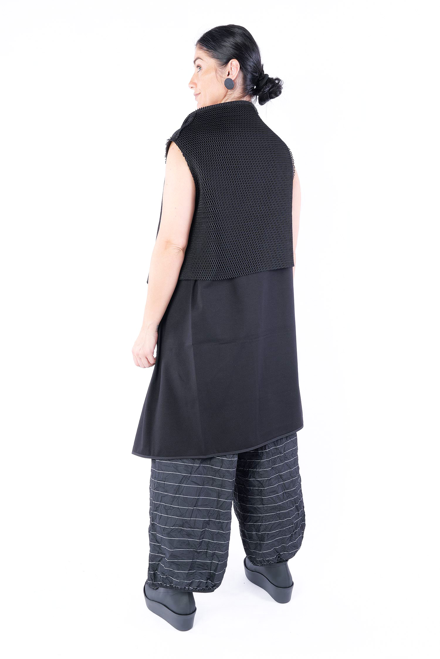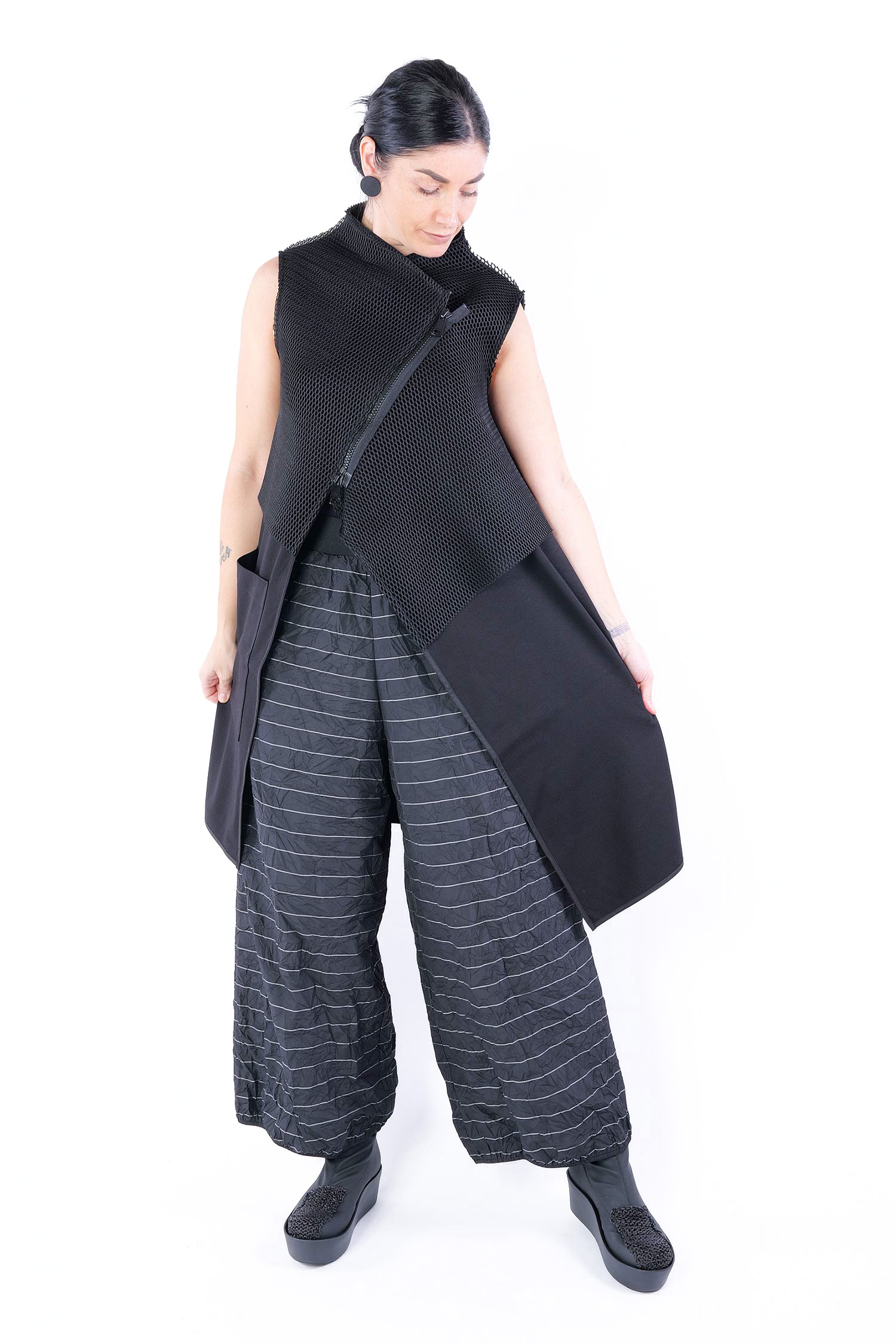 Details: - Thick two-way zipper - One attached pocket at the front - Asymmetrical cut - Fishnet over smooth sweat material - Slight A-line - Open edges on fishnet